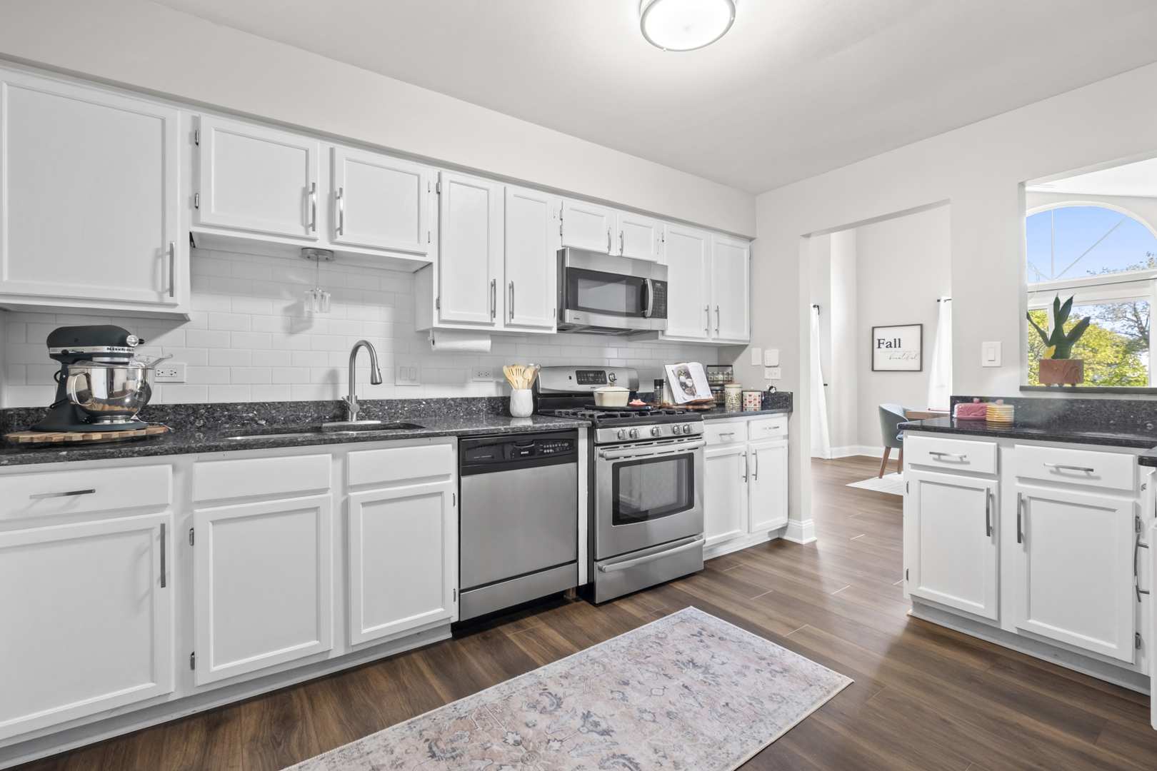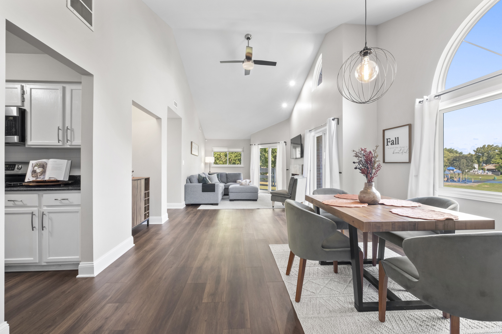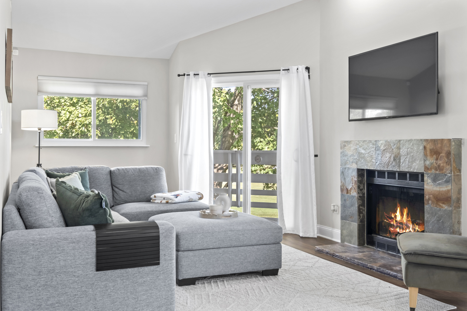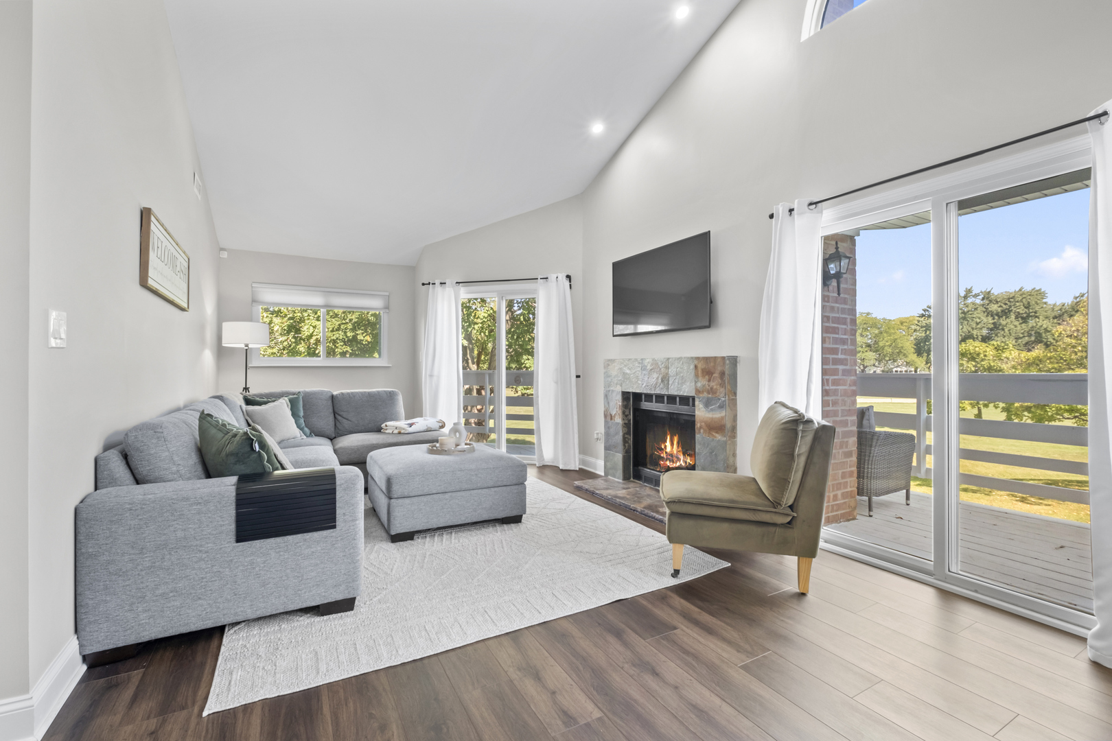 Looking for cozy place to live? This move-in ready 2nd floor end-unit home is perfect for you, featuring vaulted ceilings, a lot of a natural light and vinal waterproof floor throughout. The open layout includes a dining area for your gathering, a living room with nice gas fireplace and access to a wraparound deck overlooking the park. Big kitchen with stainless-steel appliances, granite counter tops. Spacious main suite offers private balcony access. Two full bathrooms were recently remodeled. Located in the highly sought-after Stevenson High School district and walk-in distance to shops, playground and park.