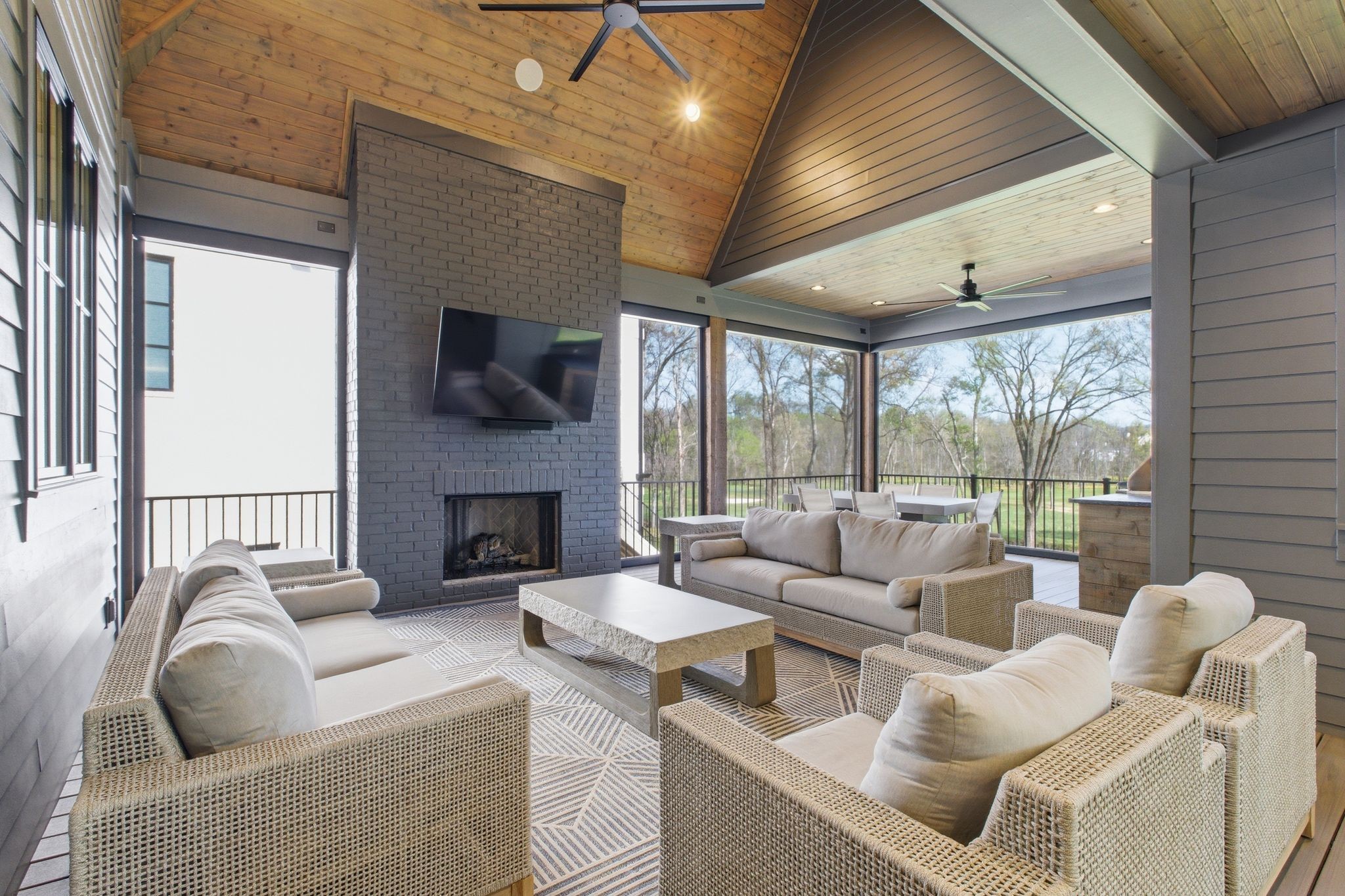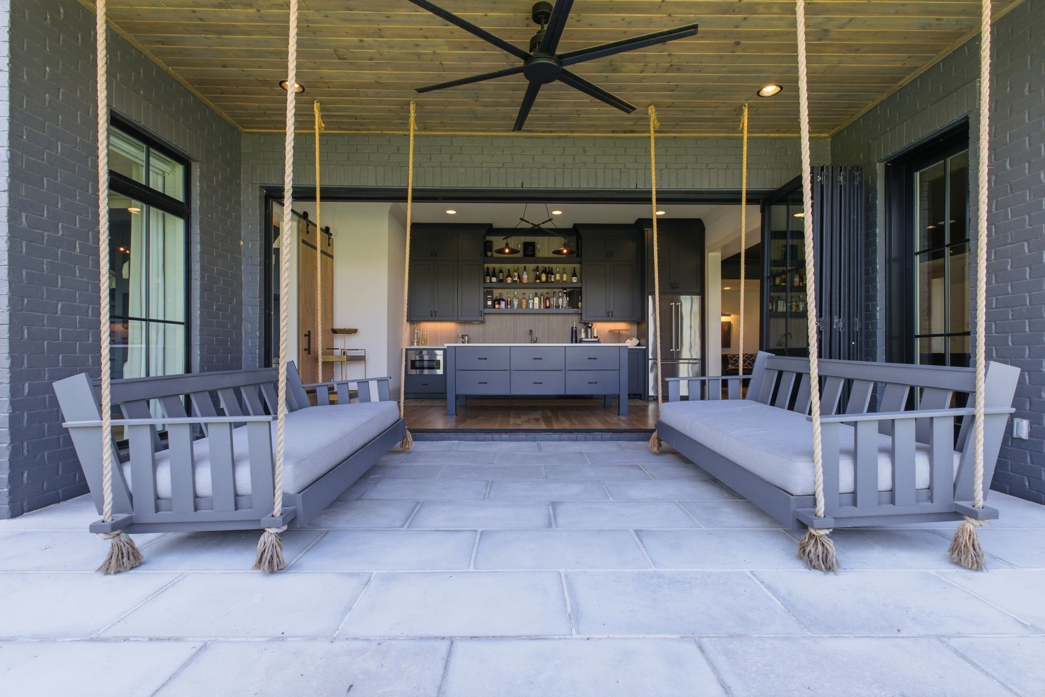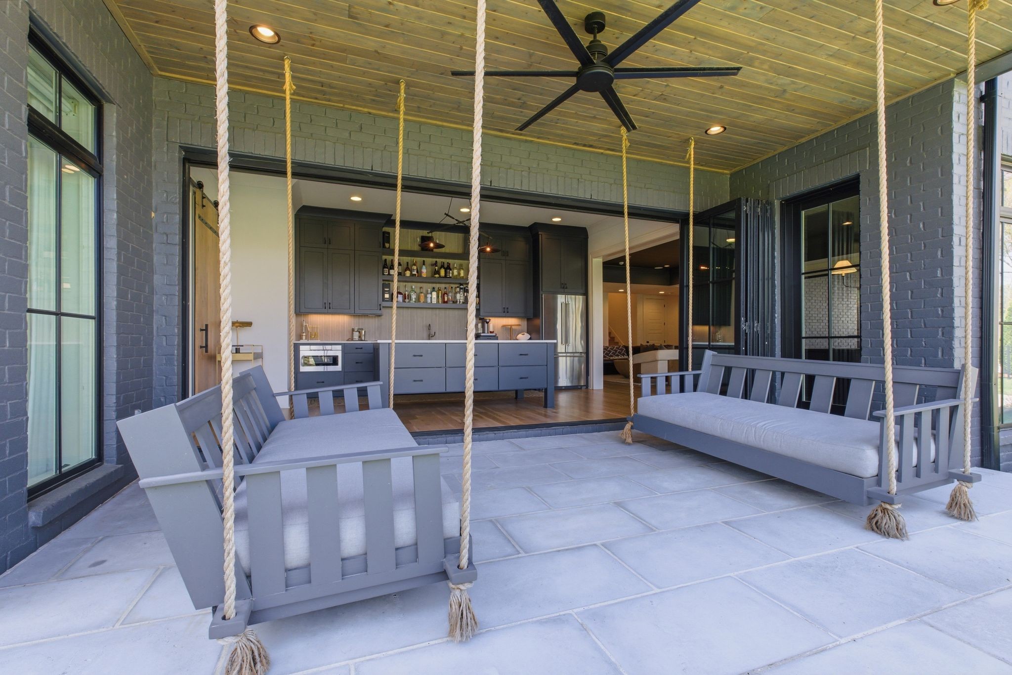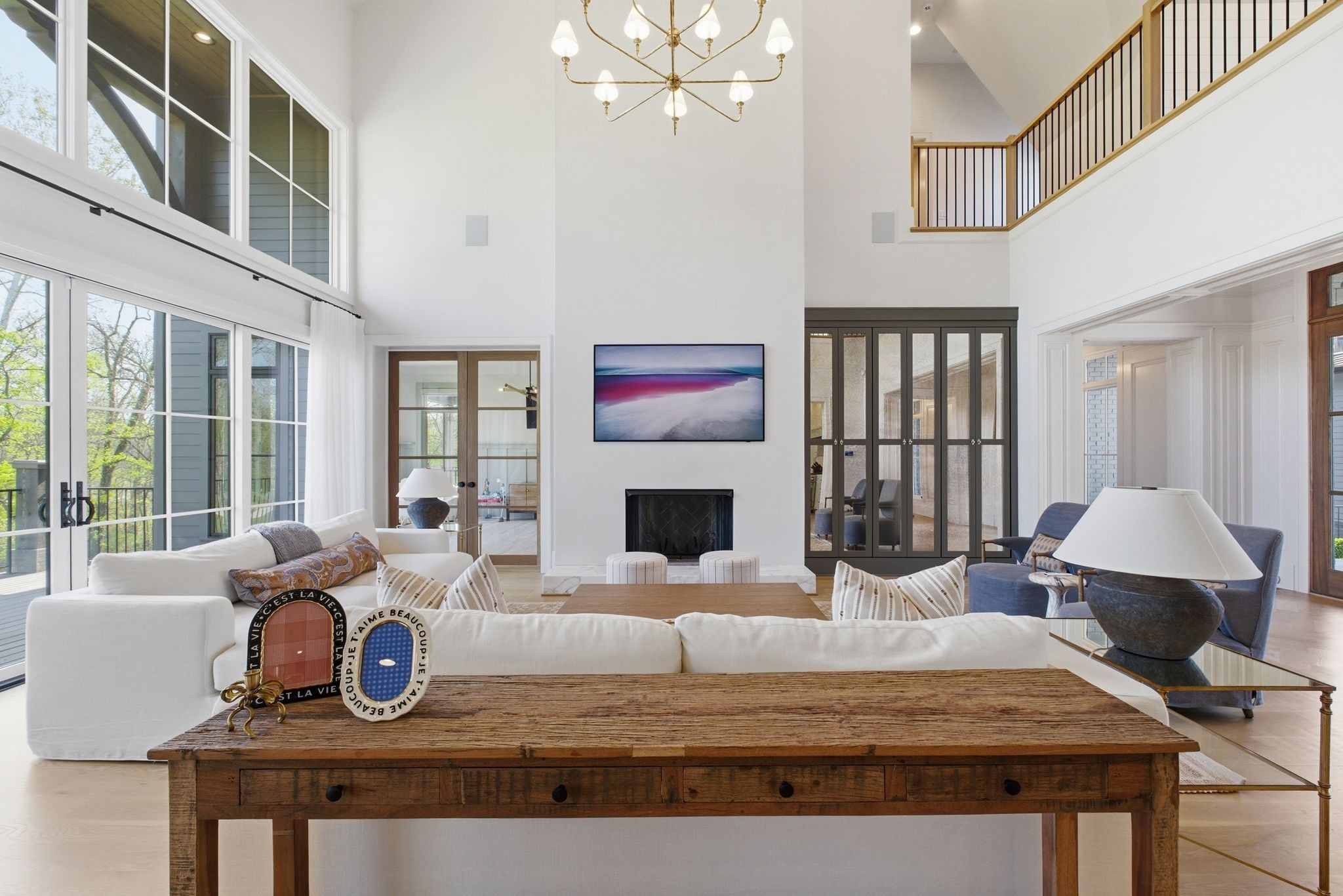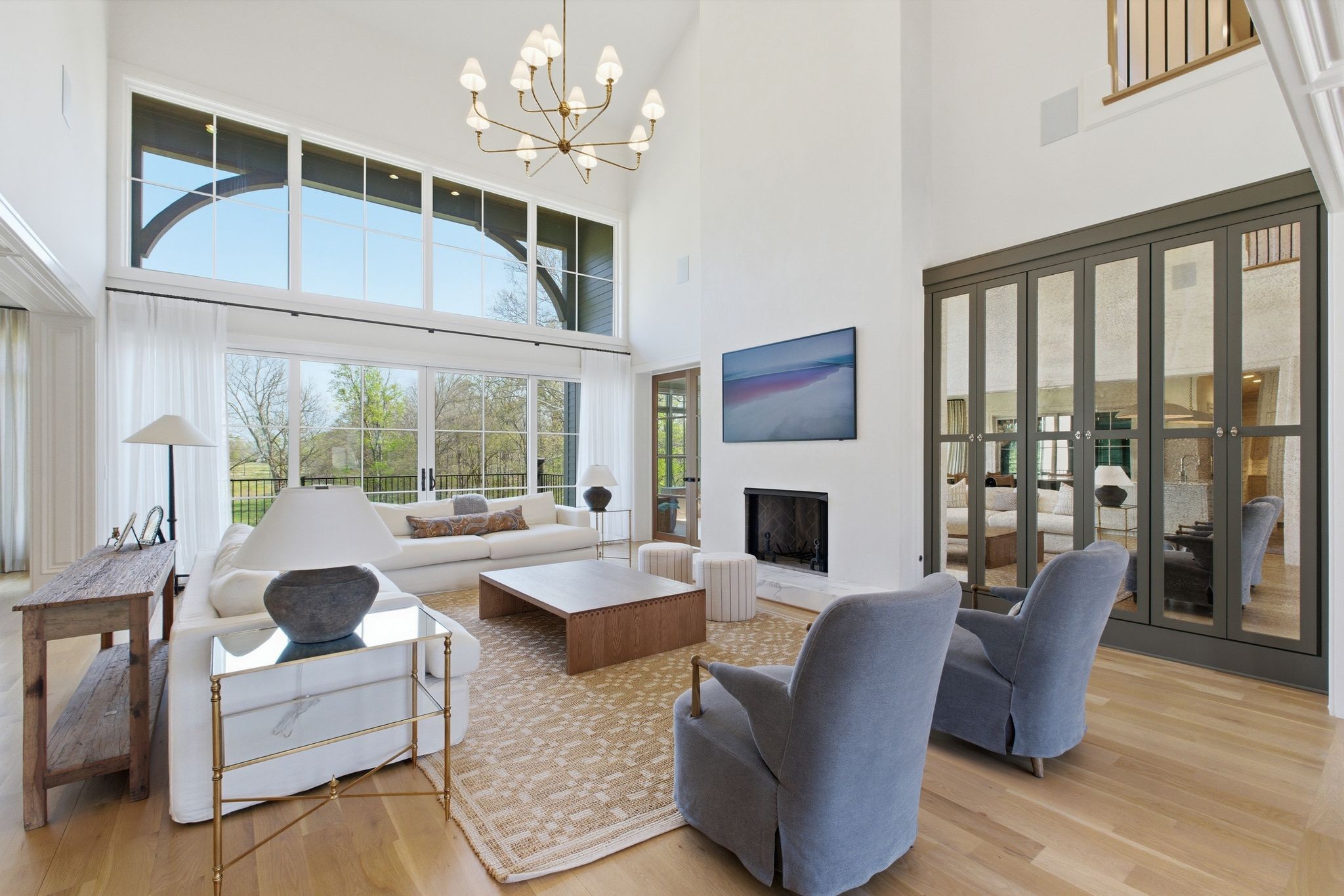 This magnificently designed Modern English Romantic residence offers 8,314 square feet of refined living in one of The Grove’s most picturesque settings. Upon entry, you’re immediately captivated by sweeping golf course views framed through the dramatic two-story family room, extending seamlessly across the covered terrace to the 16th green and fairway beyond. The main level showcases a luxurious primary suite with a vaulted ceiling, private covered porch overlooking the course, and dual walk-in closets. Additional highlights include a private study, expansive great room, and elevator access to all three levels. The outdoor living space is thoughtfully appointed with a covered porch featuring a built-in ceiling heater, fireplace, grill, and electric screens—creating a true year-round retreat. Upstairs, three ensuite bedrooms, a loft with dual swings, and a dedicated home office provide both comfort and flexibility. The lower level is designed for elevated entertaining, offering an additional ensuite bedroom, custom bunk room, full bar, three covered porches, and generous storage. A truly exceptional offering in The Grove, blending timeless design with modern luxury.