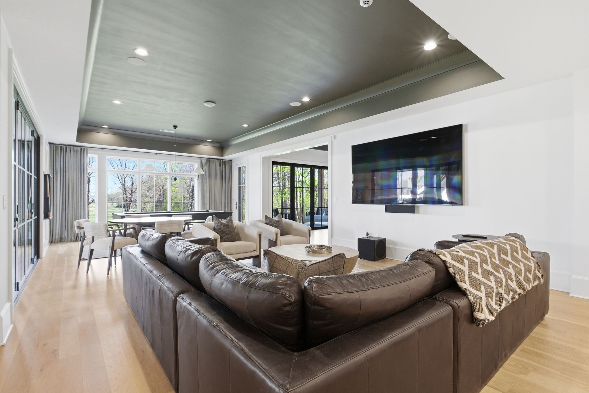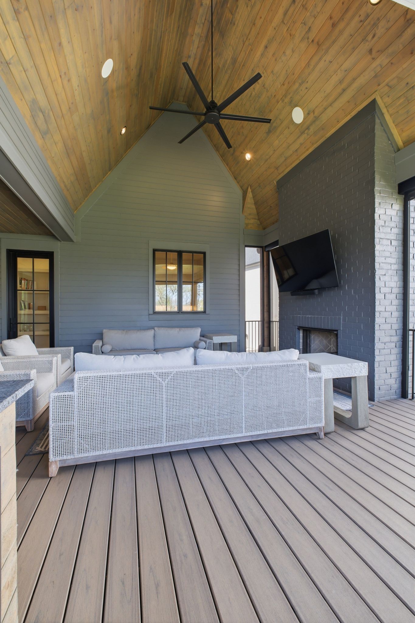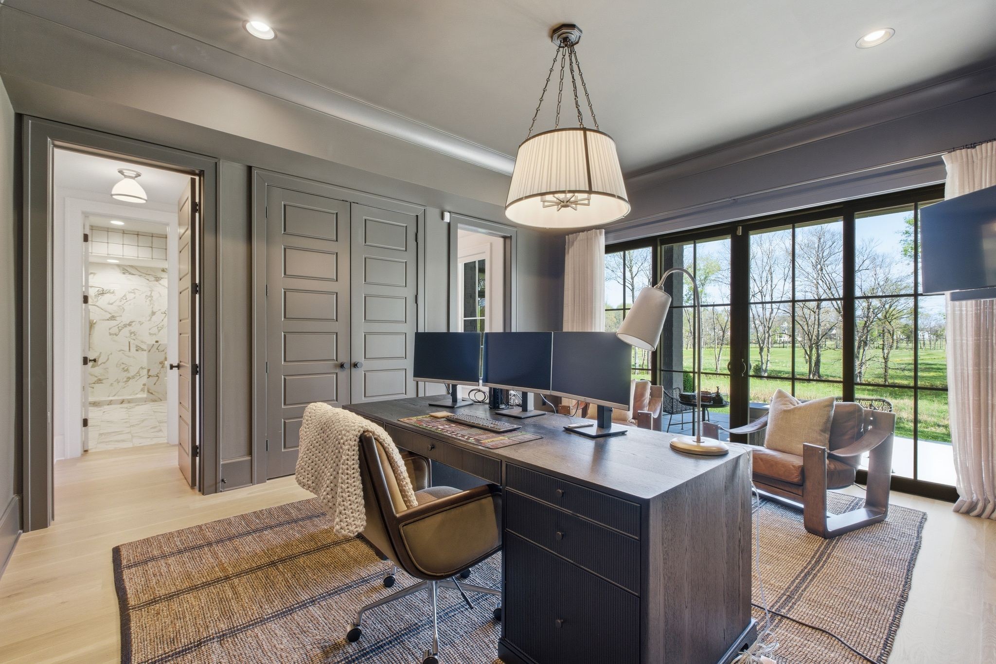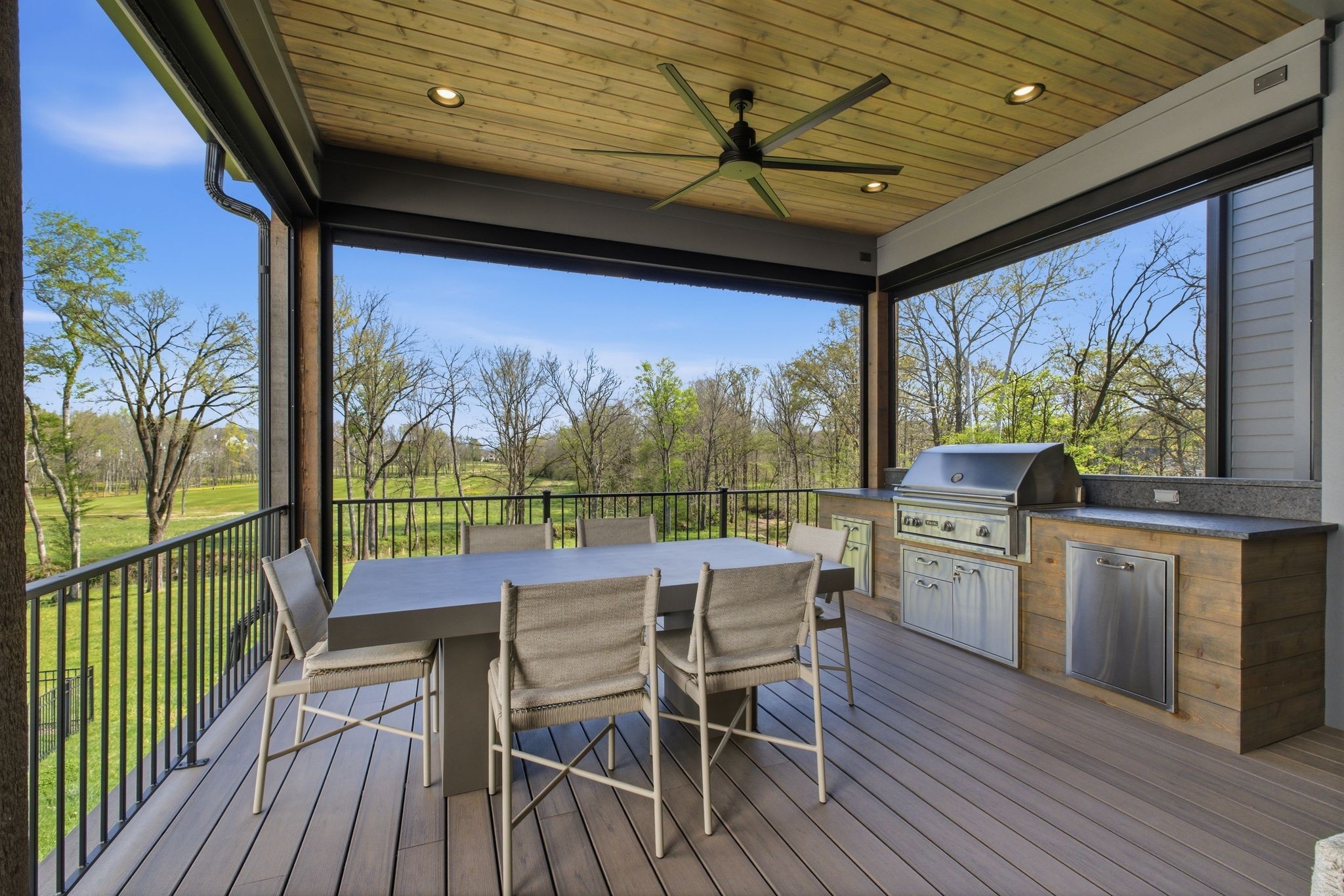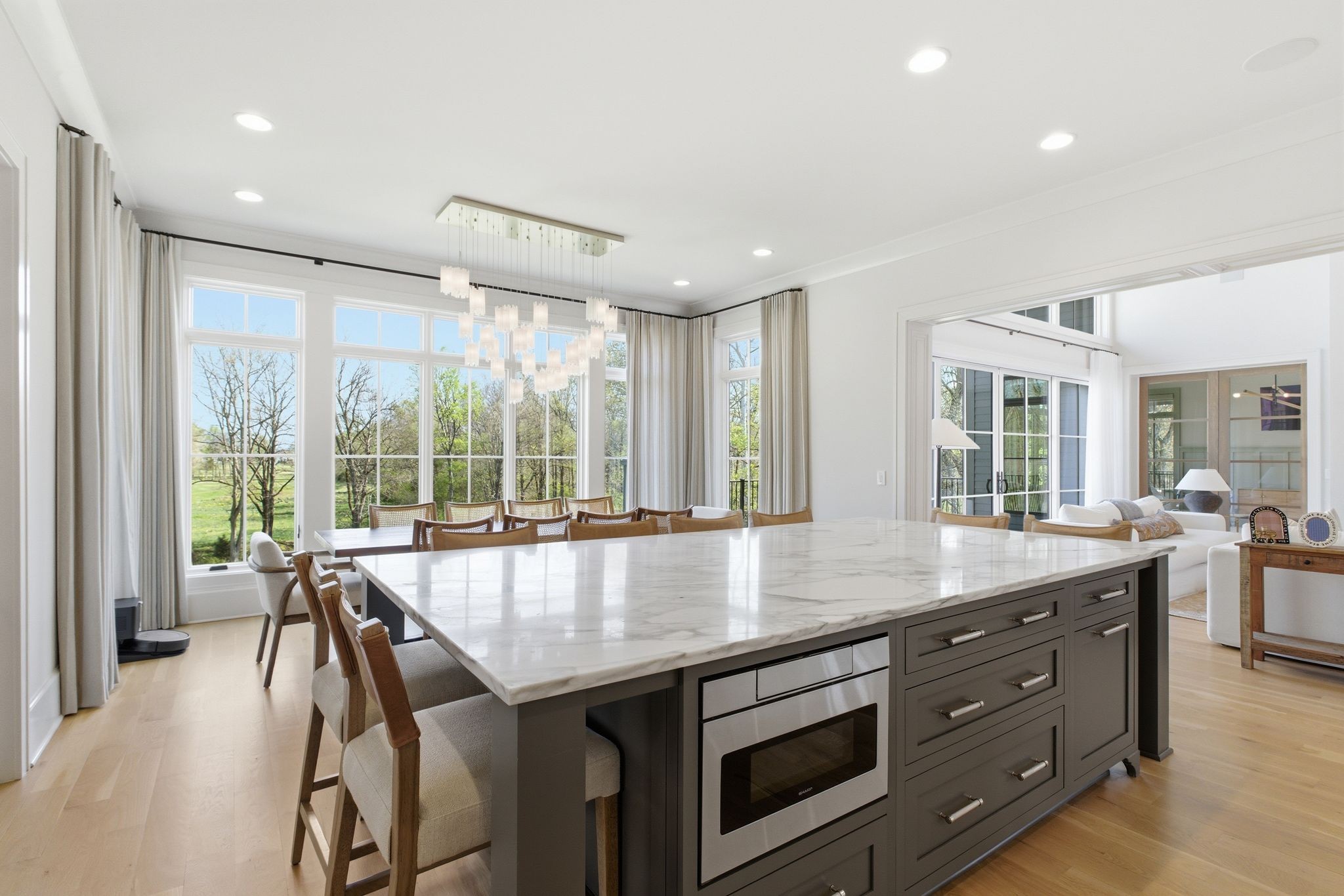 This magnificently designed Modern English Romantic residence offers 8,314 square feet of refined living in one of The Grove’s most picturesque settings. Upon entry, you’re immediately captivated by sweeping golf course views framed through the dramatic two-story family room, extending seamlessly across the covered terrace to the 16th green and fairway beyond. The main level showcases a luxurious primary suite with a vaulted ceiling, private covered porch overlooking the course, and dual walk-in closets. Additional highlights include a private study, expansive great room, and elevator access to all three levels. The outdoor living space is thoughtfully appointed with a covered porch featuring a built-in ceiling heater, fireplace, grill, and electric screens—creating a true year-round retreat. Upstairs, three ensuite bedrooms, a loft with dual swings, and a dedicated home office provide both comfort and flexibility. The lower level is designed for elevated entertaining, offering an additional ensuite bedroom, custom bunk room, full bar, three covered porches, and generous storage. A truly exceptional offering in The Grove, blending timeless design with modern luxury.