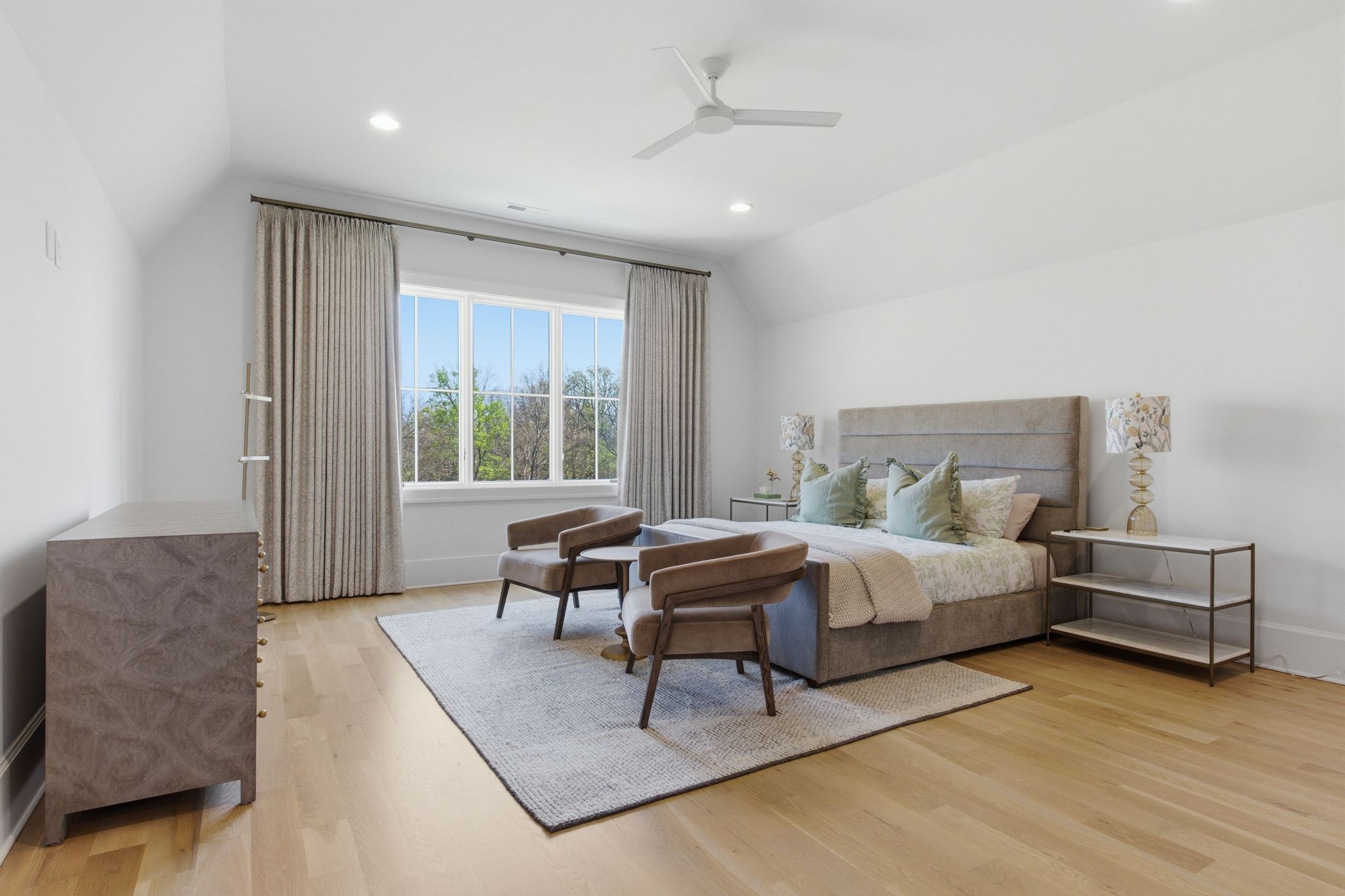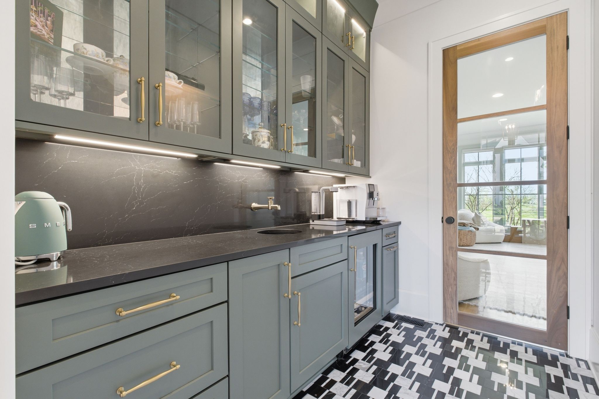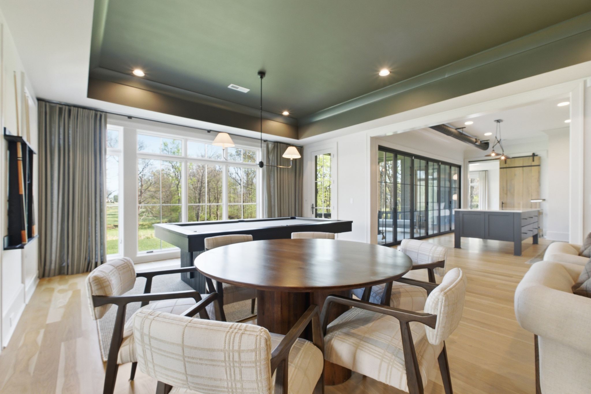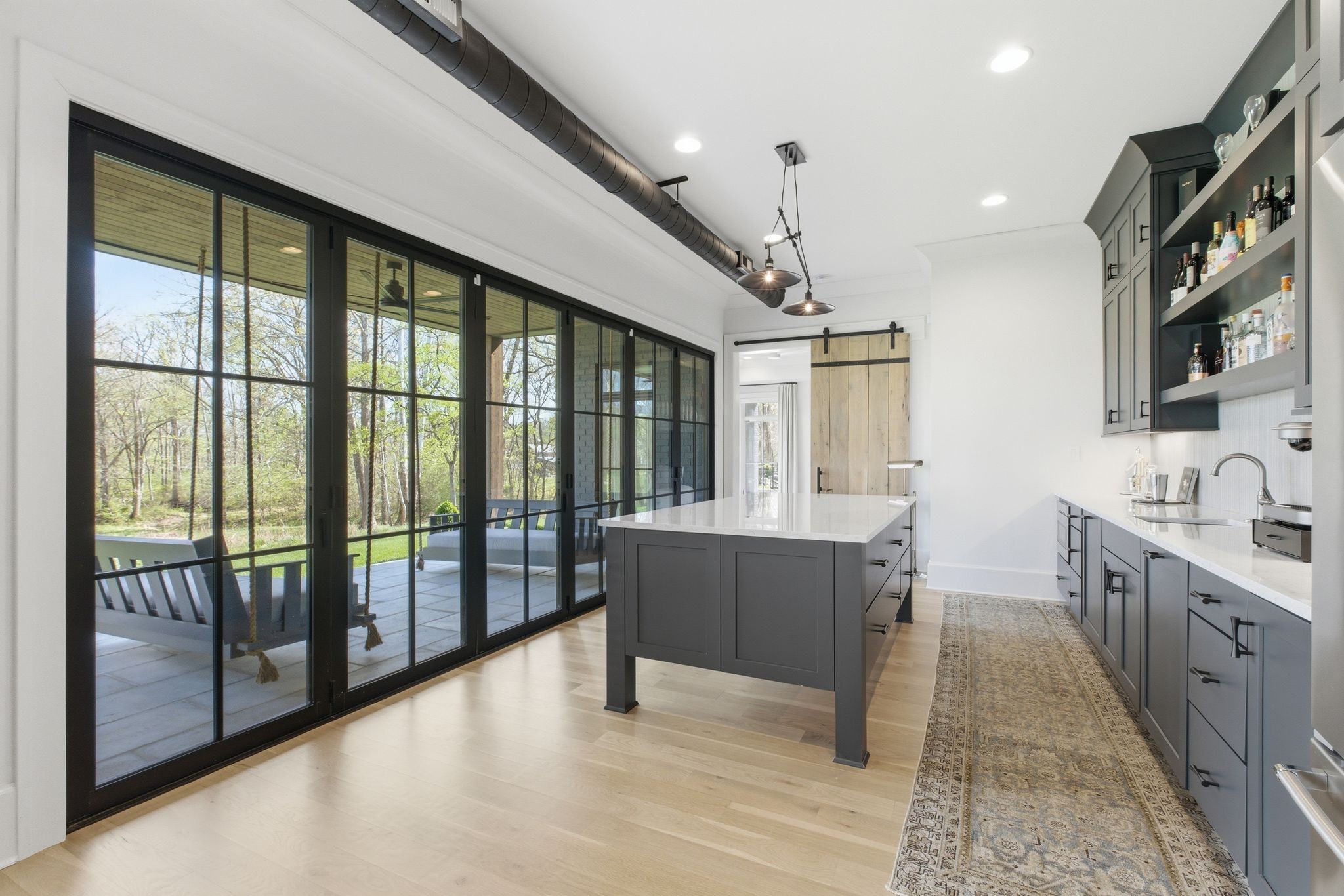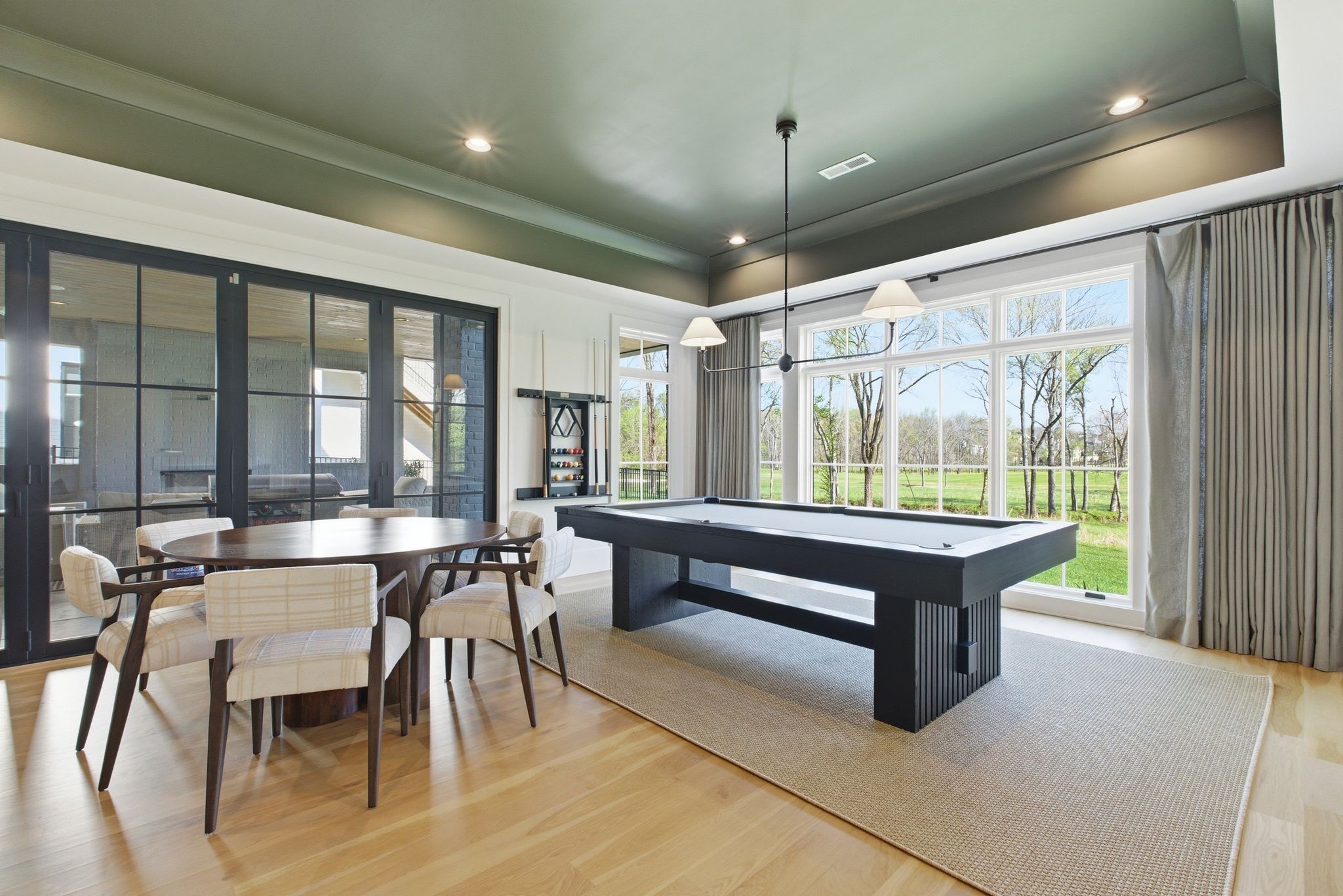 This magnificently designed Modern English Romantic residence offers 8,314 square feet of refined living in one of The Grove’s most picturesque settings. Upon entry, you’re immediately captivated by sweeping golf course views framed through the dramatic two-story family room, extending seamlessly across the covered terrace to the 16th green and fairway beyond. The main level showcases a luxurious primary suite with a vaulted ceiling, private covered porch overlooking the course, and dual walk-in closets. Additional highlights include a private study, expansive great room, and elevator access to all three levels. The outdoor living space is thoughtfully appointed with a covered porch featuring a built-in ceiling heater, fireplace, grill, and electric screens—creating a true year-round retreat. Upstairs, three ensuite bedrooms, a loft with dual swings, and a dedicated home office provide both comfort and flexibility. The lower level is designed for elevated entertaining, offering an additional ensuite bedroom, custom bunk room, full bar, three covered porches, and generous storage. A truly exceptional offering in The Grove, blending timeless design with modern luxury.