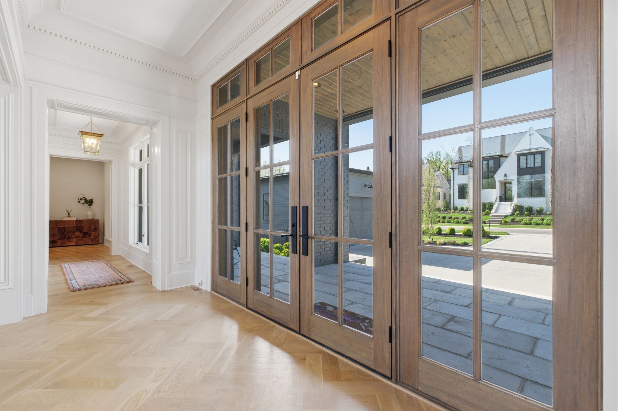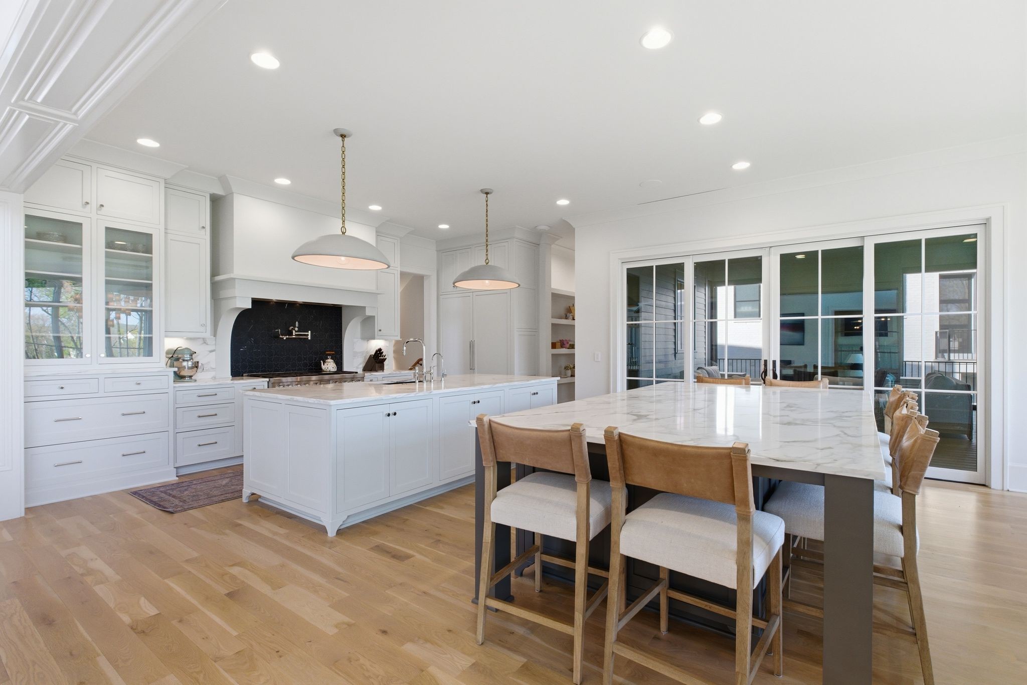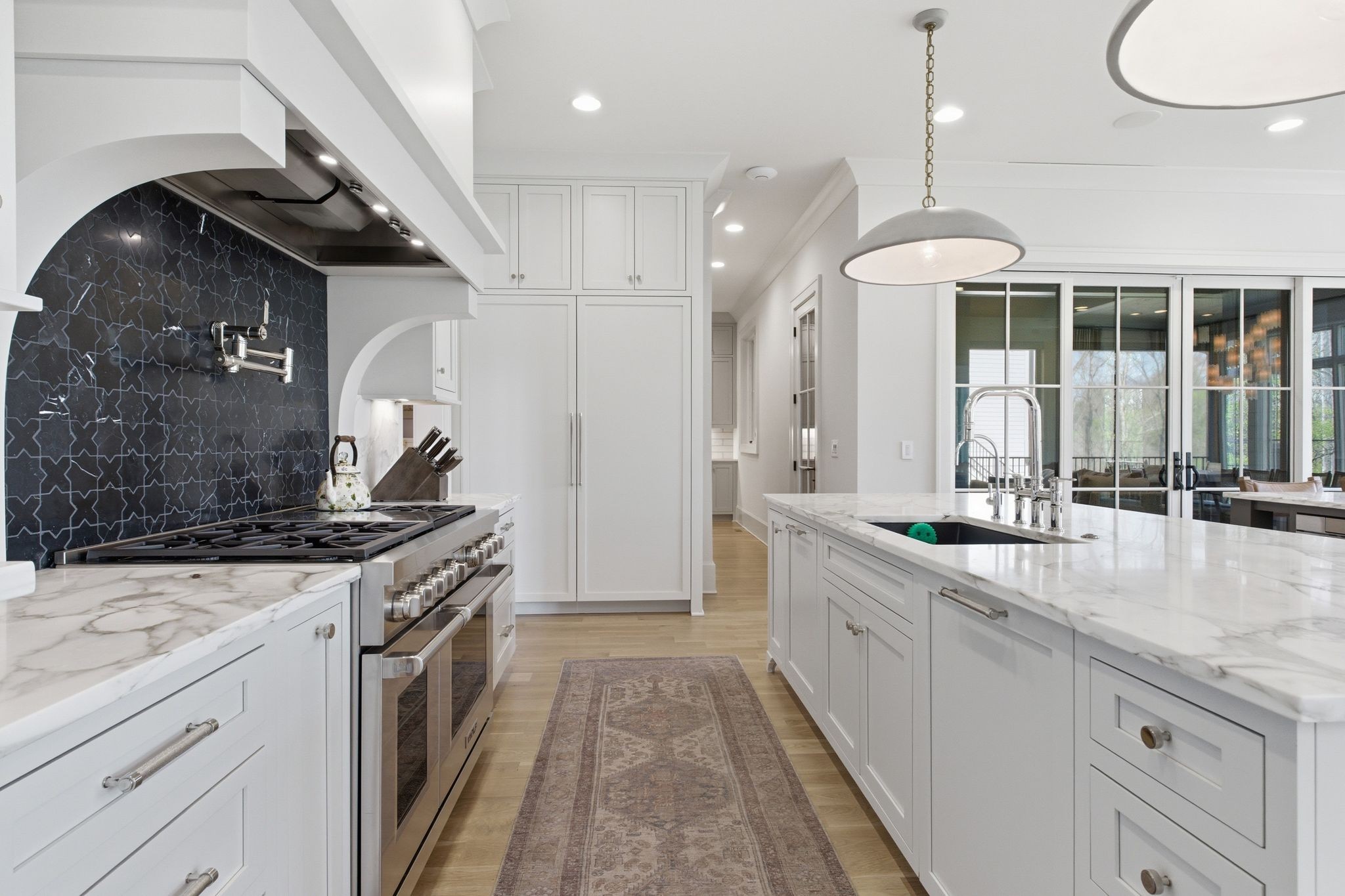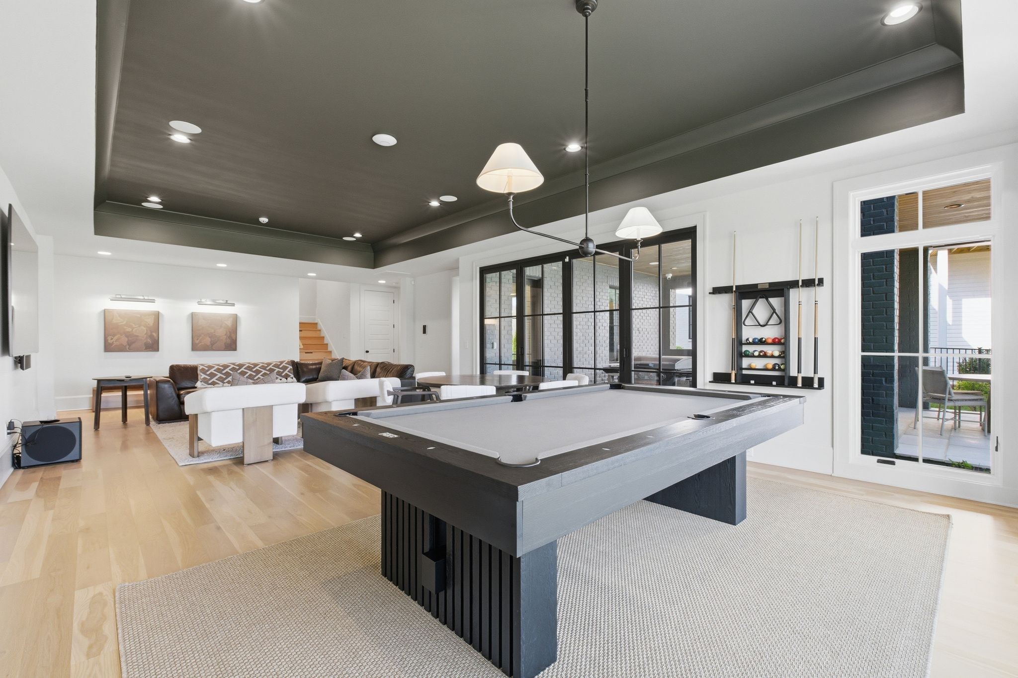 This magnificently designed Modern English Romantic residence offers 8,314 square feet of refined living in one of The Grove’s most picturesque settings. Upon entry, you’re immediately captivated by sweeping golf course views framed through the dramatic two-story family room, extending seamlessly across the covered terrace to the 16th green and fairway beyond. The main level showcases a luxurious primary suite with a vaulted ceiling, private covered porch overlooking the course, and dual walk-in closets. Additional highlights include a private study, expansive great room, and elevator access to all three levels. The outdoor living space is thoughtfully appointed with a covered porch featuring a built-in ceiling heater, fireplace, grill, and electric screens—creating a true year-round retreat. Upstairs, three ensuite bedrooms, a loft with dual swings, and a dedicated home office provide both comfort and flexibility. The lower level is designed for elevated entertaining, offering an additional ensuite bedroom, custom bunk room, full bar, three covered porches, and generous storage. A truly exceptional offering in The Grove, blending timeless design with modern luxury.