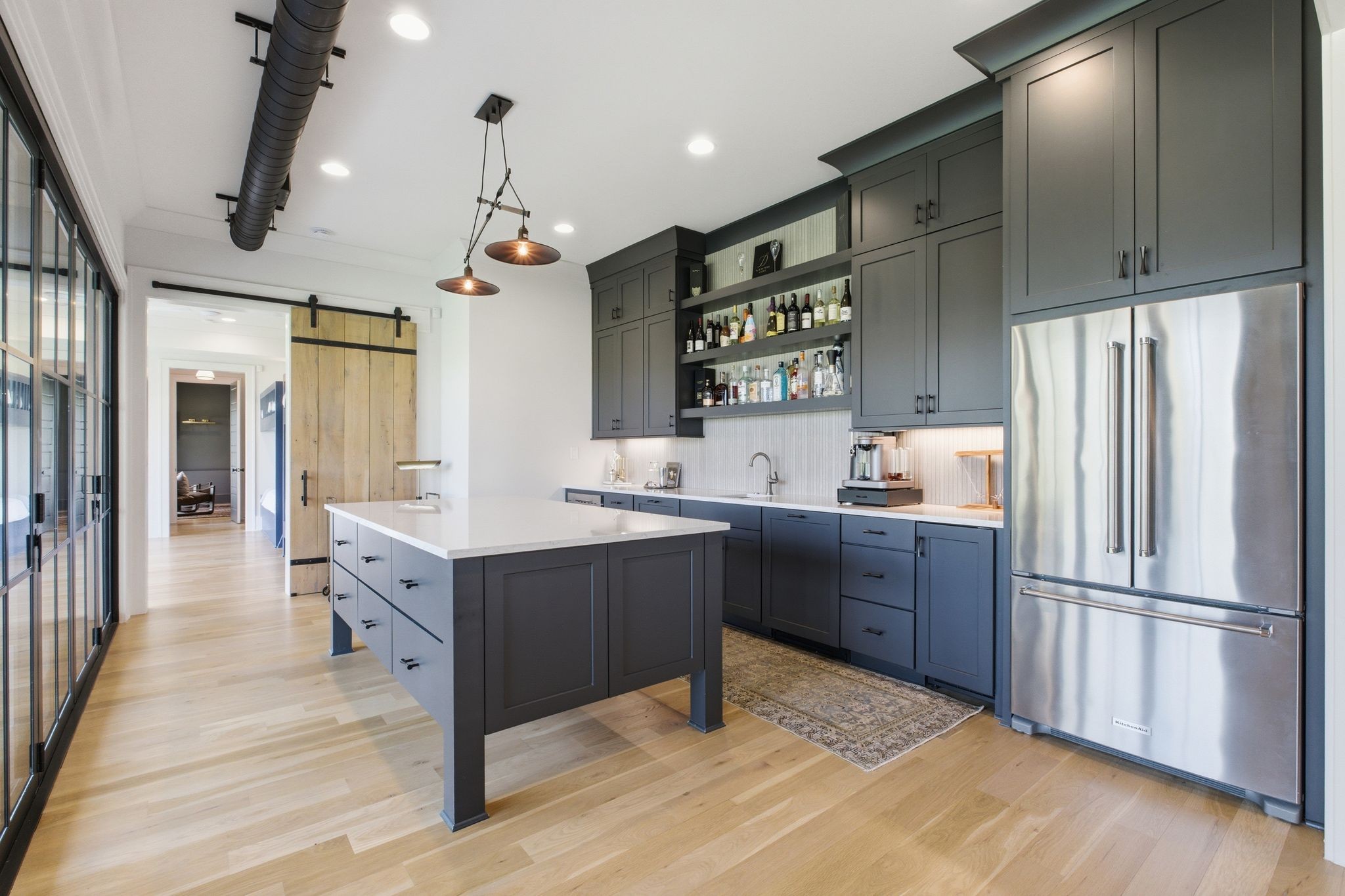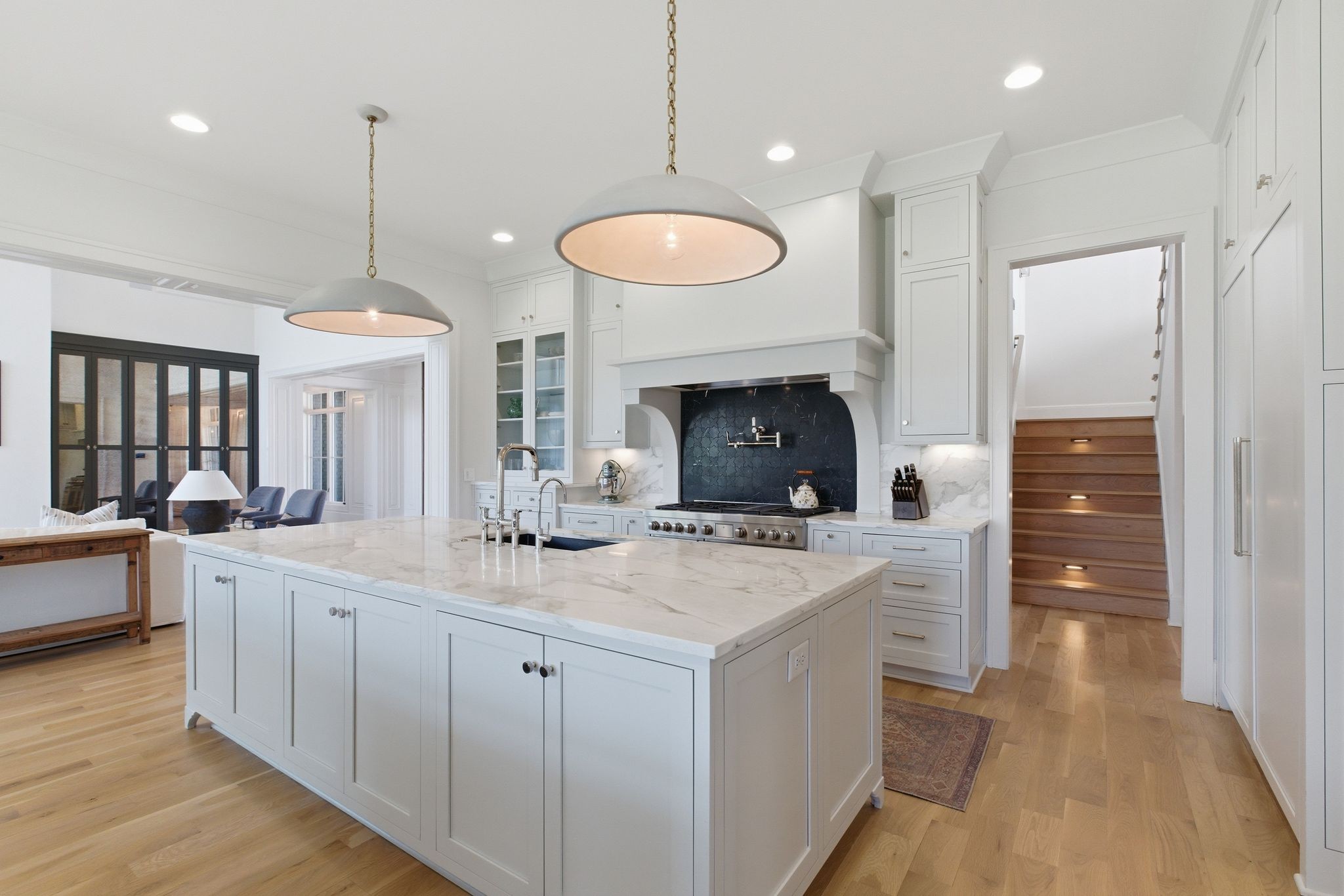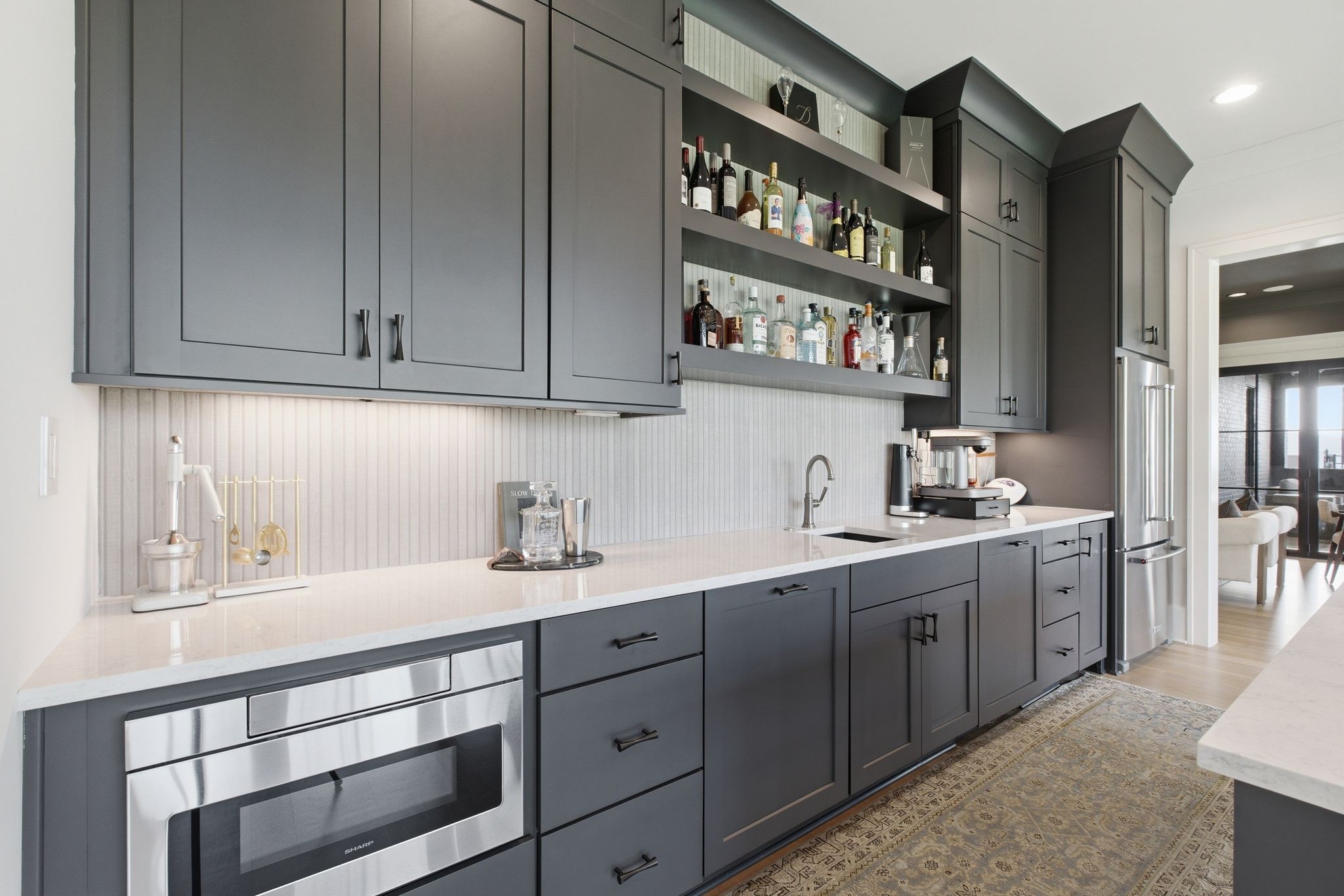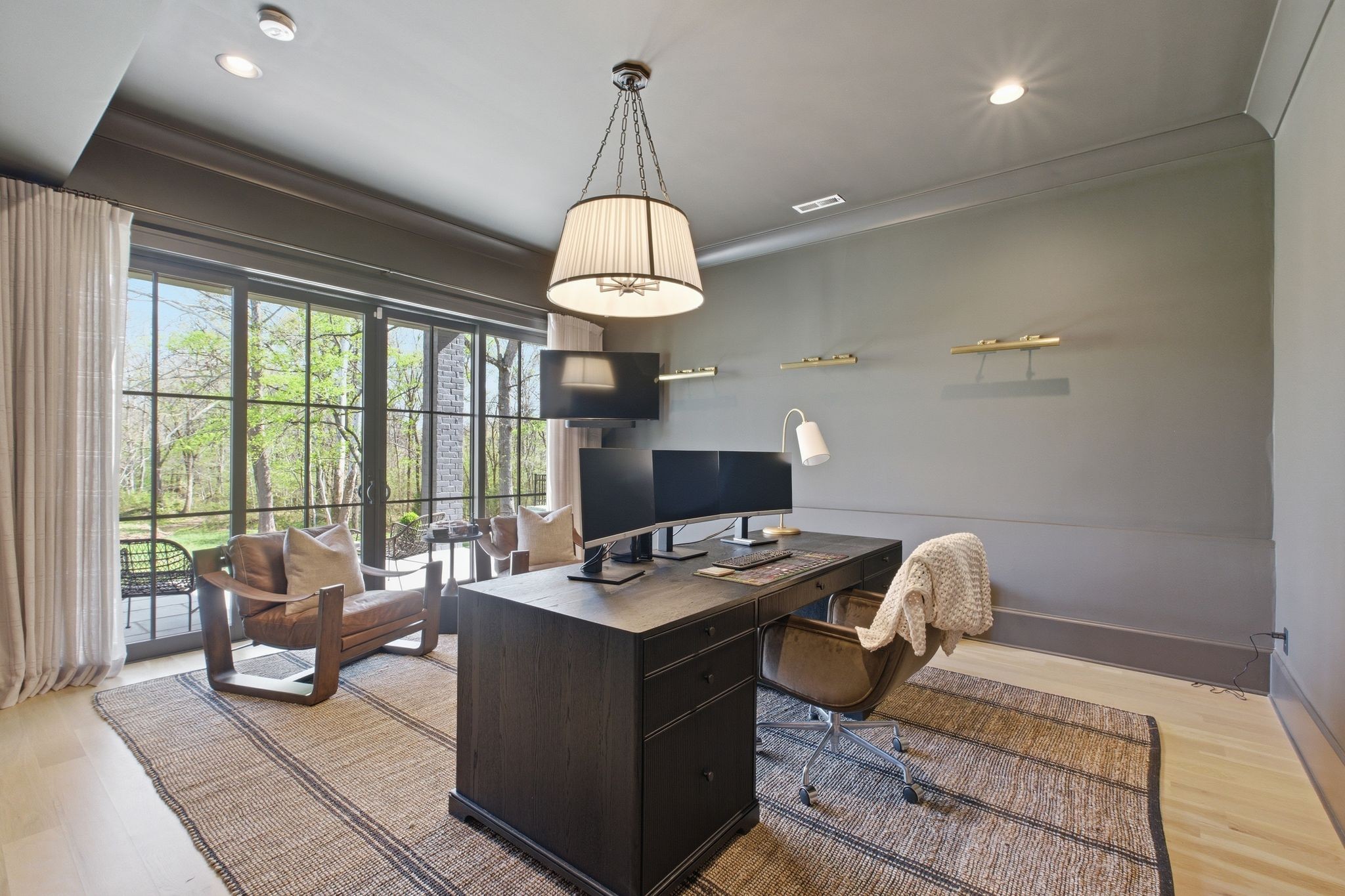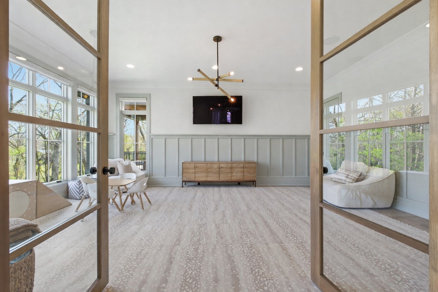 This magnificently designed Modern English Romantic residence offers 8,314 square feet of refined living in one of The Grove’s most picturesque settings. Upon entry, you’re immediately captivated by sweeping golf course views framed through the dramatic two-story family room, extending seamlessly across the covered terrace to the 16th green and fairway beyond. The main level showcases a luxurious primary suite with a vaulted ceiling, private covered porch overlooking the course, and dual walk-in closets. Additional highlights include a private study, expansive great room, and elevator access to all three levels. The outdoor living space is thoughtfully appointed with a covered porch featuring a built-in ceiling heater, fireplace, grill, and electric screens—creating a true year-round retreat. Upstairs, three ensuite bedrooms, a loft with dual swings, and a dedicated home office provide both comfort and flexibility. The lower level is designed for elevated entertaining, offering an additional ensuite bedroom, custom bunk room, full bar, three covered porches, and generous storage. A truly exceptional offering in The Grove, blending timeless design with modern luxury.