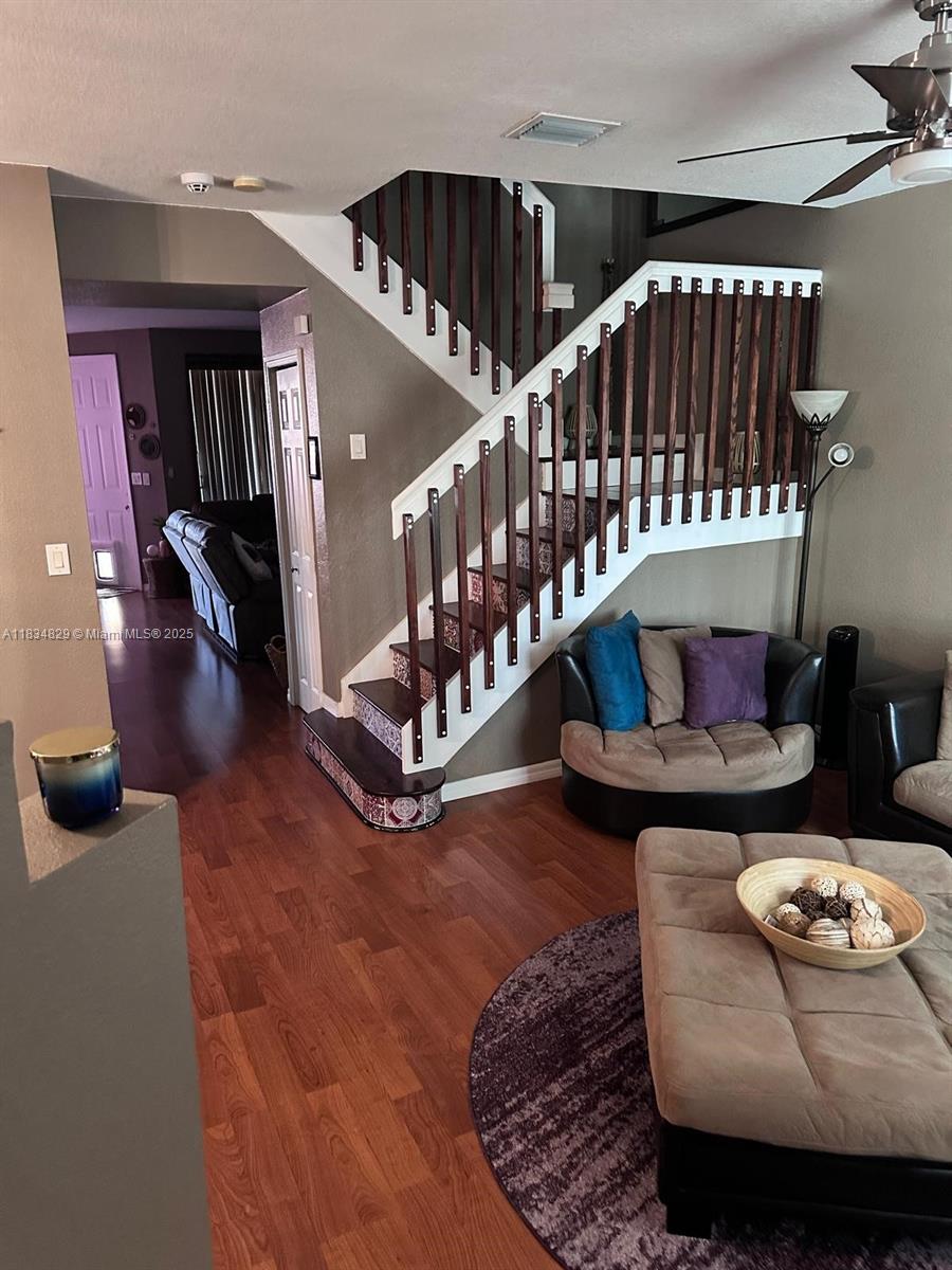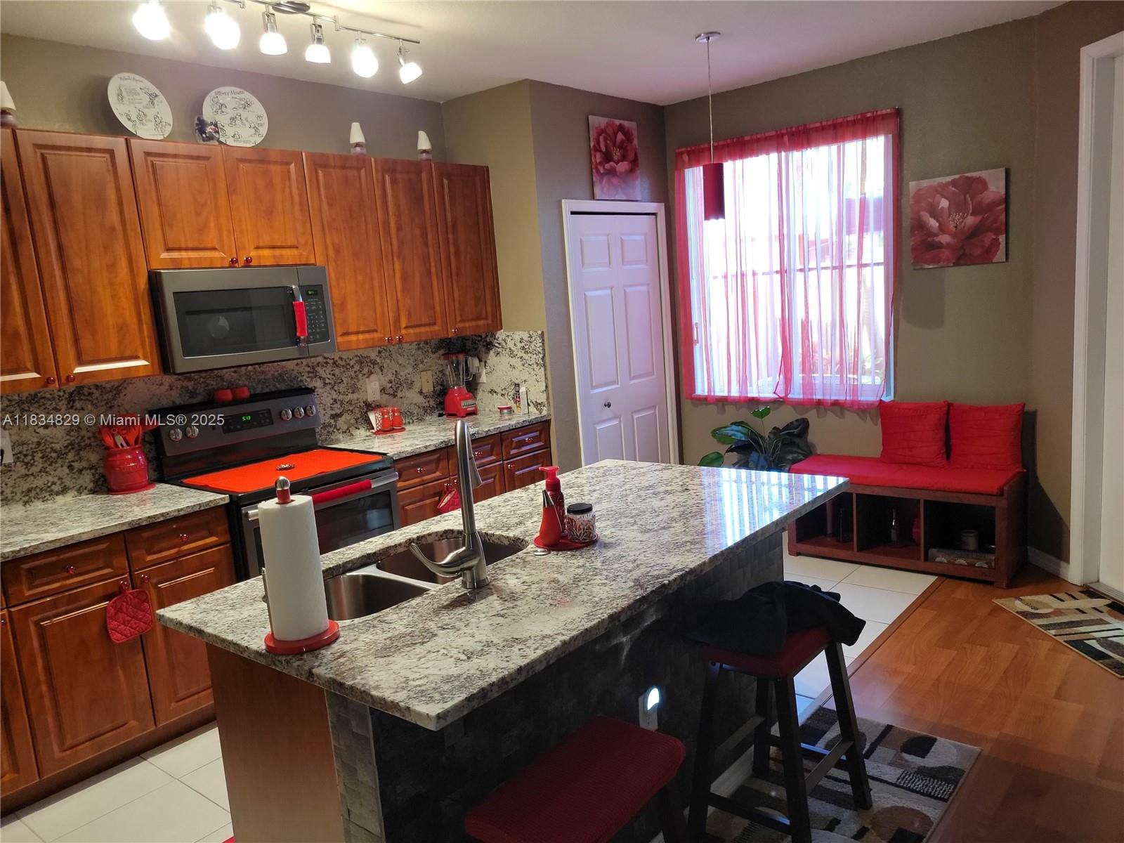 OWNER'S LOSS, YOUR GAIN. HUGE PRICE REDUCTION. Exceedingly well-maintained townhouse in family-oriented neighborhood to call home. The moment you enter, owner's pride is obvious. Soft accent wall decor, combination of laminate and tile flooring, stained wood staircase, sparkling bathrooms, bright and airy atmosphere to a cozy and welcoming backyard patio ideal for relaxation and 'me time.' Complimenting this breathtaking unit: upgraded granite countertops in the kitchen, recently installed impact windows, new AC unit, ring doorbell and Vivint alarm security system, wood kitchen cabinets, walk - in closet, and separate dining area. The property also has a water view from across the road. Seeing is actually believing. To appreciate, what we offer, make this stop a MUST while house hunting.