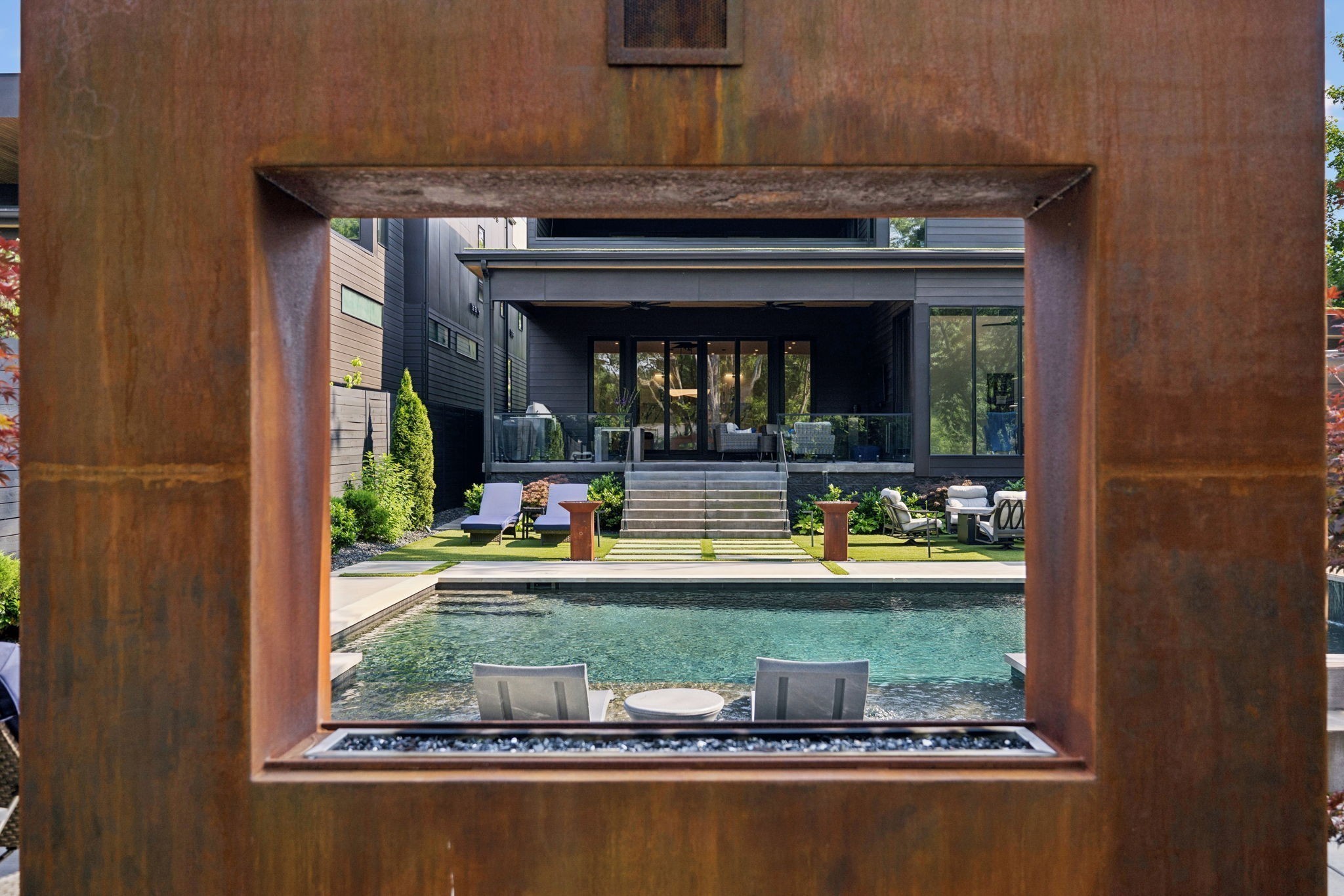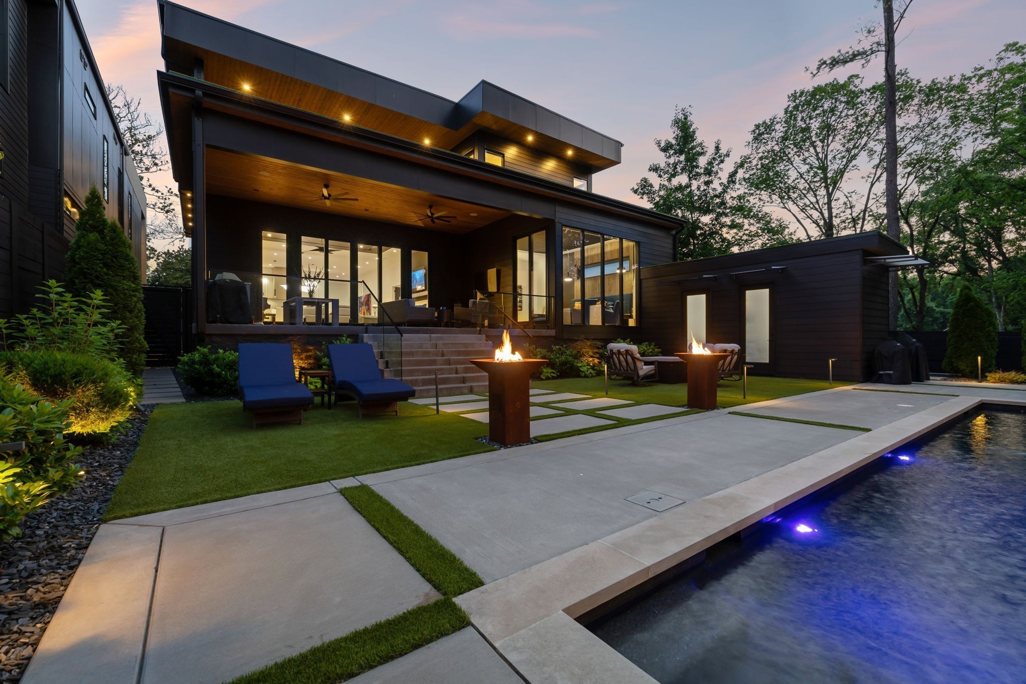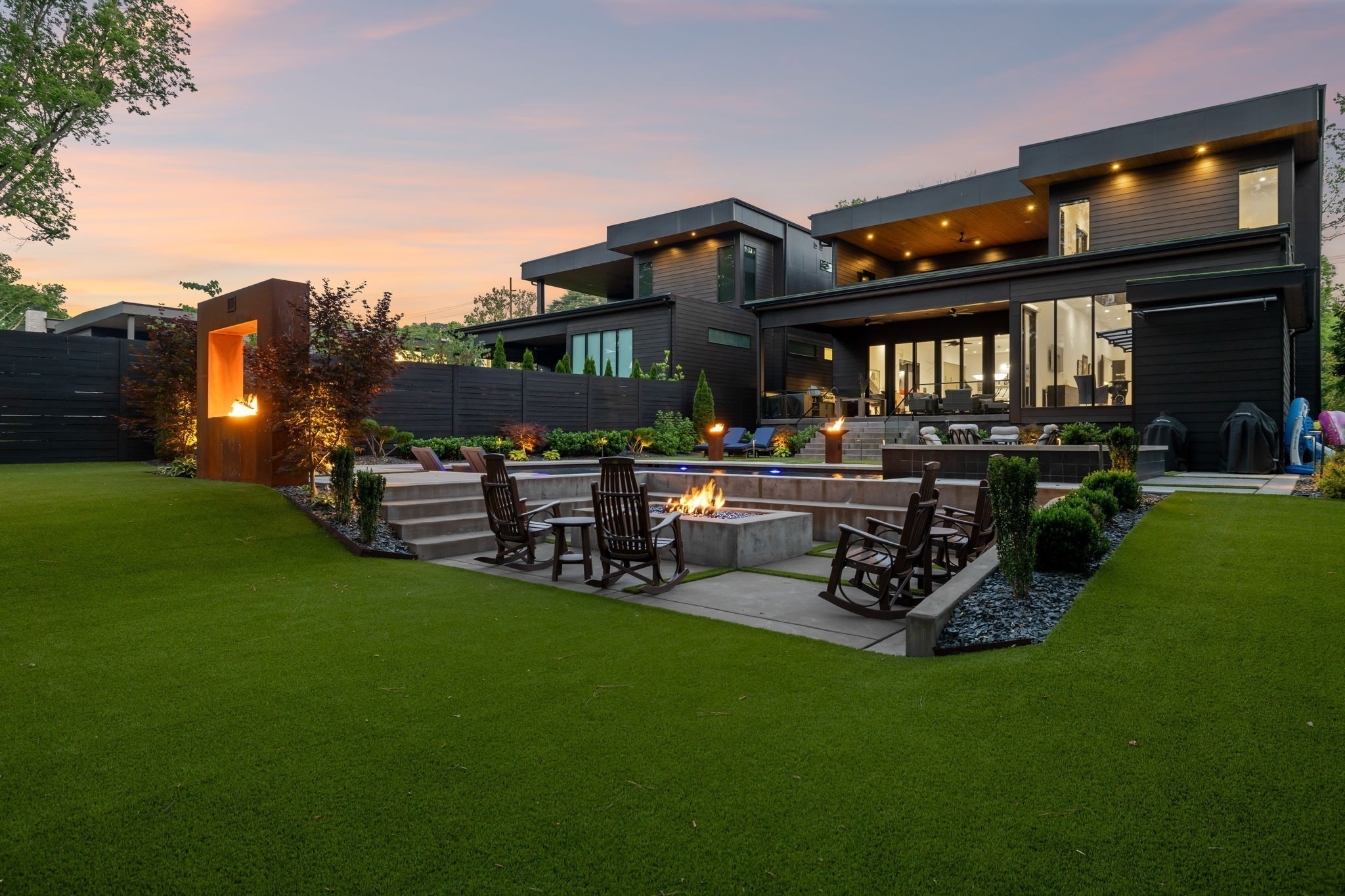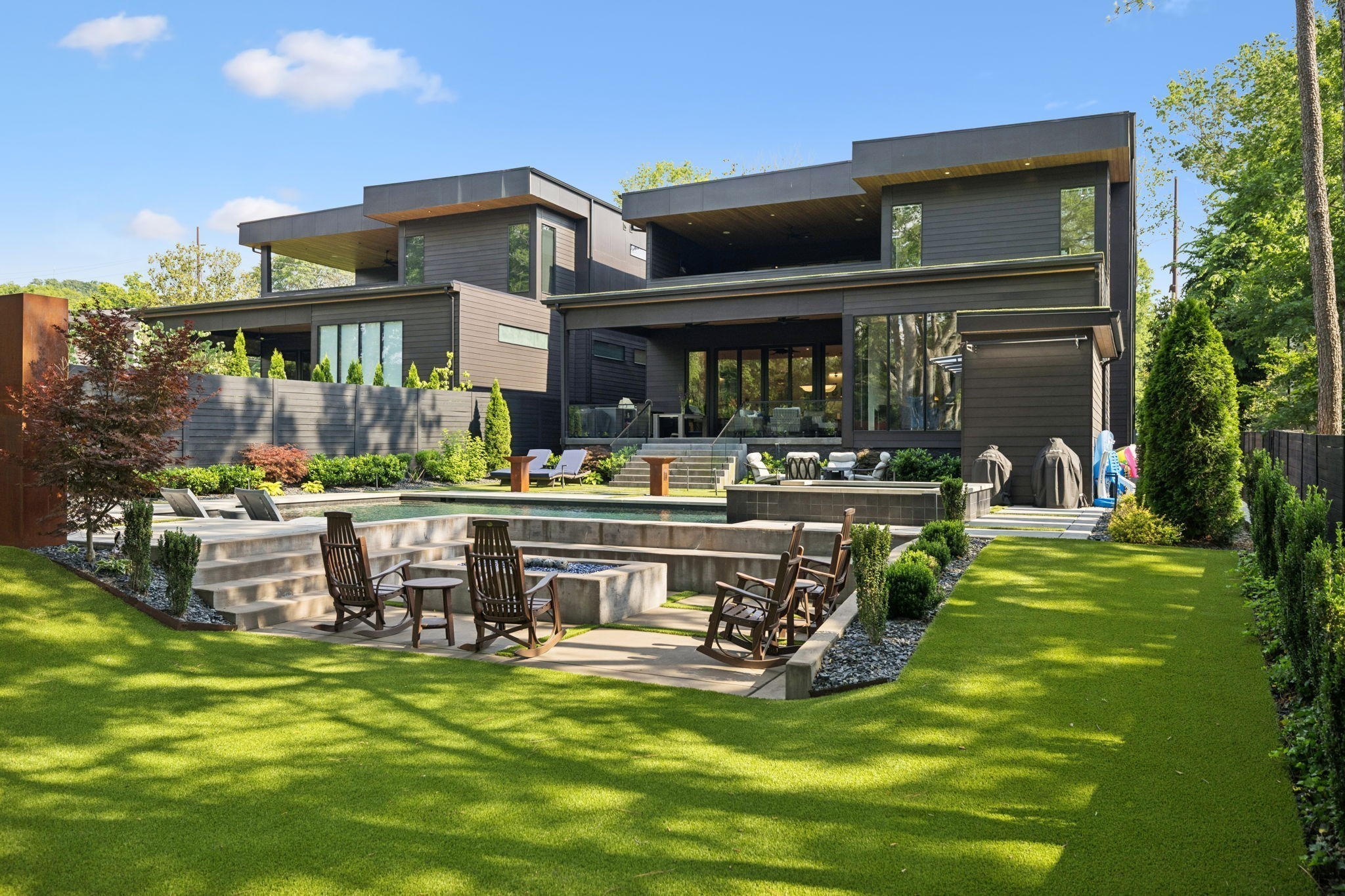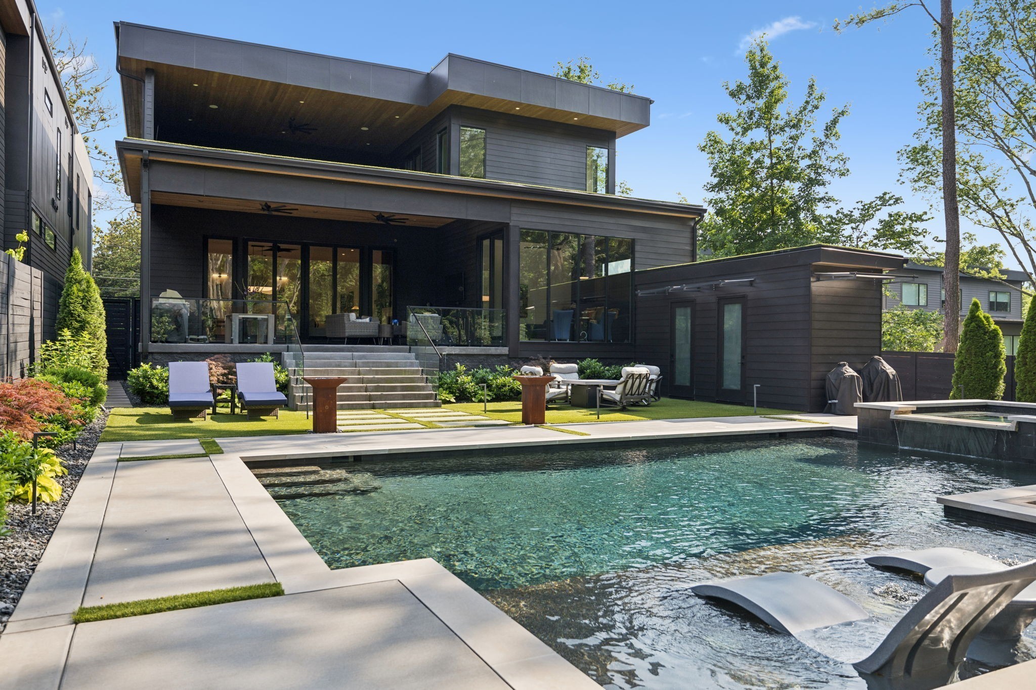 Coming soon . First showing Tuesday, March 24 th, Private gated modern with all the features for entertaining, ease of living and extremely low maintenance. No detail left out. GENERATOR for the entire home, a backyard that is a sanctuary oasis, pool bath and pool house, fire pit, designer fire sculpture, large backyard 1/2 turf for easy maintenance and 1/2 grass for your furry friend. Floating stairs, huge pivot glass door, glass railing, Chef's kitchen, scullery with custom coffee bar, refrig and dishwasher. All cabinets in kitchen and scullery are all custom built with pull out cabinets and drawers. 3 dishwashers in the home. Dishwasher in scullery, kitchen and upstairs family room. Primary bedroom is surrounded by glass on 2 walls for full view of an outdoor oasis. Spa-like master bath with his and her extra large custom closets. Auto toilet with every bell and whistle. 2nd bedroom or office with ensuite full bath on main level. Upstairs 4 more bedrooms or 3 and workout/office. All bedrooms have walk-in closets and are ensuites. Family room with bar area, wine refrig and dishwasher. Upstairs has 2 additional decks - great for entertaining. Additional laundry room upstairs with access to smart house station. Outside has a pool house which includes bath and storage, heated pool, hot tub, and 4 fire features designed with custom iron artwork, detailed landscape with lighting, outdoor porch with grill, sink and tons of storage. Speakers and additional internet system thru out inside and out. Large mature trees, custom lighting inside and out. Control 4 for all automation, automatic blinds thru out, generac generator for entire home, electric car charger, plus additional security cameras thru out. Additonal tankless water heater installed to accommodate 9 bathrooms. 10 minutes to Green Hills, 15 minutes to airport.