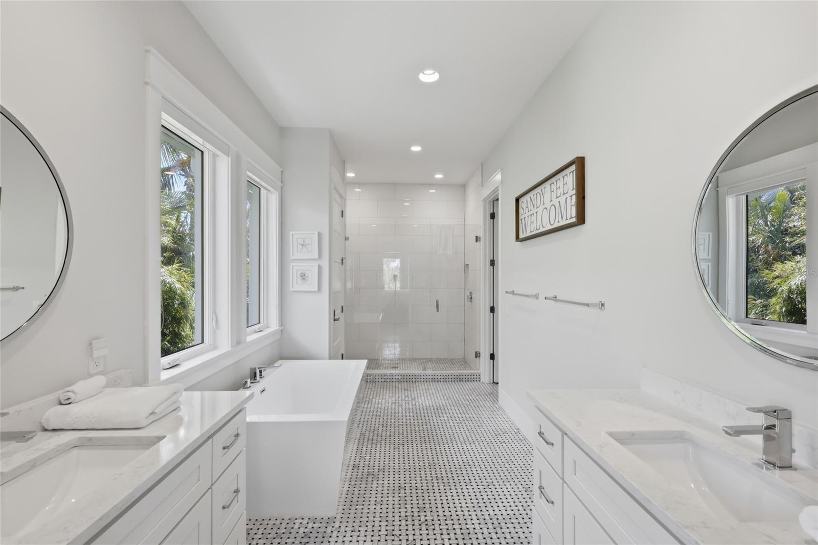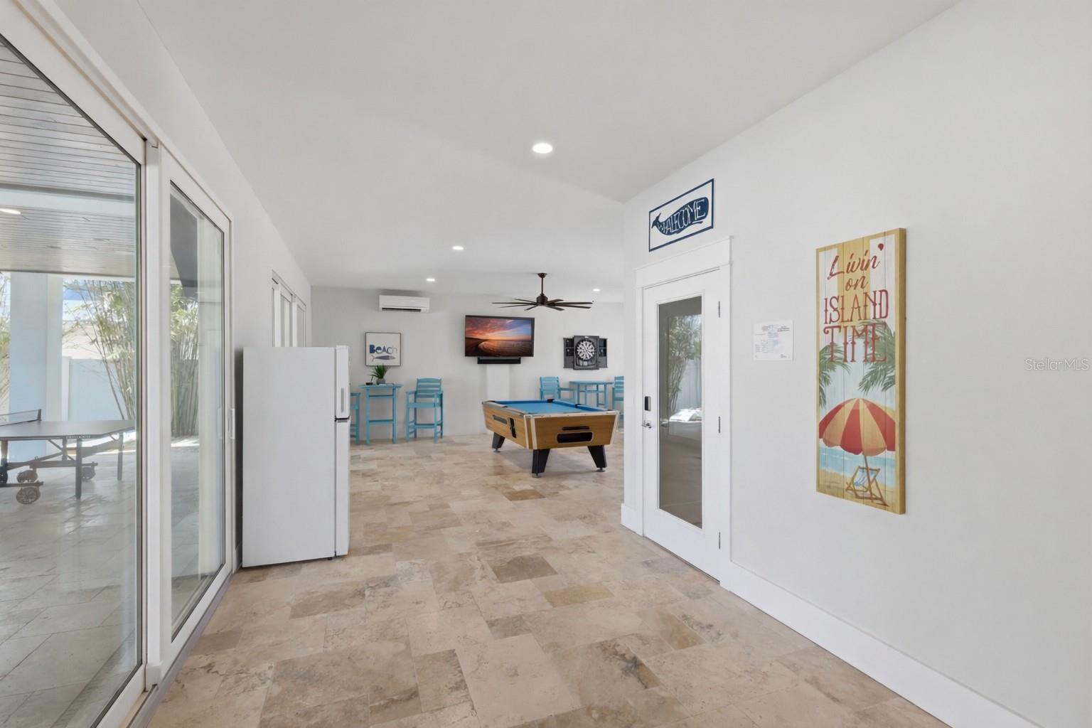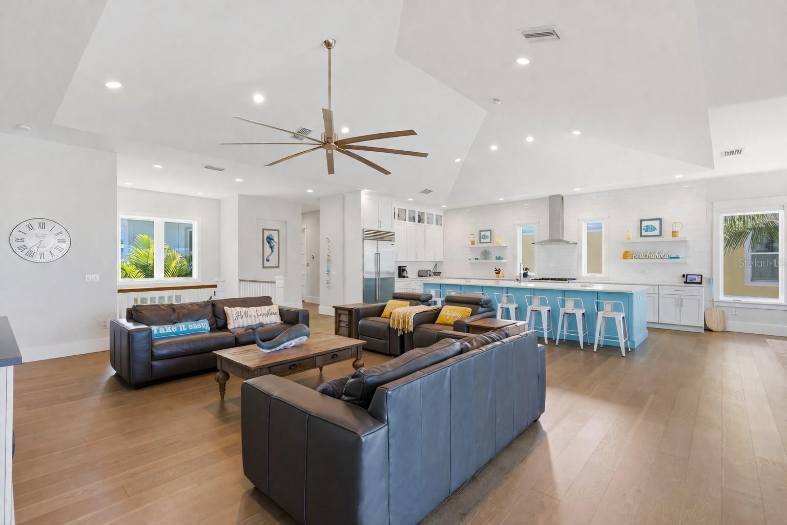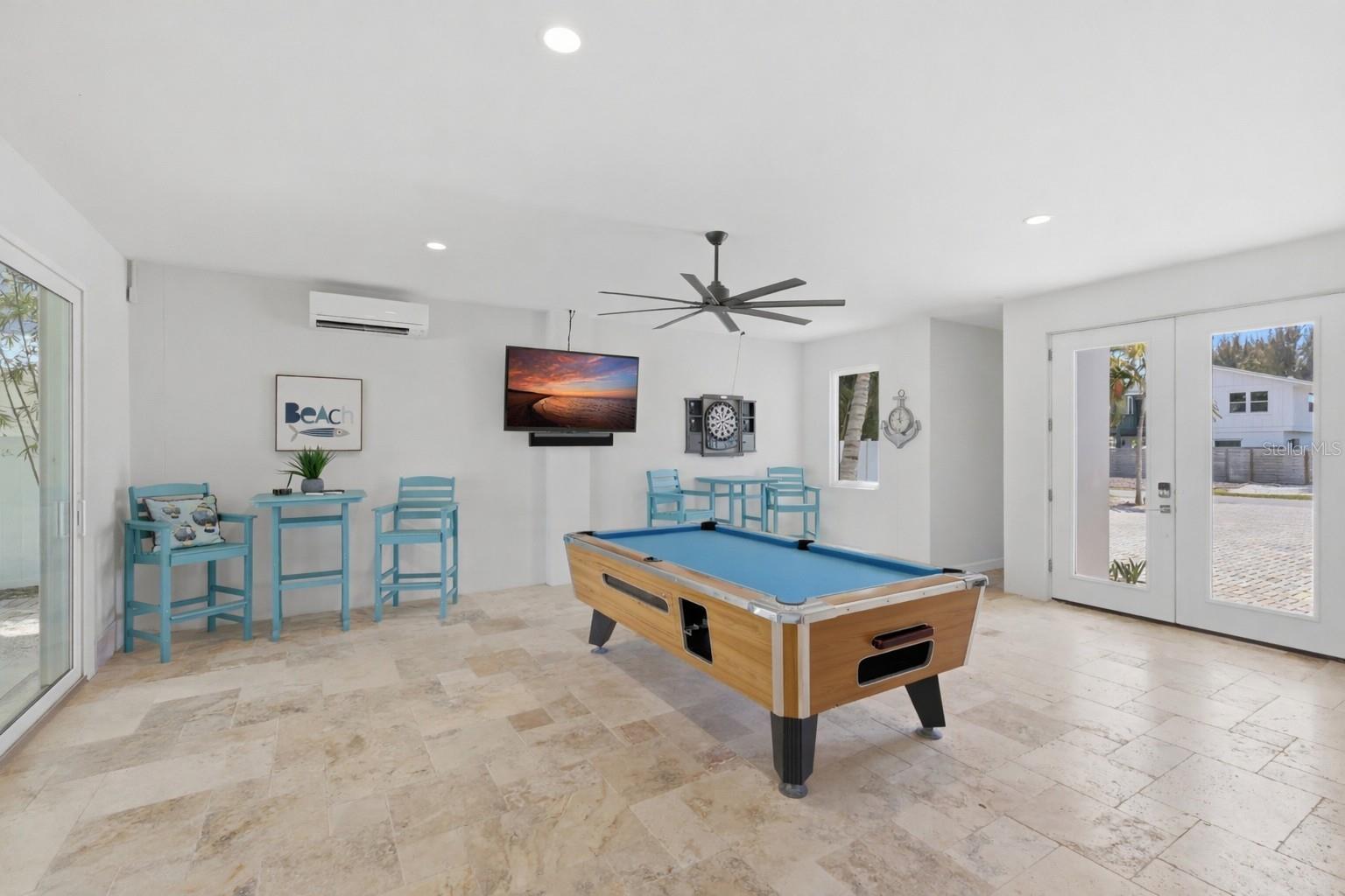 Outdoor living is where this home truly shines. The private backyard retreat features a heated pool and spa with sun exposure, an expansive pool deck, lush tropical landscaping, and multiple outdoor living and dining areas designed for relaxing, entertaining, and enjoying the island breeze. Whether you’re gathering for sunset cocktails, enjoying a quiet evening under the stars, or unwinding after a beach day, this space feels like a personal resort.