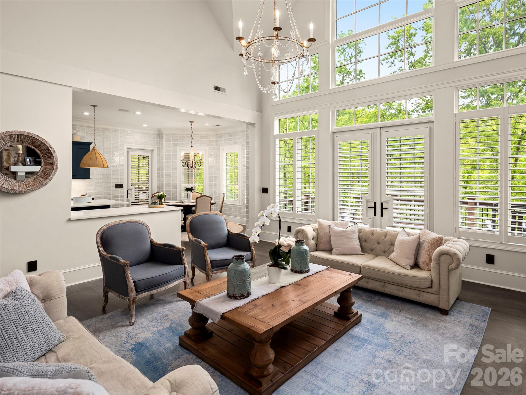 Exquisite 4 bedrooms and 4.5 baths home borders the Pisgagh National Forest and situated within the gates of Walnut Cove. Thoughtfully renovated, this luxury retreat offers seamless harmony between refined design and the natural beauty of this private estate with views. Gather in the enclosed porch with a stone fireplace just off the kitchen, where sweeping views provide the perfect backdrop for year-round enjoyment.