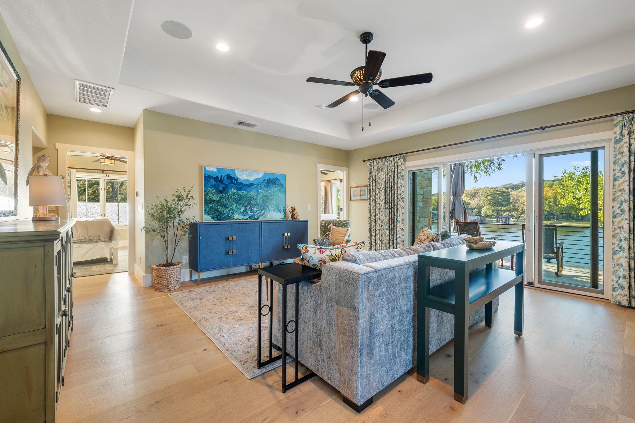 Gracefully poised along the coveted shores of Lake Austin, this is a rare expression of private waterfront luxury—where Mediterranean elegance meets the effortless rhythm of life on the water. Set behind an electric gate and embraced by mature trees and lush landscaping, this estate offers a level of privacy and serenity seldom found on the lake. Originally crafted in 2007 and thoughtfully reimagined between 2021 and 2024, the home has been elevated with substantial, high-quality updates that honor its architectural roots while delivering modern comfort and refinement. The heart of the home is a completely redesigned kitchen featuring Thermador and JennAir appliances, seamlessly blending form and function for both everyday living and elevated entertaining. New HVAC systems, water heaters, fresh interior paint, and a suite of Pella windows and doors along the lakefront—plus a striking new Pella front door—ensure comfort, efficiency, and uninterrupted views. With 4 bedrooms, 4.5 baths, the layout is both generous and versatile. A newly constructed full bath in the office/guest suite further enhances flexibility, making the home equally suited for hosting guests or creating a private retreat within the residence. Multiple living areas and decks invite moments of connection or quiet retreat, each oriented to capture the ever-changing beauty of Lake Austin. Outdoors, the property truly distinguishes itself. Spanning a .223-acre lot with an impressive 100 feet of Lake Austin frontage, the composite deck stretches the full width of the property—anchored by a private boat and jet ski dock on one end and a covered lakeside entertainment pavilion on the other. Whether hosting sunset gatherings, enjoying shaded afternoons beneath the trees, or curling up indoors with panoramic water views, this home was designed to entertain beautifully while remaining deeply personal and cozy.