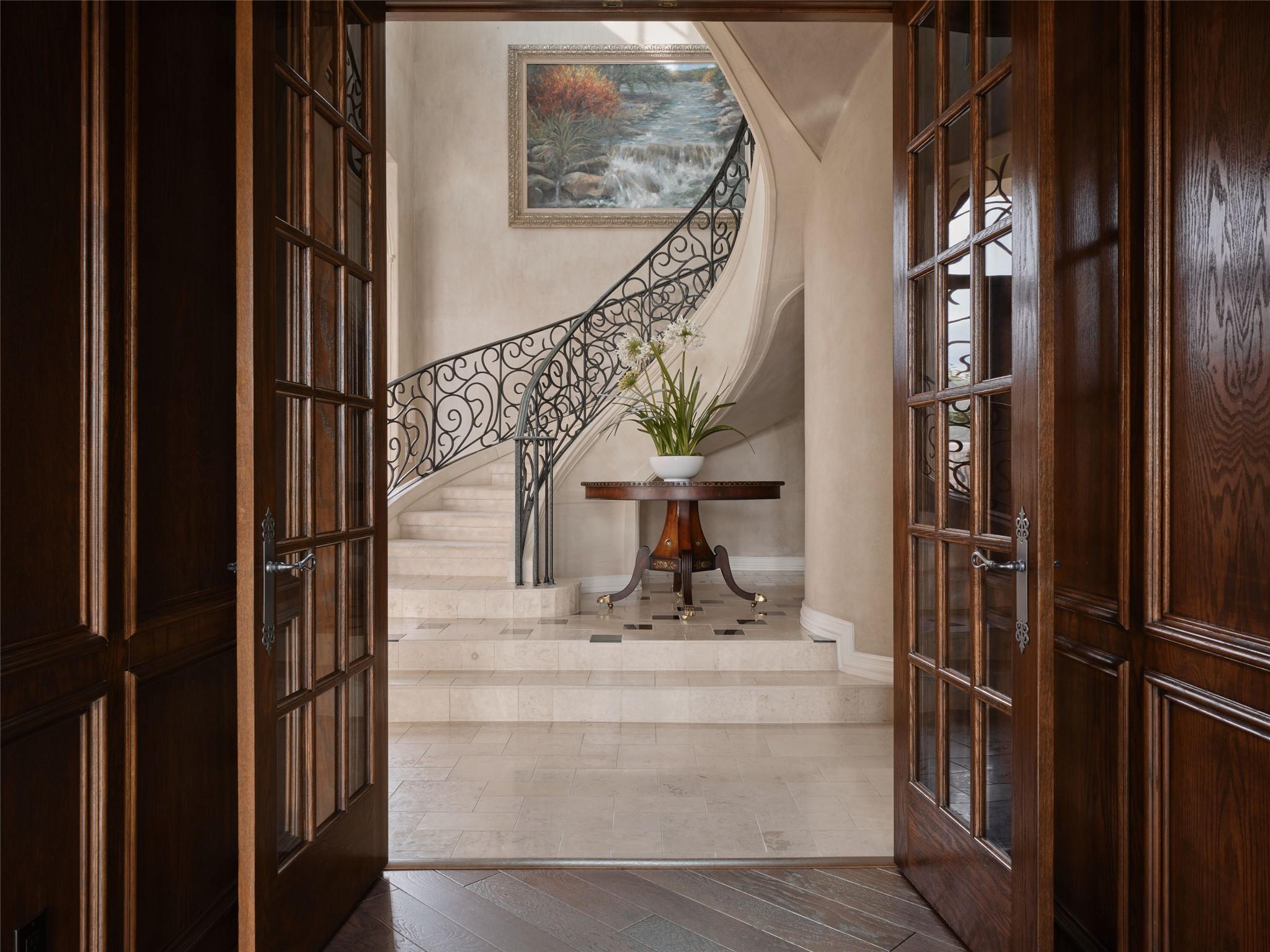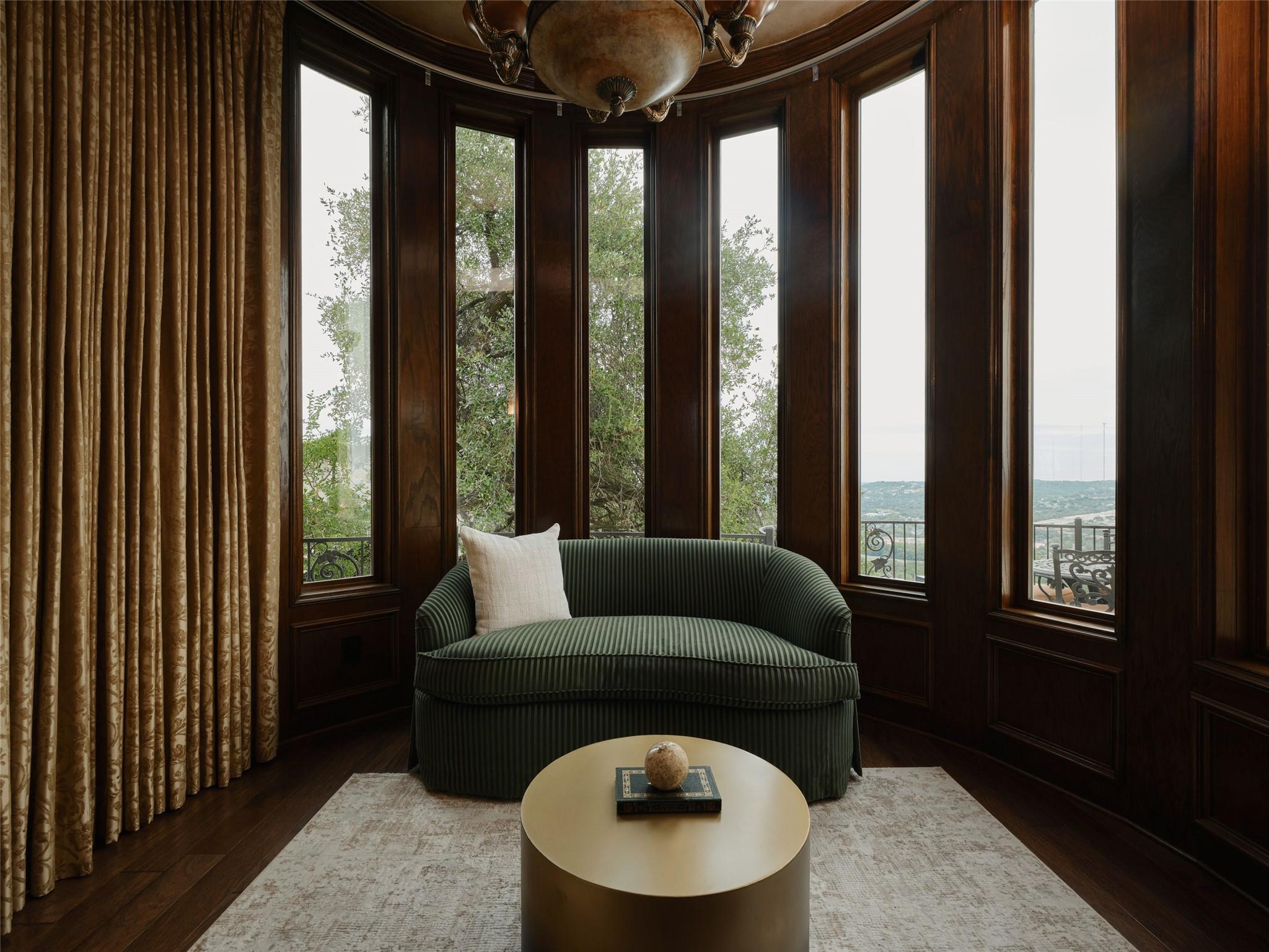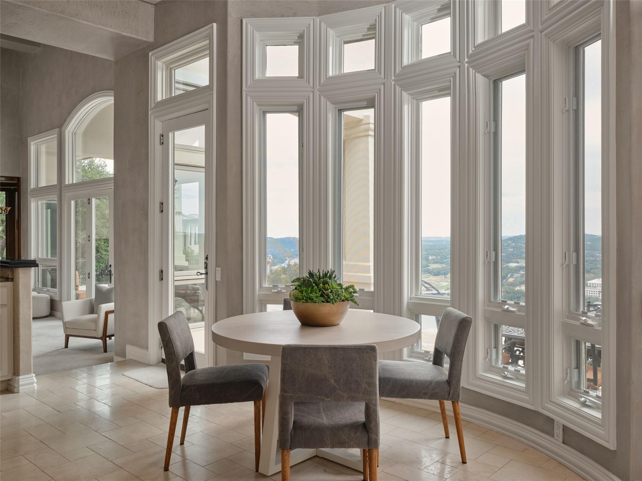 Rising above one of Austin’s most iconic corridors, The Panorama Estate commands a breathtaking and irreplaceable vantage point where Lake Austin, the Pennybacker Bridge, Austin Country Club, the downtown skyline, and miles of Hill Country views come together in a single panorama. This is not simply a home with a view. It is a property defined by elevation, position, and protected sightlines that cannot be replicated. Privately gated on a prized 0.41 acre promontory, the 4,407 square foot residence offers a rare combination of presence and ease. A true lock and leave estate, the home lives expansively while remaining low maintenance. For buyers seeking privacy, security, and effortless ownership, this is a lifestyle opportunity perfectly suited to today’s luxury buyer. Designed to embrace its surroundings, the home features soaring ceilings, architectural arches, and curved walls of glass that frame the horizon from nearly every major living space. The pool and spa terrace appear to float above Lake Austin below, creating a resort caliber setting ideal for entertaining, relaxing, or enjoying one of the finest backdrops in the city. The nearly 1,000 square foot primary suite serves as a private sanctuary with fireplace, dual closets, and panoramic views. Three additional ensuite bedrooms, a richly appointed study, and multiple living and dining areas provide flexibility for guests and work from home living without unnecessary upkeep. Offered move in ready, The Panorama also holds thoughtful future potential for the next owner to personalize over time while preserving the integrity of this exceptional setting. Iconic Austin views are finite. Opportunities at this level are even rarer. The Panorama represents one of the most compelling view properties available in the city. Located within Austin ISD and minutes from downtown, Loop 360, and Lake Austin, this is Austin living elevated.