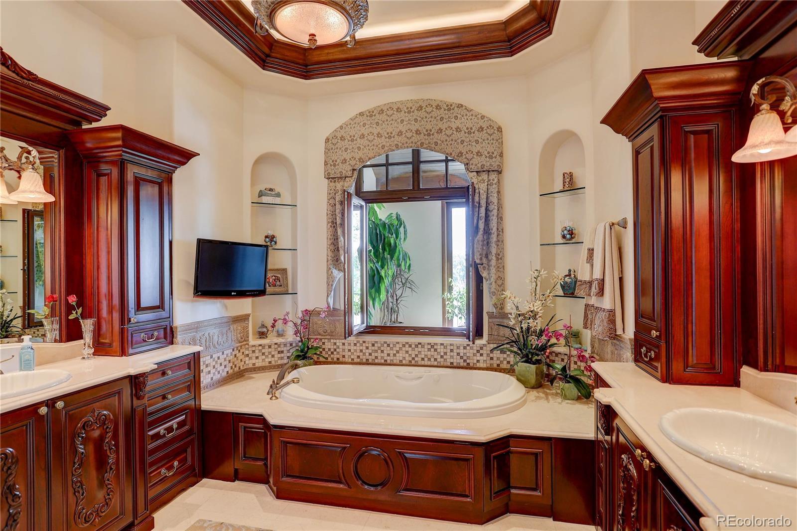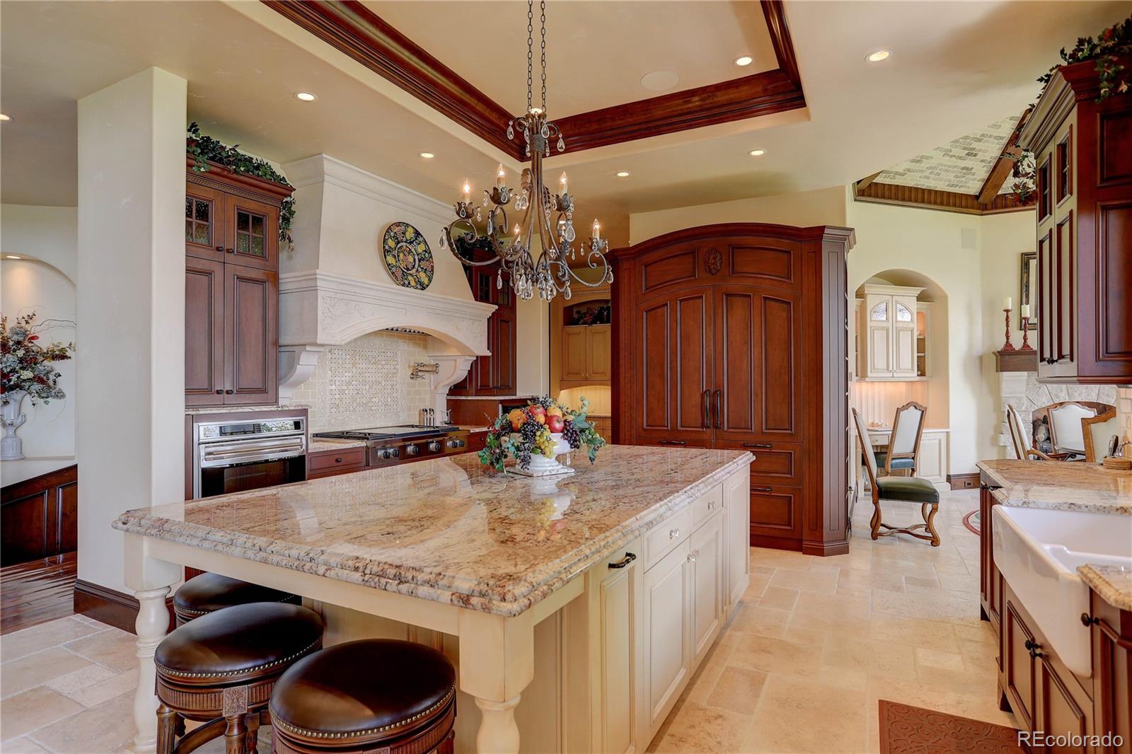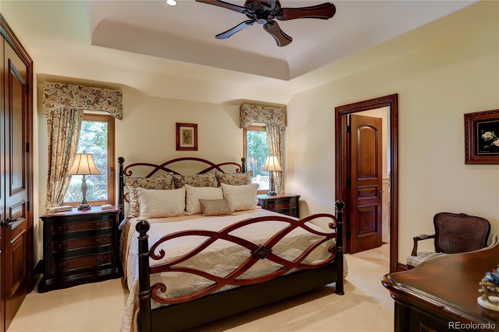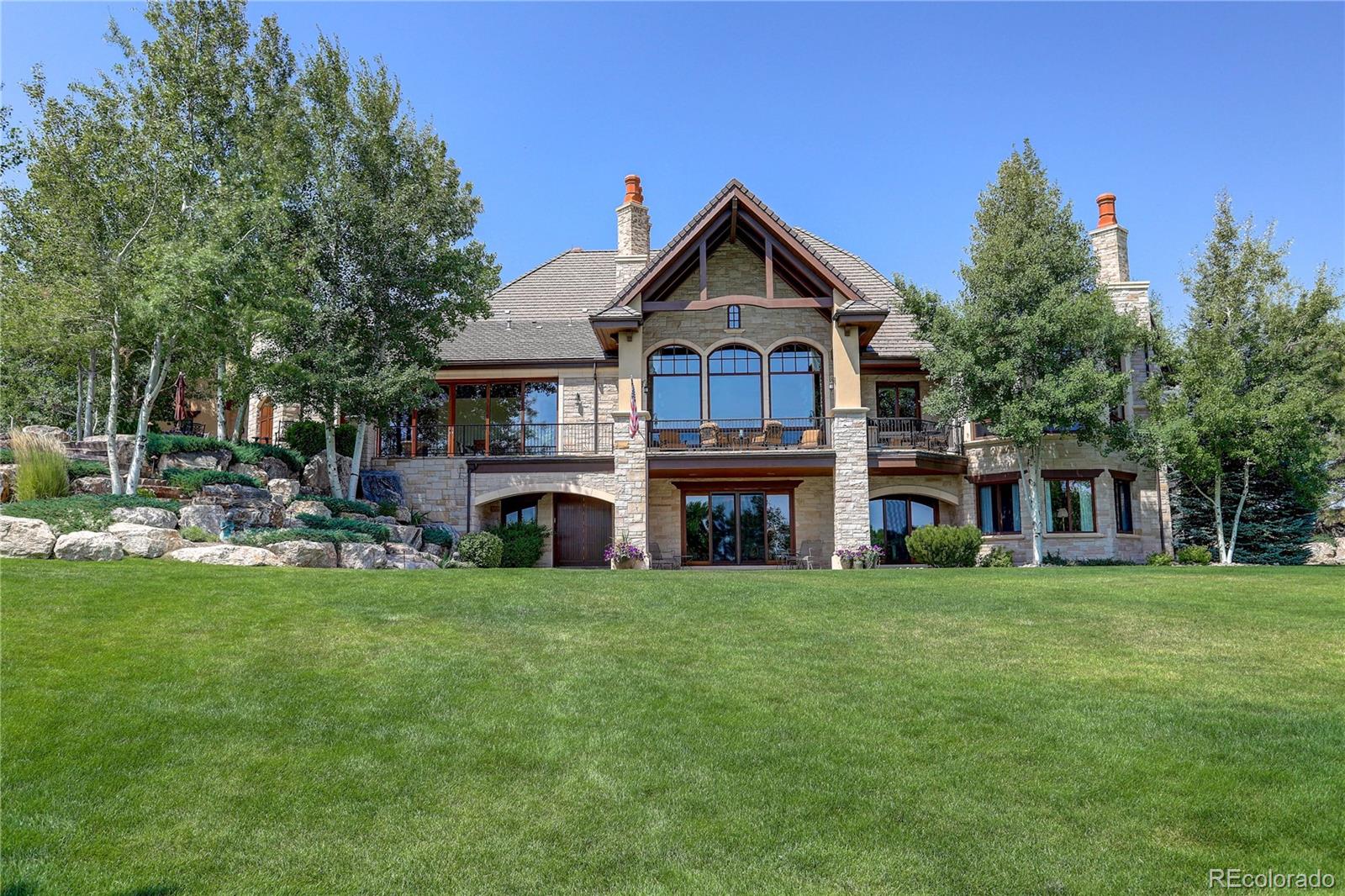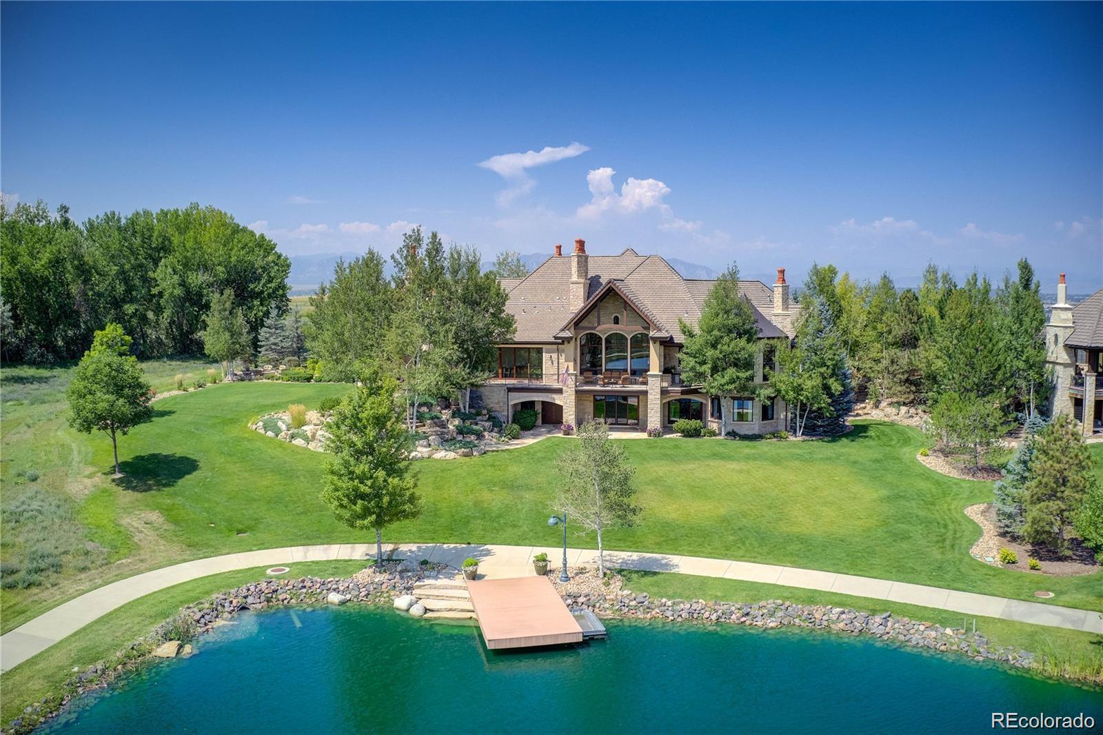 Where breathtaking Front Range views meet uncompromising luxury, this extraordinary custom estate offers one of the most remarkable residential settings in Colorado. Perfectly positioned at the end of a private street within one of Broomfield’s most exclusive gated communities, this 11,393 sq ft residence captures unobstructed panoramic views of the entire Front Range & iconic Flatirons to the west, while a serene private lake, mature trees, and protected conservation easement surrounds the home. Designed for grand entertaining & refined everyday living, the home features 6 spacious bedroom suites, each with a private en-suite bath, plus 3 elegant powder rooms. 2 levels of living space are connected by a hydraulic elevator. Luxury amenities include a 12-seat private theater, climate-controlled wine cellar, full bar & game room with billiards, shuffleboard, & poker, private fitness room, & 4 laundry centers. A stunning indoor-outdoor atrium with pocketing glass doors opens to expansive outdoor living areas. Multiple decks & patios crafted from natural Colorado Buff Sandstone provide exceptional spaces to enjoy sunsets, mountain views, and the surrounding landscape. A private lock-off guest cottage offers 2 bedrooms, 2 baths, gourmet kitchen, living room, & laundry—ideal for extended family or long-term guests. Exceptional craftsmanship is evident throughout with radiant floor heating, hand-scraped Palo Duro walnut flooring, artisan plaster walls, six limestone fireplaces, solid-core 8-foot doors, and premium German wood windows. The striking stone and stucco exterior features dramatic rooflines, concrete tile roofing, and custom copper gutters. A circular brick-paver driveway with snow sensors and a full glycol snow-melt system heats the drive and outdoor areas. The property includes a 1,758 sq ft heated four-car garage plus an additional garage for the guest cottage. A truly rare Colorado luxury estate offering privacy, craftsmanship, and unforgettable views.