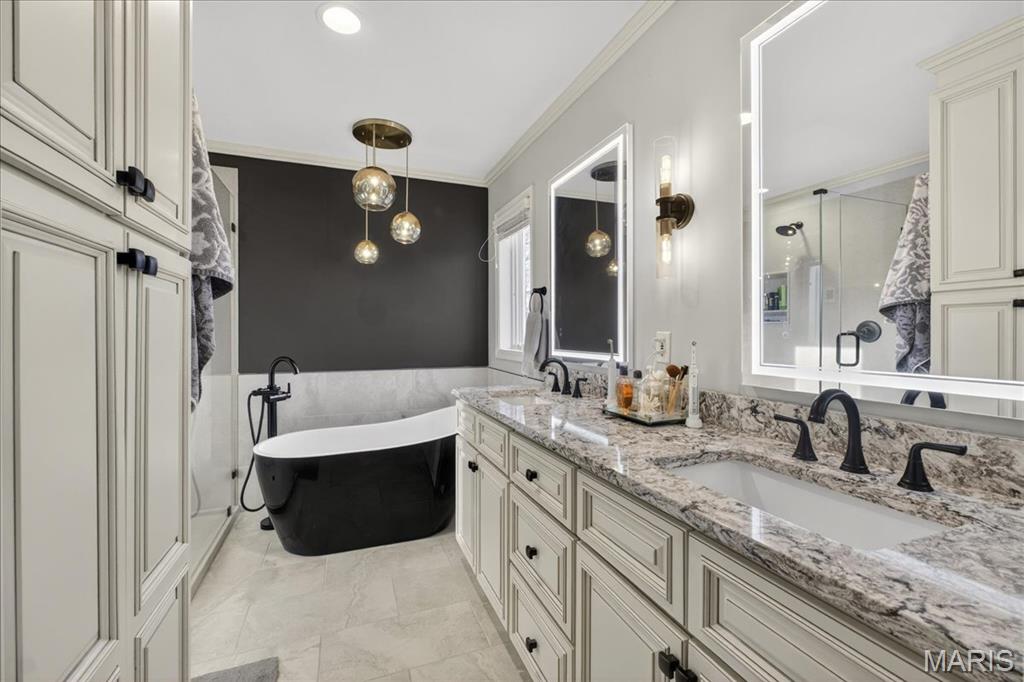 The main-floor primary suite is filled with natural light and includes a recently renovated (2024) primary bath, creating a peaceful retreat. The finished lower level, also renovated in 2024, is ideal for entertaining and sports watching, complete with a wet bar, ample cabinetry, a full bath, two sleeping areas, and a spacious finished area perfect for a media room or exercise space.