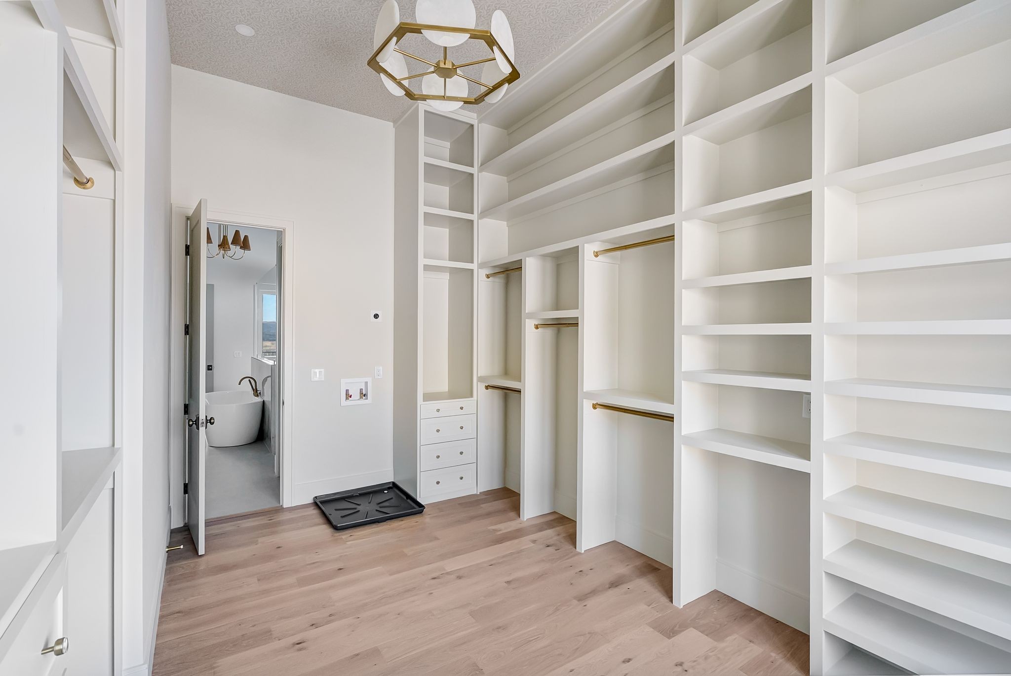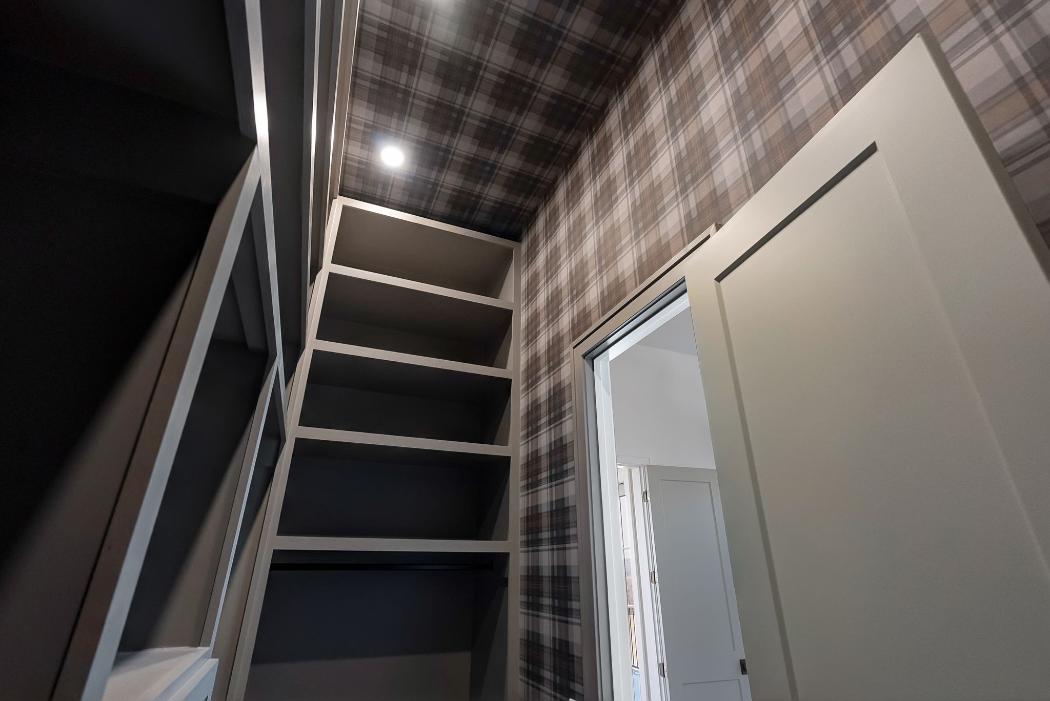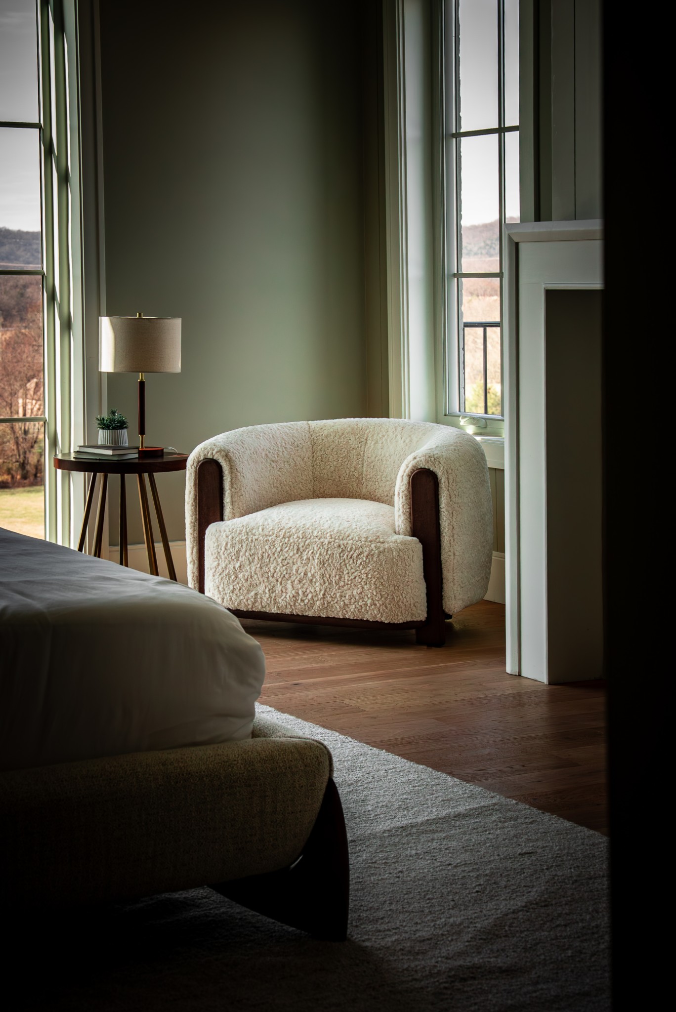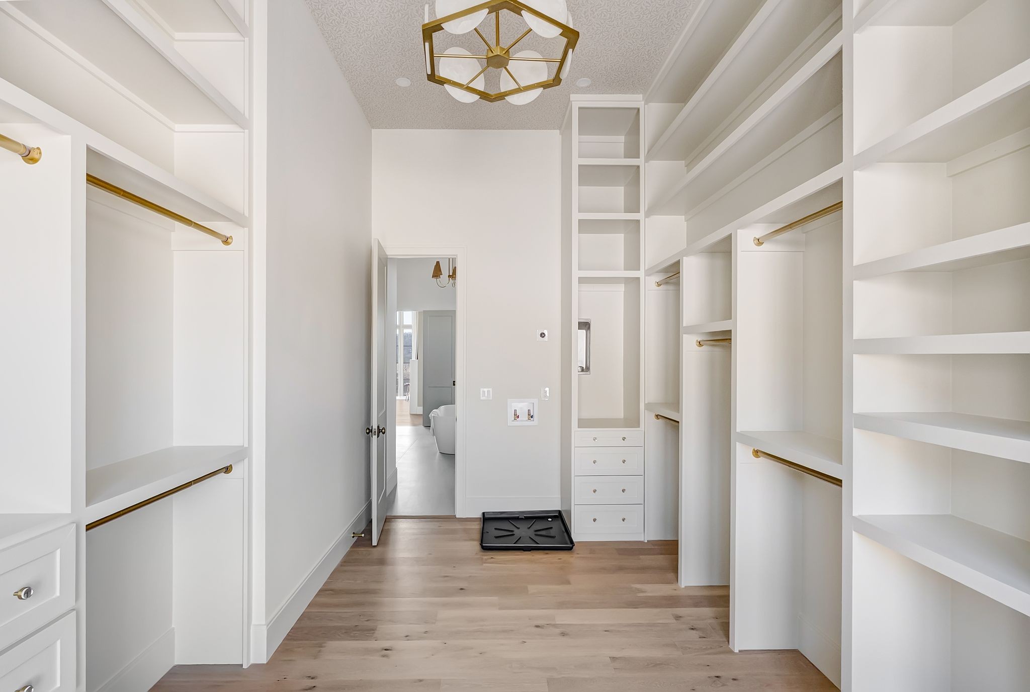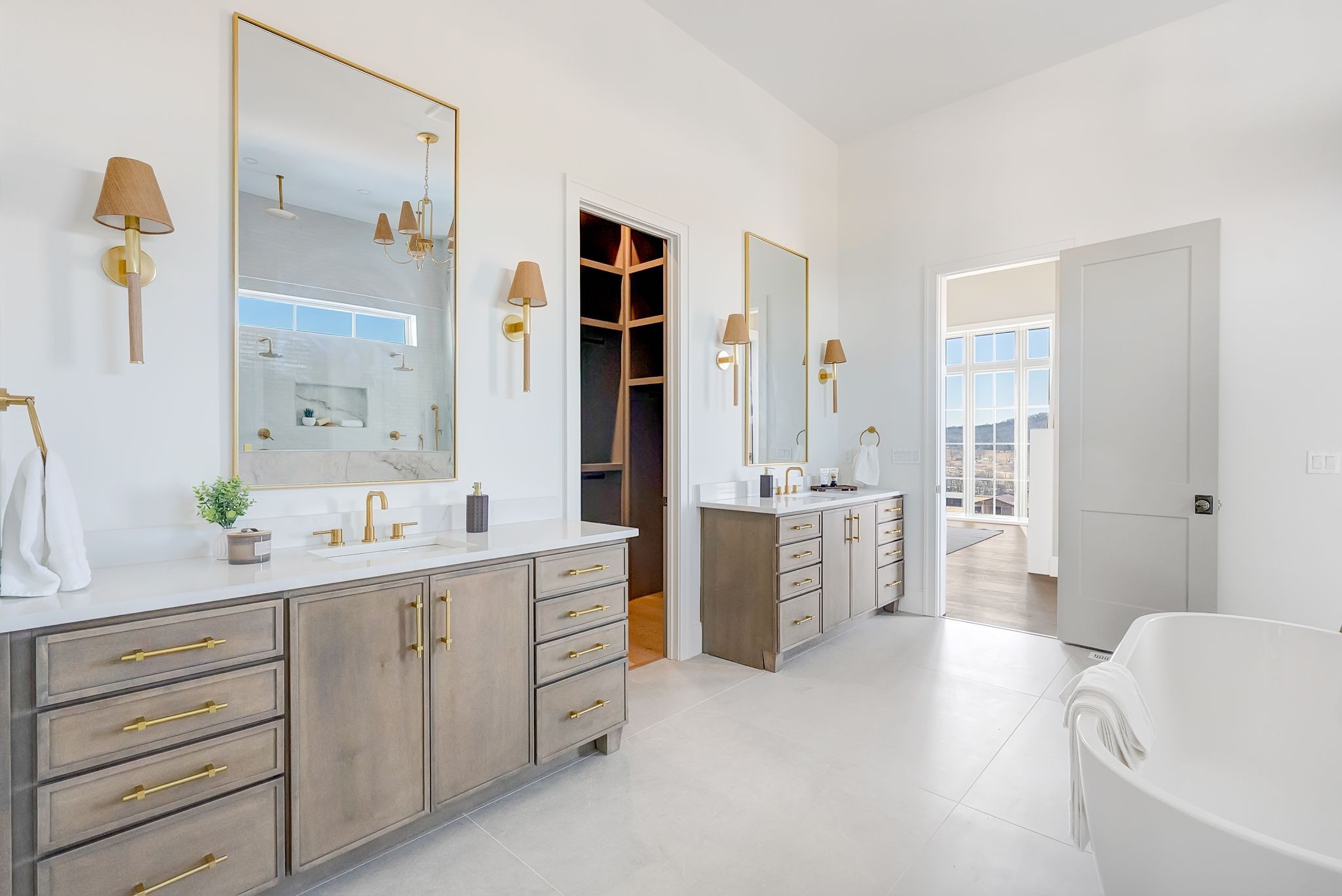 The Tudor-inspired exterior blends natural stone and brick selected to complement the landscape and capture warm sunset views. Inside, the home centers around a chef’s kitchen featuring a double-island layout designed for functionality, flow, and gathering. Fully panelized appliances maintain a seamless aesthetic while a full scullery with secondary kitchen allows for effortless entertaining while keeping the main space pristine.
