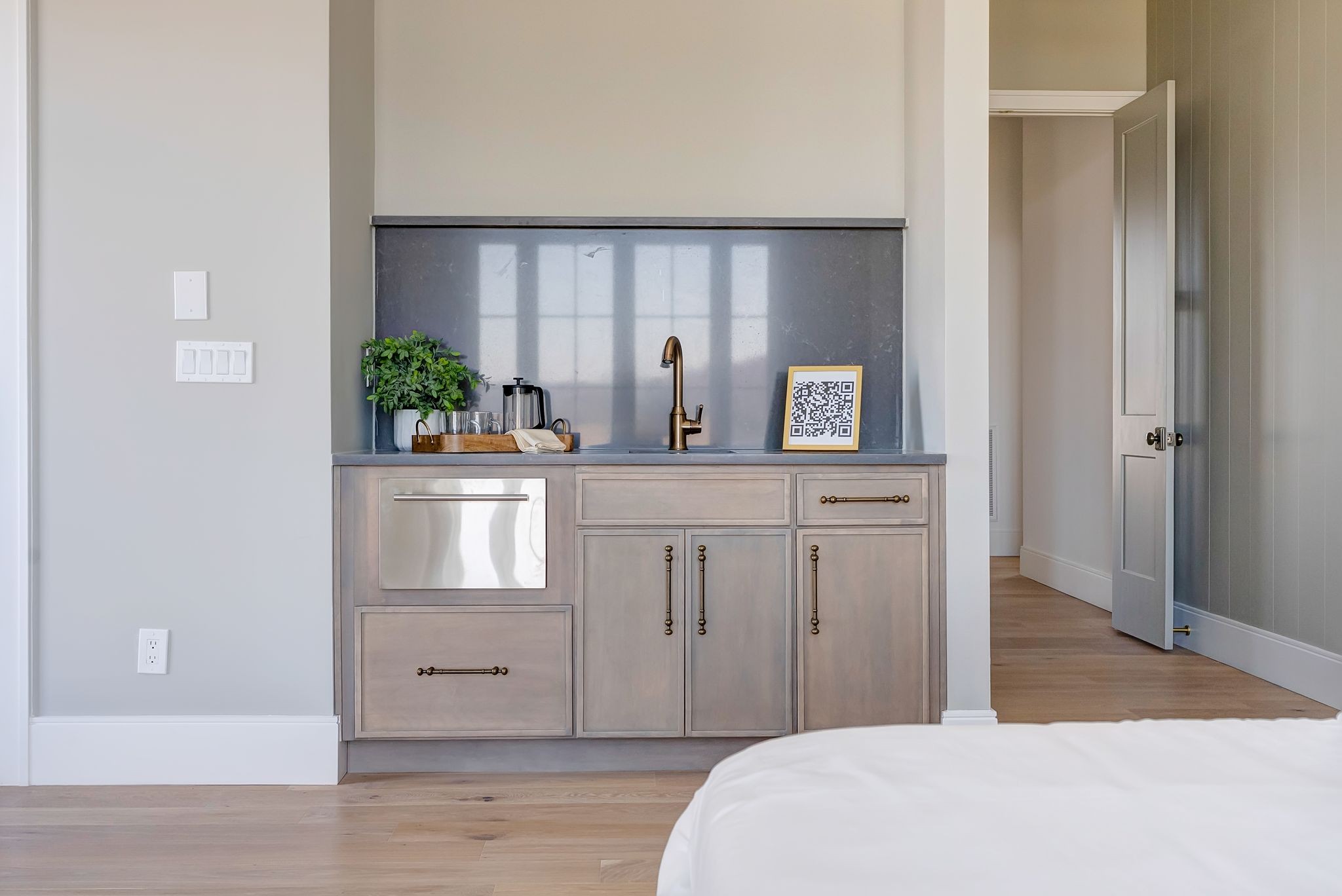 The dining room was opened to the underside of the rafters to bring in abundant natural light and enhance volume, complemented by a dedicated wine room and private office featuring antique doors. The primary suite serves as a true retreat with natural light, a repositioned fireplace, private walkout balcony, coffee bar, and separate his and hers closets designed with distinct style and function.
