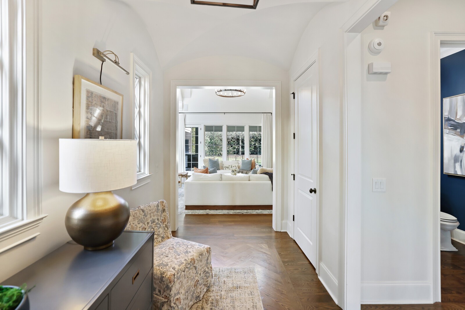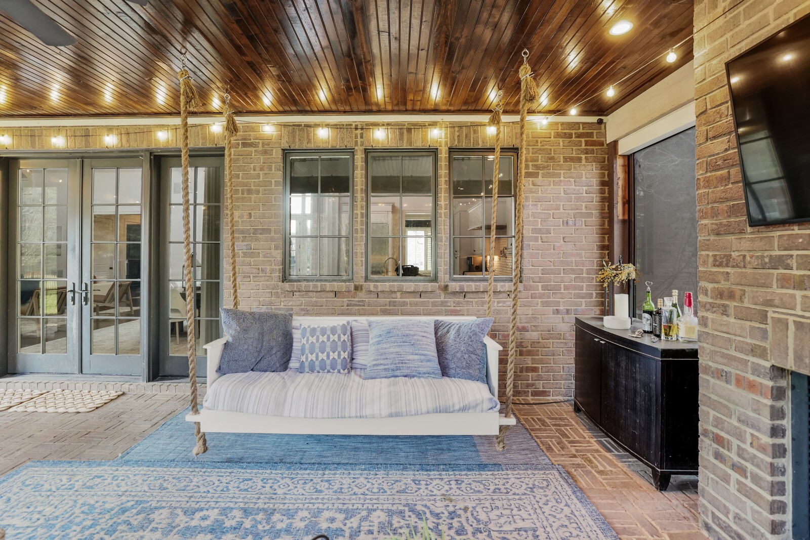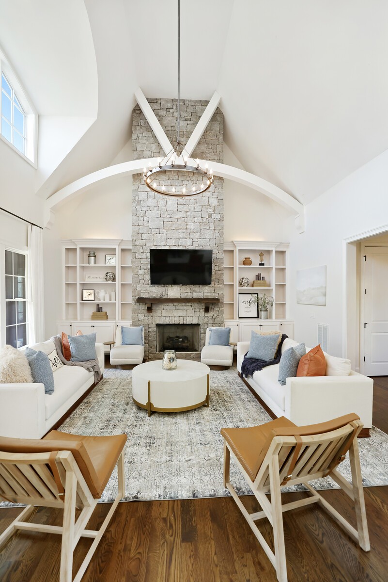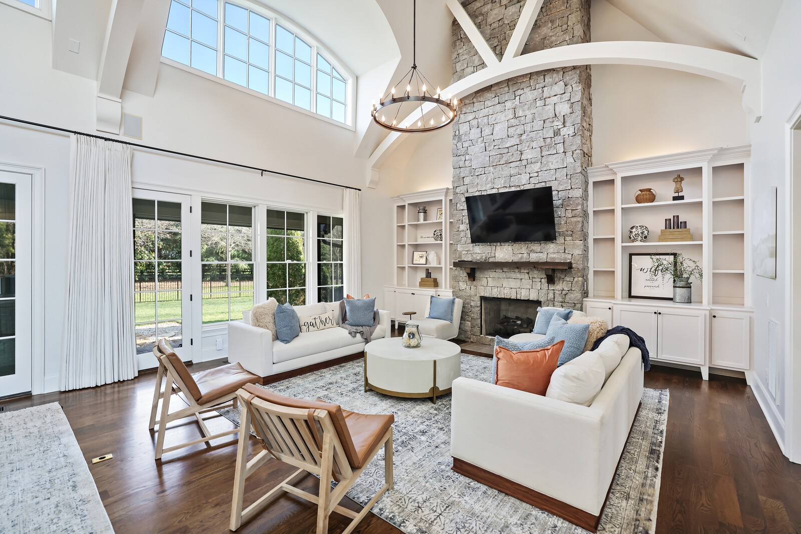 Tucked within the exclusive, gated The Grove community, this residence offers resort style living in a highly sought after neighborhoods. The Grove is known for its rolling hills, manicured landscapes, & unmatched amenities: grand Manor House clubhouse, 3 pools, a Greg Norman 18 hole golf course, full service spa & fitness center, multiple dining venues, walking trails, fishing ponds, equestrian areas, playgrounds, & a vibrant calendar of community events - a true “golf cart” community. The 4,574 sq ft home sits on a private .46-acre lot and features a fully fenced backyard, 3 car garage, lush landscaping, & full yard irrigation. Designed by P. Shea, the thoughtfully planned unique layout includes 5 bedrooms & 5.5 baths, w/ 3 bedrooms on the main level & 2 upstairs. Rich hardwood floors anchor the main level, which showcases a stunning open concept living space with soaring arched ceilings, exposed beams, wagon-wheel lighting, & a dramatic 2 story stacked stone fireplace. The gourmet kitchen features Thermador appliances, a 6 burner gas range with griddle, double ovens, oversized island, farmhouse sink, prep sink, walk-in pantry, & abundant custom cabinetry. The adjacent dining area opens seamlessly to both front & rear porches. Outdoor living is exceptional w/ a charming gated front patio & a show stopping covered back porch offering retractable screens, gas fireplace, brick pavers, outdoor kitchen w/ gas grill & Green Egg, surround sound, & porch swing—perfect for year round enjoyment. The main level primary suite is a true retreat w/ arched ceiling, bay windows, porch access, spa inspired bath w/ clawfoot tub, tiled shower, sauna, & large walk in closet. Additional main level highlights include an office/den, spacious laundry w/ dog wash, powder room, & 2 bedrooms w/ ensuite baths. Upstairs offers a bonus den & 2 two en suite bedrooms. Zoned for award winning Williamson County schools.