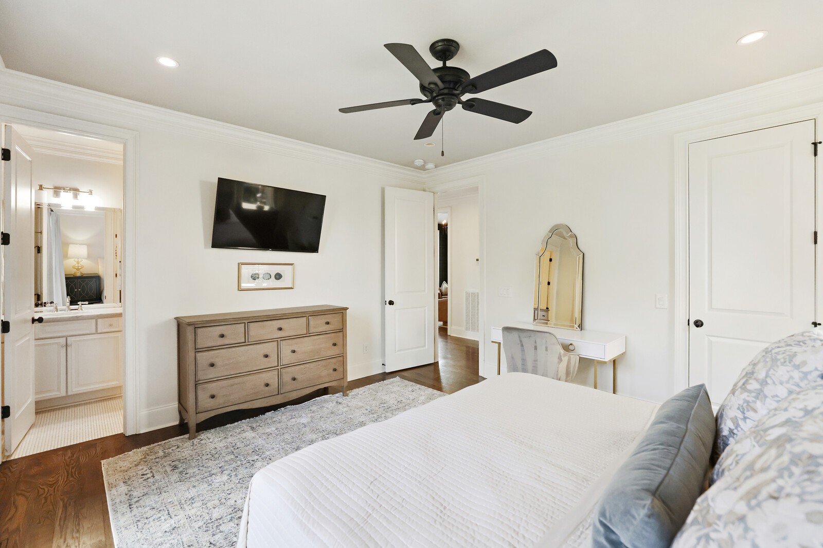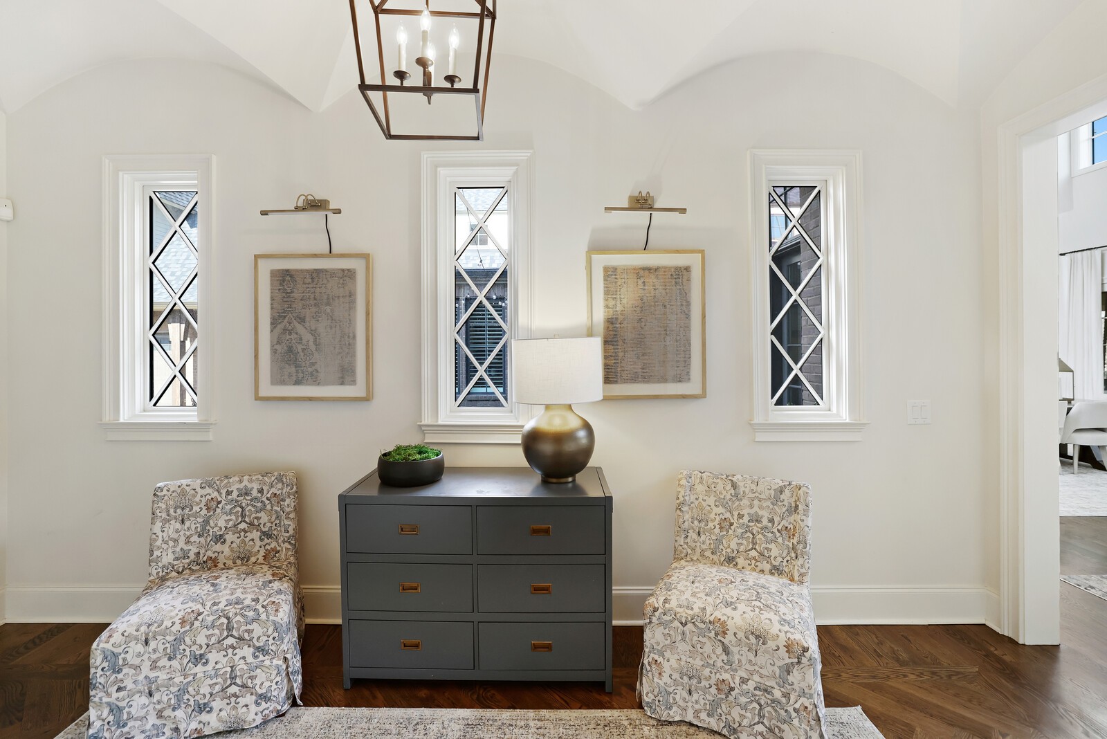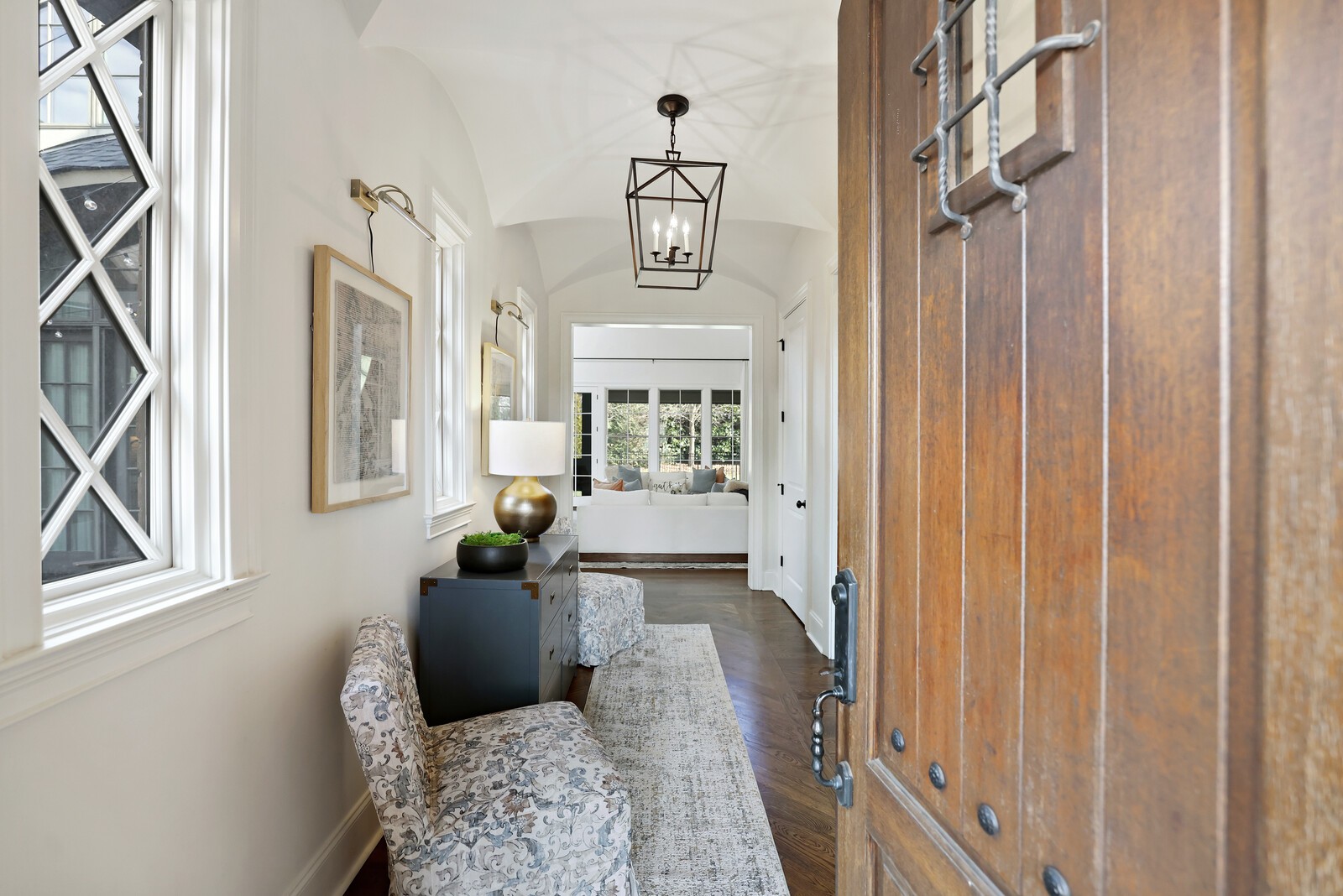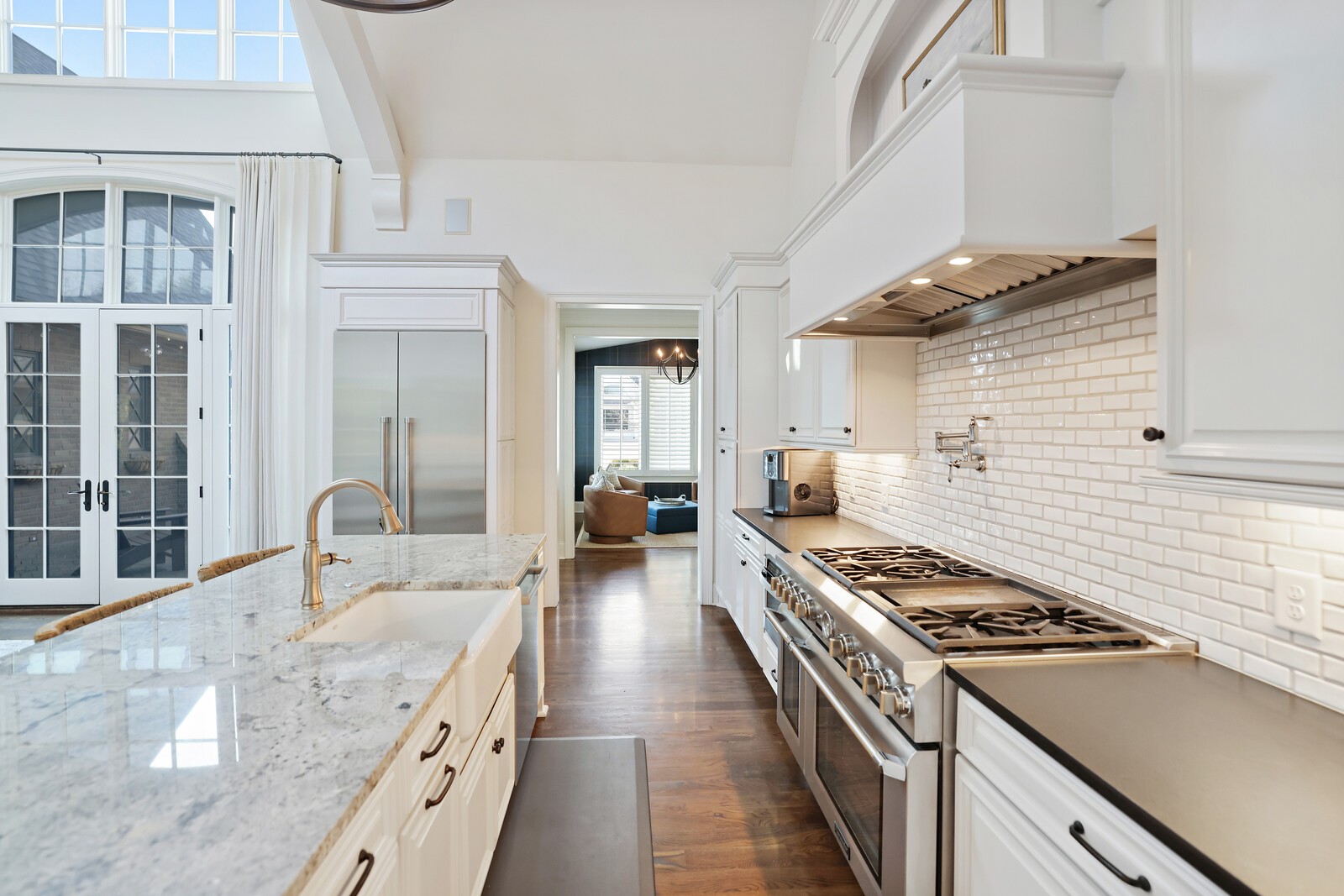 Tucked within the exclusive, gated The Grove community, this residence offers resort style living in a highly sought after neighborhoods. The Grove is known for its rolling hills, manicured landscapes, & unmatched amenities: grand Manor House clubhouse, 3 pools, a Greg Norman 18 hole golf course, full service spa & fitness center, multiple dining venues, walking trails, fishing ponds, equestrian areas, playgrounds, & a vibrant calendar of community events - a true “golf cart” community. The 4,574 sq ft home sits on a private .46-acre lot and features a fully fenced backyard, 3 car garage, lush landscaping, & full yard irrigation. Designed by P. Shea, the thoughtfully planned unique layout includes 5 bedrooms & 5.5 baths, w/ 3 bedrooms on the main level & 2 upstairs. Rich hardwood floors anchor the main level, which showcases a stunning open concept living space with soaring arched ceilings, exposed beams, wagon-wheel lighting, & a dramatic 2 story stacked stone fireplace. The gourmet kitchen features Thermador appliances, a 6 burner gas range with griddle, double ovens, oversized island, farmhouse sink, prep sink, walk-in pantry, & abundant custom cabinetry. The adjacent dining area opens seamlessly to both front & rear porches. Outdoor living is exceptional w/ a charming gated front patio & a show stopping covered back porch offering retractable screens, gas fireplace, brick pavers, outdoor kitchen w/ gas grill & Green Egg, surround sound, & porch swing—perfect for year round enjoyment. The main level primary suite is a true retreat w/ arched ceiling, bay windows, porch access, spa inspired bath w/ clawfoot tub, tiled shower, sauna, & large walk in closet. Additional main level highlights include an office/den, spacious laundry w/ dog wash, powder room, & 2 bedrooms w/ ensuite baths. Upstairs offers a bonus den & 2 two en suite bedrooms. Zoned for award winning Williamson County schools.