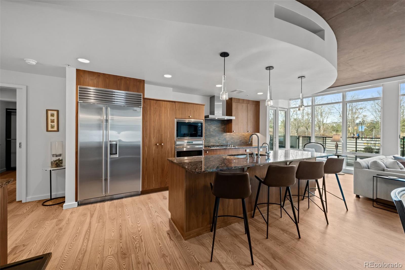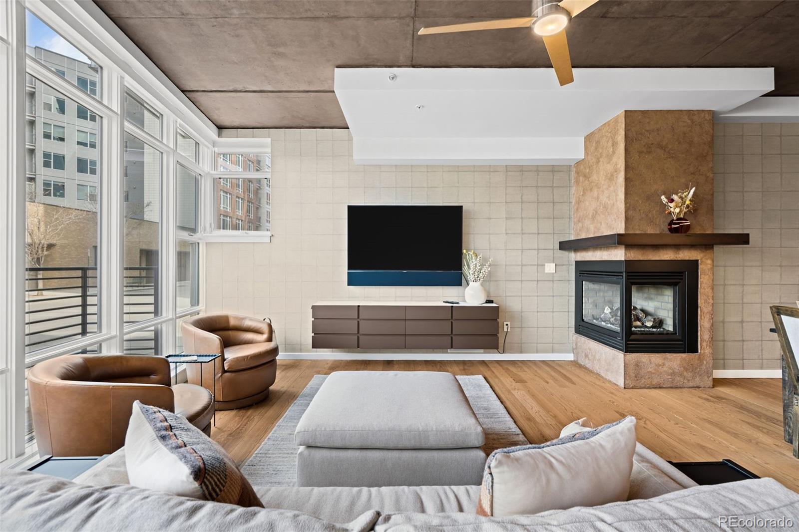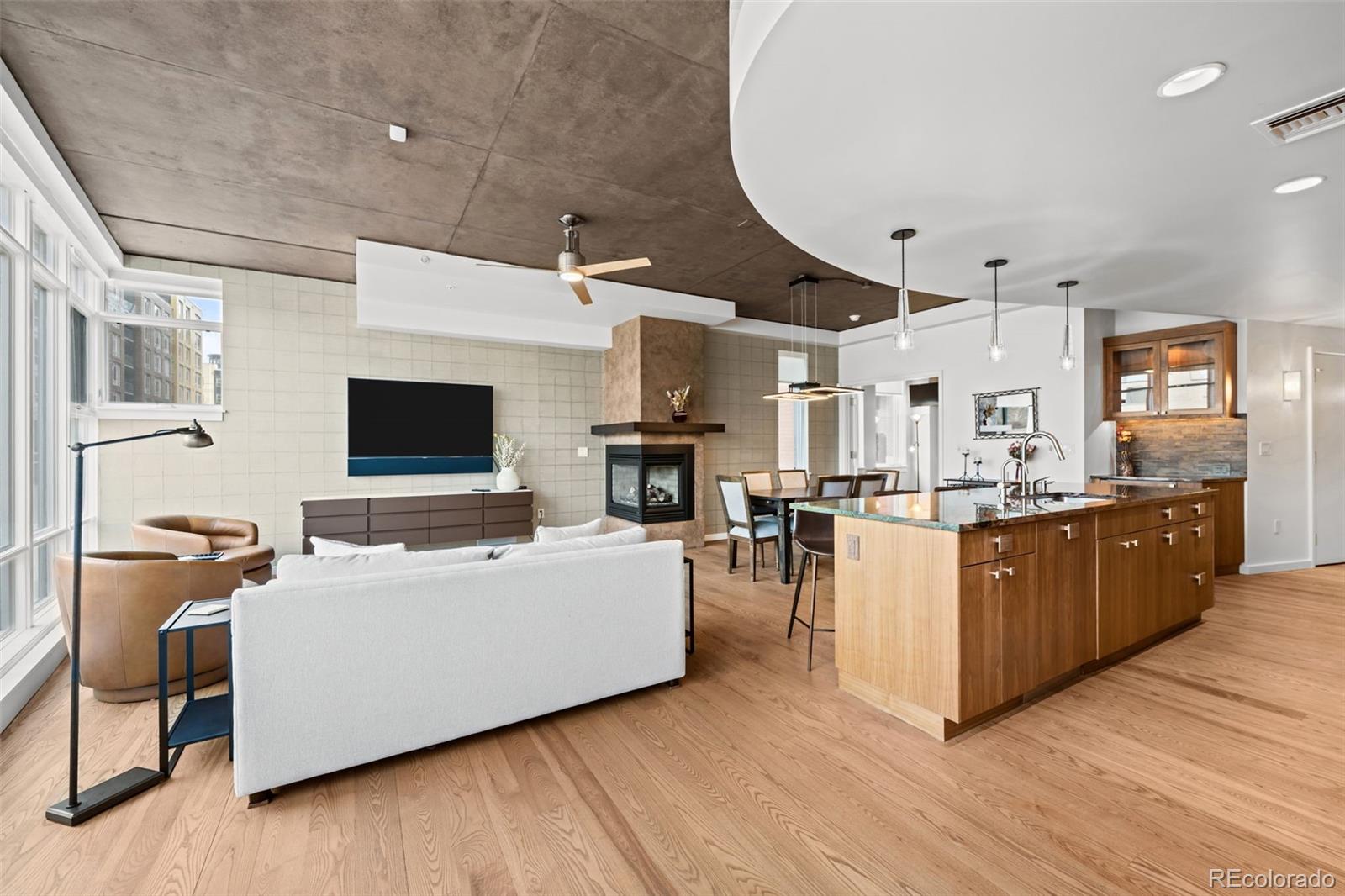 *** OPEN HOUSE SUNDAY MARCH 8, 2026 NOON - 2:00PM *** This is the ONE - enjoy life in Riverfront Park's most exclusive building, the Park|ONE Riverfront. With only 16 homes, this sophisticated community is located right on Commons Park, with another gated, private park behind the building boasting Union Station views. This corner residence lives like a single-family home, with your own exterior door and a spacious, partially covered patio with plenty of room for entertaining or unwinding after a long day. Enjoy the perfect balance of contemporary design, vibrant city living, and quiet comfort in this warm light-filled residence. Riverfront Park places you steps from the downtown Whole Foods Market, the A-Line to DIA, award-winning restaurants, boutique fitness studios, the Platte River trail system, and Denver’s ever-expanding sports, arts and entertainment world. The open concept living space has a large primary suite with a spa inspired bath including a steam shower and deep soaking tub. The guest room has an en-suite bathroom, and the third bedroom/office has lots of light and a large closet. Appliances are Wolf and Sub-Zero while the unique Australian granite counters with custom walnut cabinetry round out the kitchen. A wine refrigerator, solid Nordic ash floors, a cozy fireplace, operable windows in every room with Lutron controlled blinds, and a fully appointed laundry room with sink and cabinets are all special details built into this stylish home. This is truly a sanctuary in the city, close enough to downtown, yet far enough away to enjoy the small neighborhood feel and it is perfect for dog lovers. The two side by side parking spaces in a heated garage with an electric charging station for your car, plus a private storage room, complete this unique home.