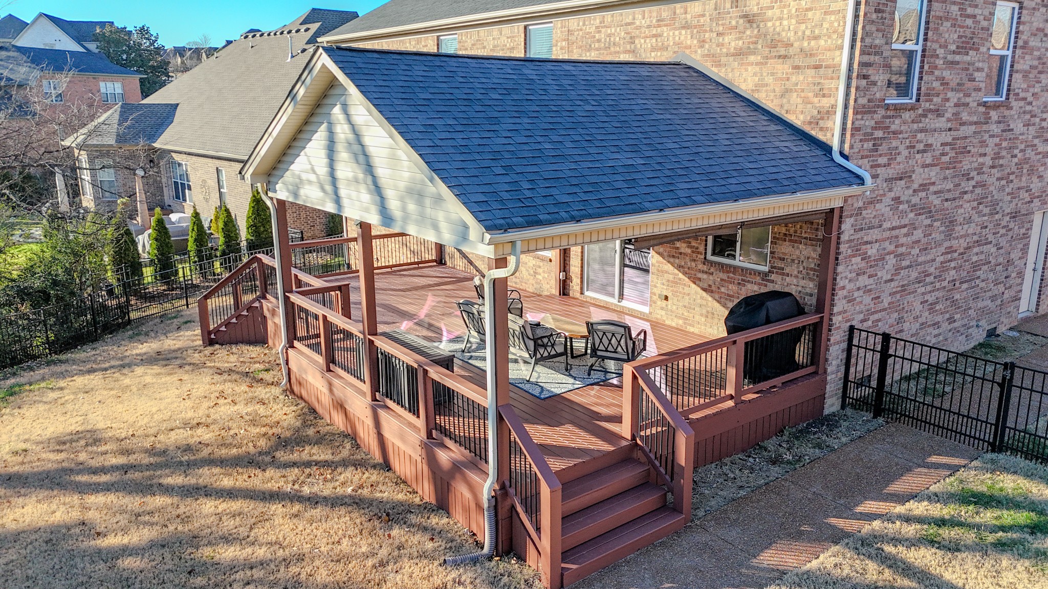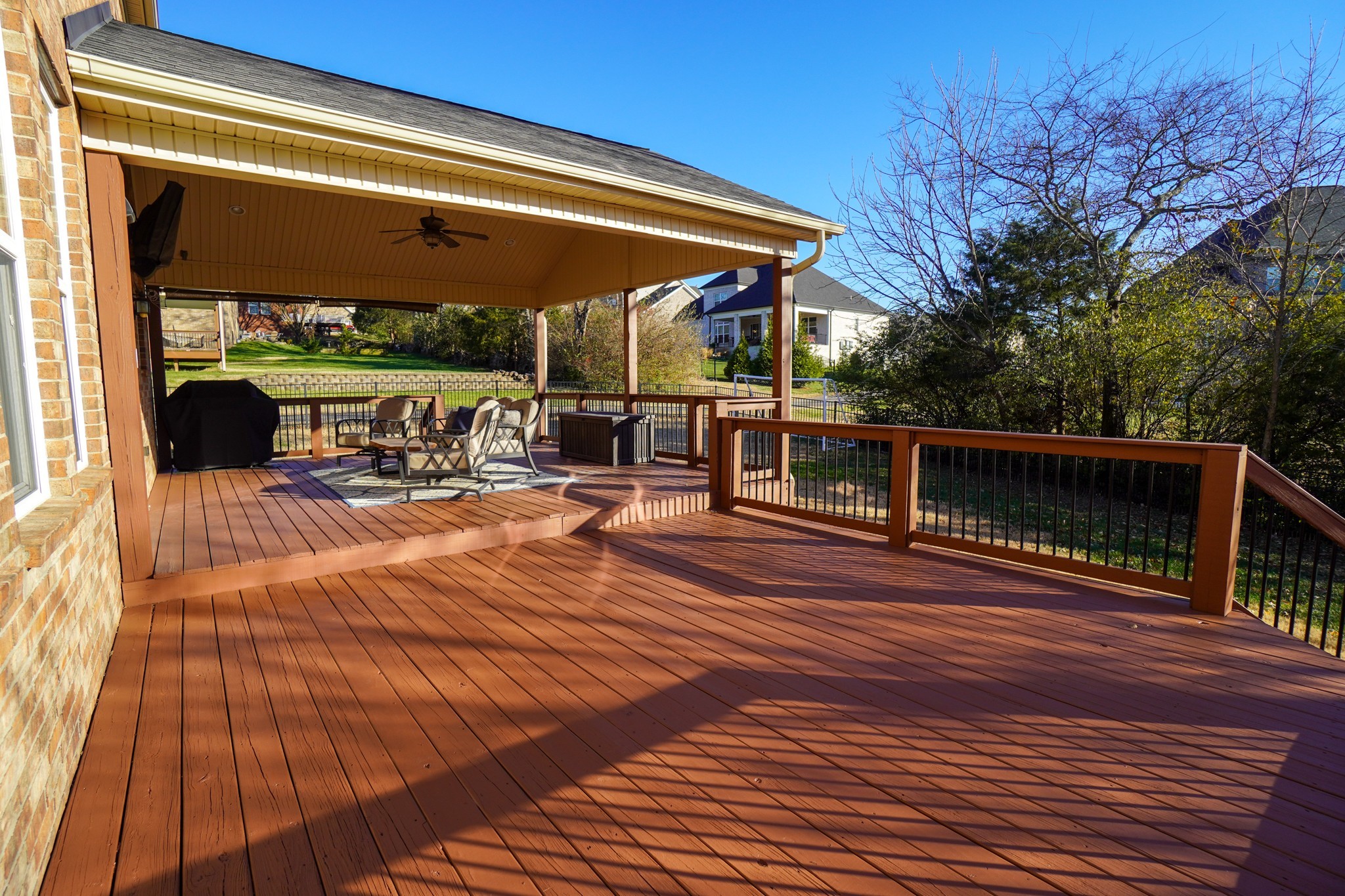 Seller is offering buyer incentive of 10k towards closing expenses, rate buy down, or upgrades. Motivated! Extremely clean & well kept 5 bed all-brick home in the Hunt Club community offering 5 bedrooms, a 3-car garage, and a beautiful fenced, level backyard with an expansive 19x20 covered deck plus a 16x14 uncovered deck—perfect for entertaining and everyday living. The huge primary suite is located on the main level and features a spacious walk-in closet. All guest bedrooms are generously sized with exceptional closet space and storage throughout.