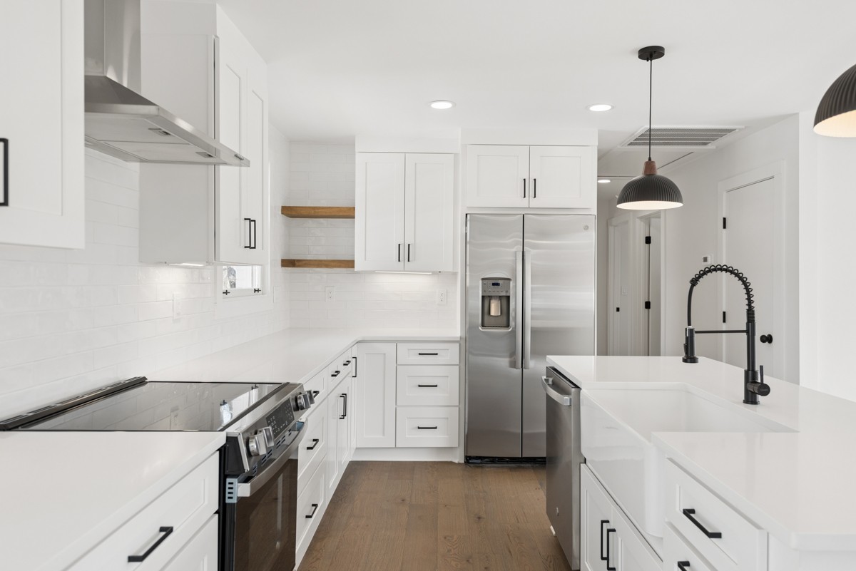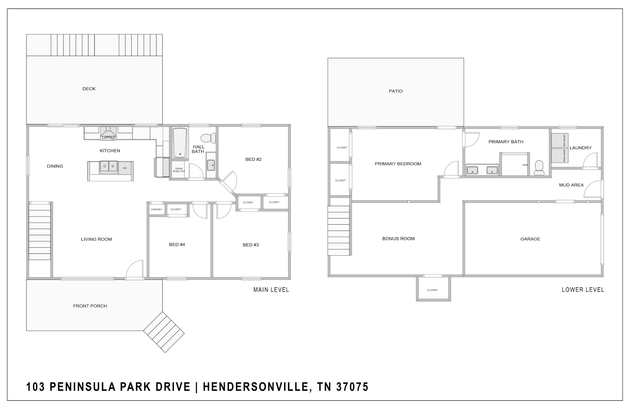 If you’re ready to call Middle Tennessee’s “City by the Lake” your home, then 103 Peninsula Park Drive is a must-see! This beautifully renovated Hendersonville raised ranch is located just minutes from the lakeside walking trail, Saunders Ferry Park, Tailgate Brewery, Main Street and more, with only a short 20 minute drive to downtown Nashville! This charming 1960's brick home is 4 bedrooms and 2 bathrooms, with the main floor featuring an open living/kitchen/dining space with abundant natural light. New kitchen with shaker cabinets, quartz countertops, tile backsplash, new stainless appliances and pantry. Bring the indoors out with the large deck perfect for entertaining just off the main living space and overlooking the beautiful backyard. The finished lower level has bonus/family room, dedicated laundry room, mud area off the driveway entry, attached one car garage and the private primary suite with dual closets and new bathroom with tile shower and double vanity, as well as a private exterior entrance into the patio area. Upgraded finishes like wide-plank oak hardwoods, LED recessed lighting, new fixtures, hardware, fresh paint, extra storage and more throughout. Plus, fresh landscaping out front surrounds the new front porch completing this move-in ready home that's awaiting its next owner!