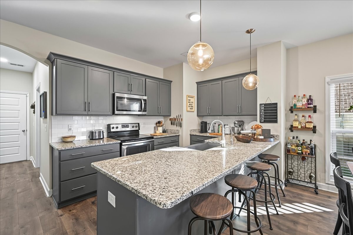 The kitchen is a standout with abundant cabinet space and counter space, ideal for cooking, entertaining, or everyday living. As an end unit, the home is filled with natural light throughout, creating a bright and inviting atmosphere.
