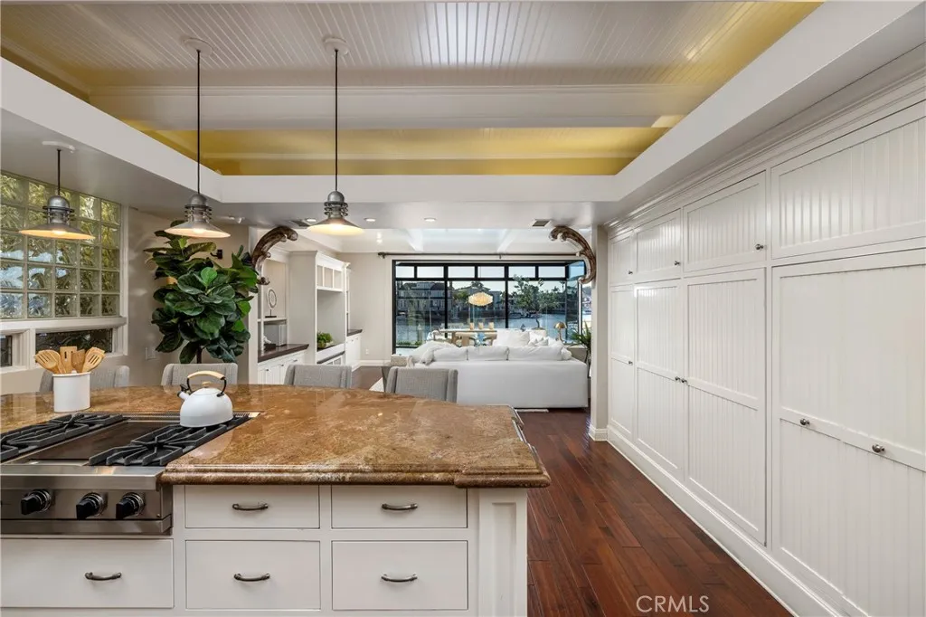 Properties with this rare combination of views and scale are seldom offered along the coveted main channel of Huntington Harbour. Set on a 5,000-square-foot parcel, the home and its private surroundings are arranged in deliberate sequence, maintaining a unique connection to the open water and its splendor. Reconstructed by notable architect Karen T. Otis as a beautiful exploration of light, water, and movement, the structure is articulated through craftsmanship quality; a thoughtful, enduring layout; and a light, textural palette. An immediate atmosphere of volume and detail is realized through a spacious, gated courtyard and atrium, continuing to a striking two-story foyer with a sky-lit oculus, and an ambient water feature delicately defining the entrys perimeter. The principal level unfolds as an open expanse encompassing a generously proportioned kitchen, formal and informal living and dining areas all with captivating triple-channel view orientations. Walls of glass retract to extend the interior to a waterside terrace, along with an all-glass room to enjoy the on-water environment at any time or season. The second-level accommodations were carefully planned to enhance privacy, with the resort-style primary suite and wardrobe room positioned to capture panoramic views from nearly every vantage, along with its own channel-front balcony. A third-level observation and entertaining deck an uncommon attribute of homes in the region presents an extension of livability amidst a spectacular canvas of tranquil waterways, sunsets, and city lights. Crowning the property is a r