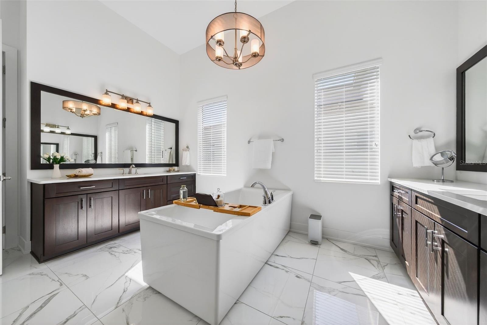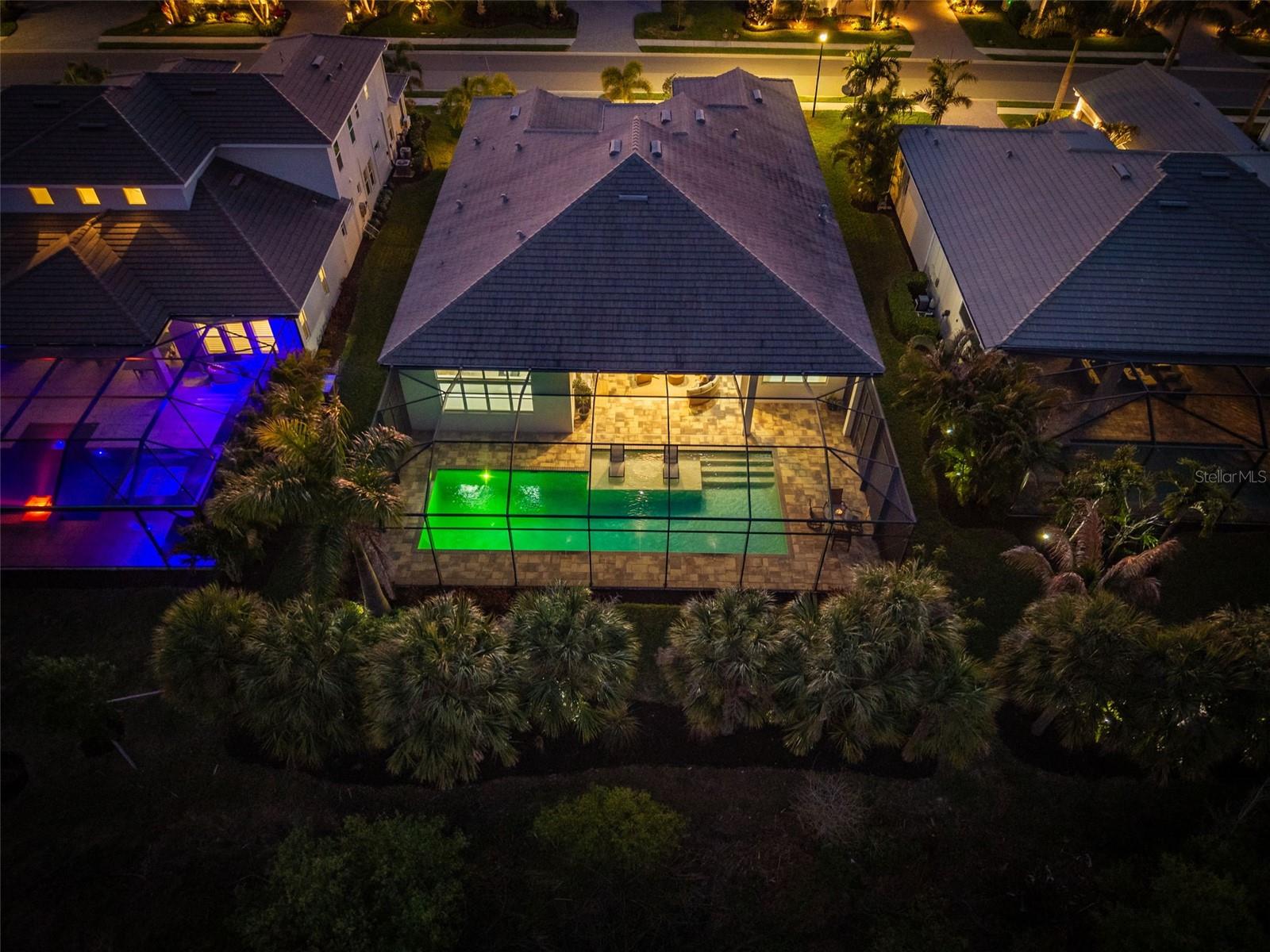 Reimagined and impeccably refreshed, this home is an entertainer’s dream, offering generous spaces designed for effortless gatherings and elevated everyday living. Set on a premier preserve lot within the highly coveted Isles of Lakewood Ranch, this San Giorgio model embodies refined luxury and thoughtful design from the moment you arrive. A grand entry with custom glass doors opens to a light-filled interior showcasing soaring 15-foot ceilings, expansive sightlines, and a seamless open-concept layout. Elegant finishes include impact-resistant windows and doors, and carefully curated lighting that enhances both form and function. The impressive great room features dramatic double tray ceilings and corner sliding glass doors that dissolve into the outdoors, framing tranquil nature views and extending the living space to the lanai. At the heart of the home, the gourmet kitchen is as striking as it is functional, appointed with two-tone cabinetry, an oversized island with additional storage, quartzite countertops, a glass tile backsplash, under-cabinet lighting, a walk-in pantry, wine refrigeration, and top-of-the-line KitchenAid stainless steel appliances. The adjacent formal dining room flows effortlessly to the outdoor living area, creating a perfect setting for hosting on any scale. Outside, the resort-inspired lanai invites year-round enjoyment with a saltwater lap pool featuring a gas heater and sun shelf, paver decking, a fully equipped outdoor kitchen, and a convenient cabana bath accessible from the lanai—all overlooking the serene preserve backdrop. The owner’s retreat is a private sanctuary, complete with tray ceilings, a quiet sitting area, dual custom California-style walk-in closets, and a spa-like bath with dual vanities, an oversized soaking tub, and a separate walk-in shower. Additional accommodations include two well-appointed guest bedrooms, one with an en-suite bath and the other with the possibility of a Jack and Jill bathroom, a dedicated office or den, that could easily convert to a fourth bedroom, and a spacious laundry room with abundant cabinetry, granite countertops, and a folding area. Completing the home is a three-car garage with epoxy flooring, offering both practicality and polish. This renewed and sophisticated residence delivers the ideal blend of elegance, comfort, and exceptional entertaining spaces in one of Lakewood Ranch’s most desirable communities.