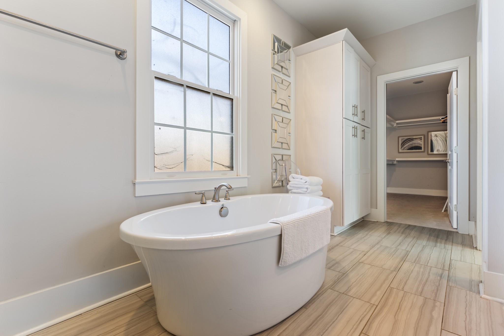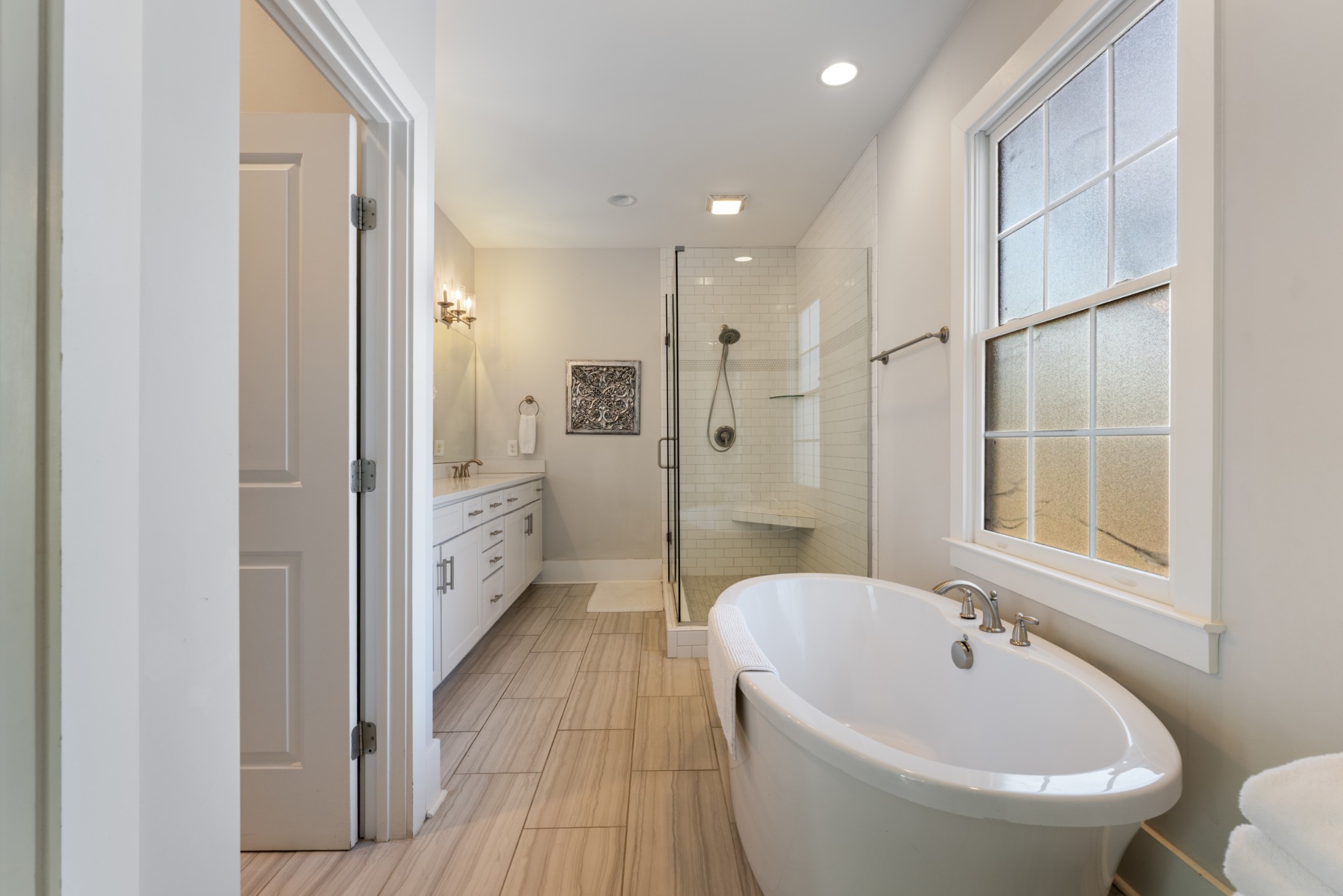 Upstairs, all three bedrooms are ensuite, offering privacy and convenience. The luxury primary suite includes a soaking tub, walk-in shower, and an oversized custom closet rarely seen in this area.