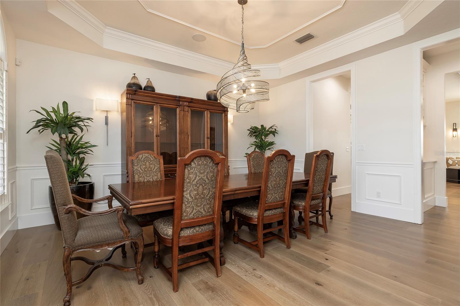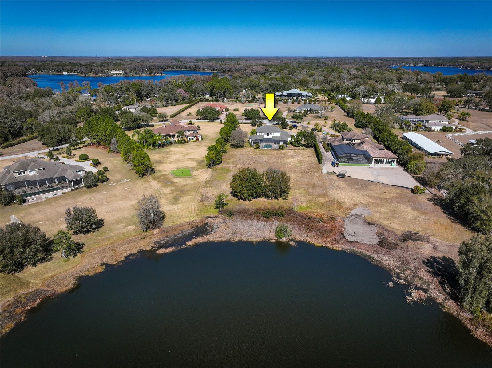 Welcome to Steeplechase, one of Odessa’s most exclusive gated communities. Located within a cul-de-sac in the heart of Steeplechase, this remarkable, recently remodeled, lakefront property seamlessly blends indoor and outdoor living with expansive entertaining spaces and cozy retreats. This estate sits on 2.87 acres of lush greenery, fruit and avocado trees, and a massive screened lanai. Inside the home, updated in 2023 with exquisite attention to details presented through, custom cabinetry, designer lighting, and engineered hardwood floors. Overlooking the inviting living room is the well-appointed kitchen, which is anchored by a large built-in seating nook that’s illuminated by a Kelly Wearstler light fixture. The appliance suite, which includes a double oven, refrigerator drawers, and paneled refrigerator, is perfectly complemented by the wood cabinetry and quartzite counters—and don’t miss the wine cellar, wet bar, and butler’s pantry. The main-floor primary suite is a quiet haven with direct lanai access and a spa-like ensuite bath. The owners suite bathroom comes equipped with a walk in shower & a stand-alone soaking tub. The additional bedrooms are located on the second floor, each includes a walk-in closet.The entertainment space on the second floor provides an additional loft space/bonus room with a wet bar and mini fridge. The second floor also provides a full movie theater and a projector screen. The second floor offers a study corner/reading nook and three additional bedrooms. Two of the bedrooms share a Jack-and-Jill full bathroom. On the opposite side of the second floor, you will find the third additional bedroom and full bathroom that provides a laundry chute from the second floor to the first floor laundry room. Step outside onto the second-story private balcony to enjoy the view of the pool and lake. Entertain with ease in the outdoor living space, which includes an outdoor kitchen, fireplace, and heated pool. Open up the sliding pocket doors to create a flowing open floor plan between indoor and outdoor living. Enjoy the serene lake views, swim some laps in the large saltwater pool, or just enjoy the peaceful surroundings. The oversized 3-car garage is already wired for EV charging and features epoxy floors and ample storage. Roof, interior and exterior paint 2023. The property is located 25 minutes from the Tampa International Airport, yet this home feels like a true oasis. Hop in your golf cart and enjoy a ride through this beautiful community to enjoy the ultimate Florida lifestyle. This is your opportunity to own a truly exceptional home within the gates of Steeplechase.