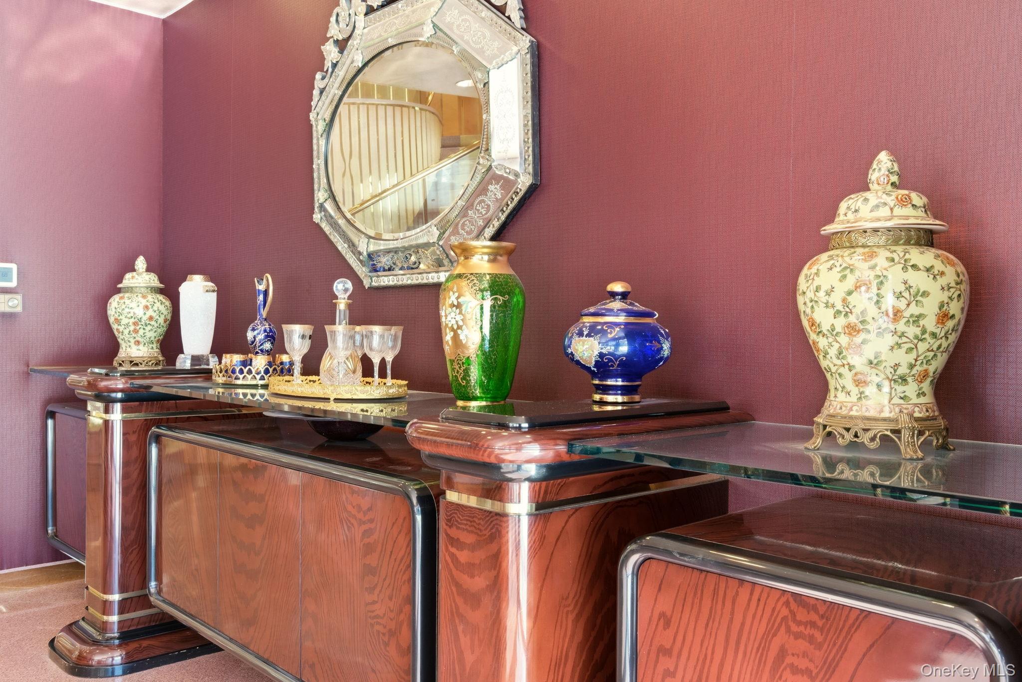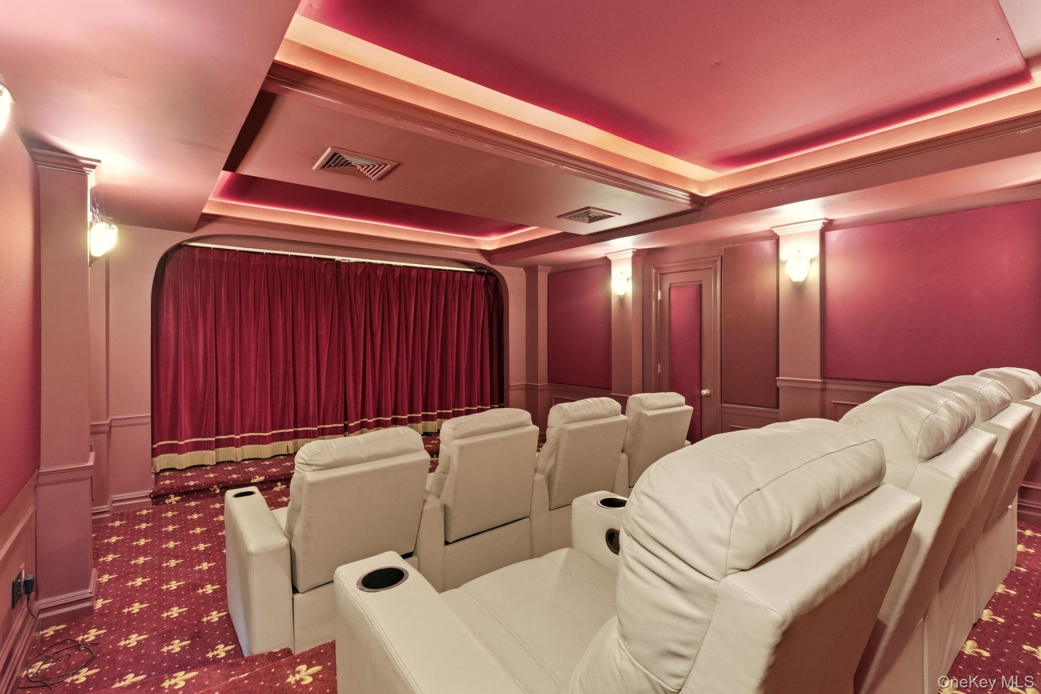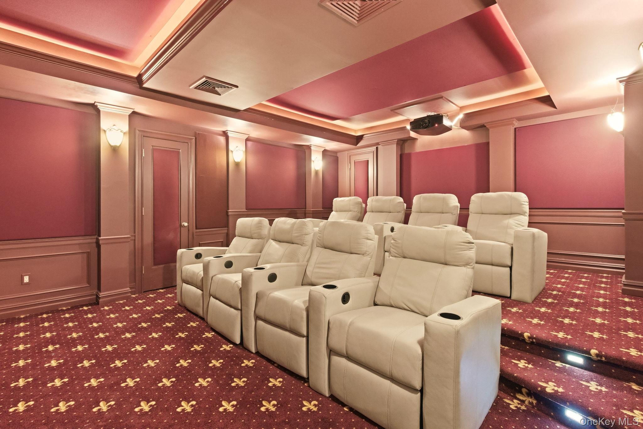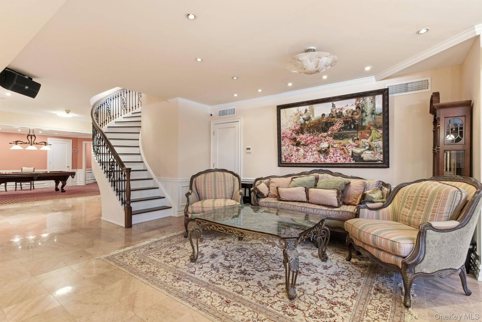 A long private drive leads you to an extraordinary 8000 + square foot classic contemporary estate set on over six pristine level park like acres in the prestigious village of Old Westbury. This one-of-a-kind residence offers a slate roof and copper entry doors, 6 gracious ensuite bedrooms and eight luxurious baths seamlessly blending architectural grandeur and timeless elegance. The impressive entry foyer opens to a dramatic formal living room featuring a 30 foot soaring ceiling, walls of floor to ceiling glass, and a striking glass fireplace creating a breathtaking setting filled with natural light. An impressive formal dining room provides the perfect backdrop for elegant entertaining on a grand scale. The expansive chef's kitchen features a generous center island with gas burners, slate roof, custom wood cabinetry, and stainless-steel appliances. The kitchen opens seamlessly to a sun-filled breakfast area plus an inviting den, creating an ideal space for both everyday living and entertaining. Also on this level are private guest quarters with private entrance, offering an ensuite bedroom, office, and additional half bath, perfect for extended stays or work-from-home flexibility. A serene primary marble suite is a luxurious private oasis featuring an expansive spa-like marble bath and 2 designer walk in closets. It also includes a sauna and private office, for the ultimate retreat. The second floor features an expansive sun-drenched landing that leads to three generously-sized ensuite bedrooms with access to a shared balcony. This level also provides access to the primary suite’s private sauna and Home Office, both offering serene, picturesque views of the beautiful, manicured estate. The resort-style lower level is designed for ultimate wellness and entertainment. Features include a state-of-the-art fitness center with a private sauna, custom 2-tier home theatre, temperature-controlled wine cellar, and a full-service bar. The expansive recreation area offers billiards and table tennis, while a dedicated entertainment studio includes professional karaoke equipment, pull down screen, mirrored dance floor, and a ballet barre. An exceptional space for both relaxation and hosting at the highest level. Encompassing 6 acres of exquisitely landscaped grounds, this remarkable property features a stunning stone and glass pool house, pool, and a professional Har-tru tennis court, creating a resort caliber experience. Three car attached garage. Jericho schools. Old Westbury is perfectly located on the North Shore of Long Island's Gold Coast, offering riding trails, the Meadowbrook Polo Club, prestigious country clubs, and in close proximity to the Americana Shopping Center, known for world-class shopping and fine dining. Nearby, the renowned Old Westbury Gardens offers beautiful grounds and cultural experiences. This home is half-way to the Hamptons and only 30 min to Manhattan, offering the best of both worlds.