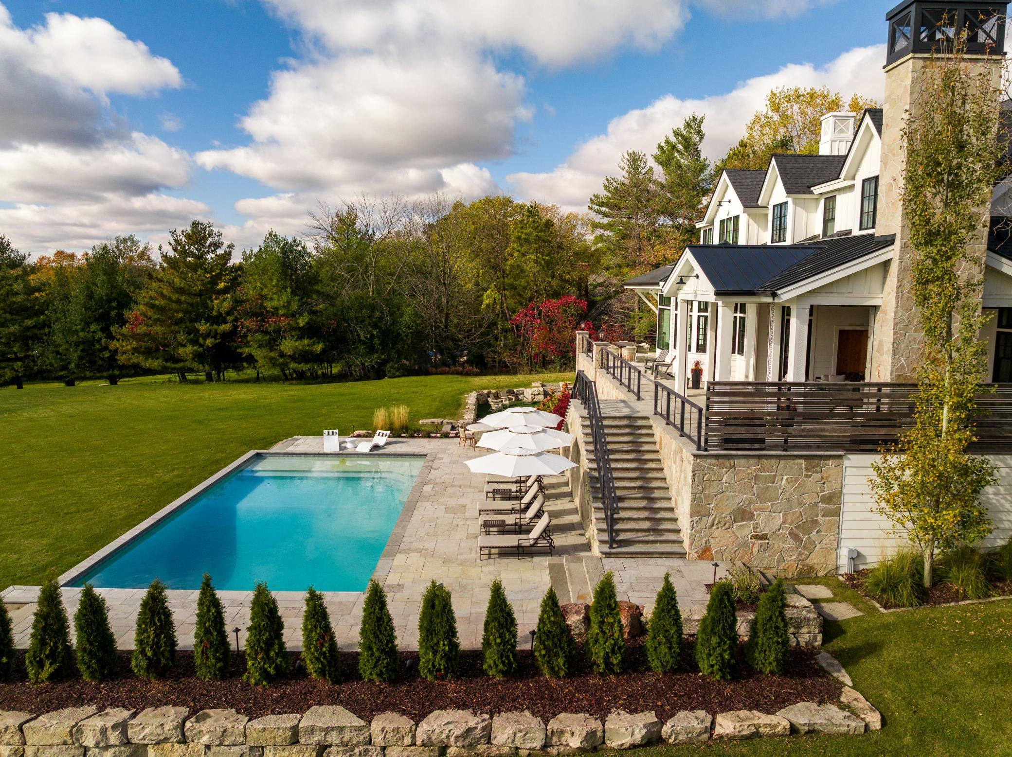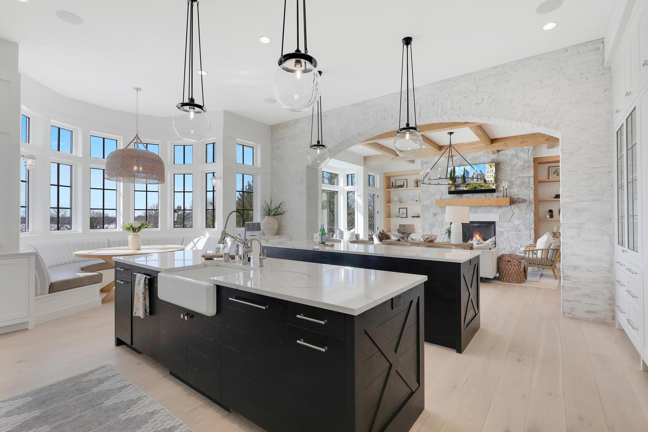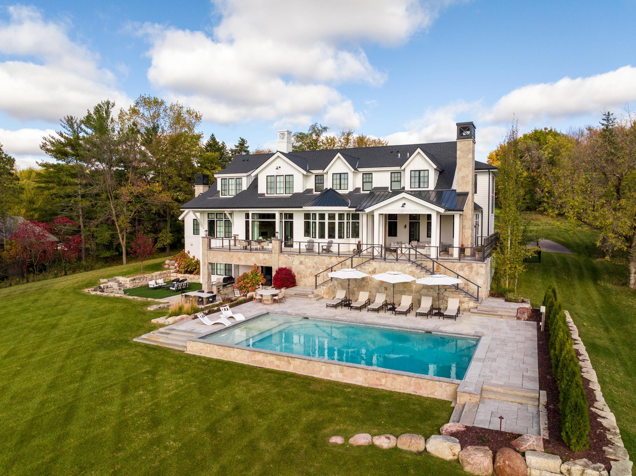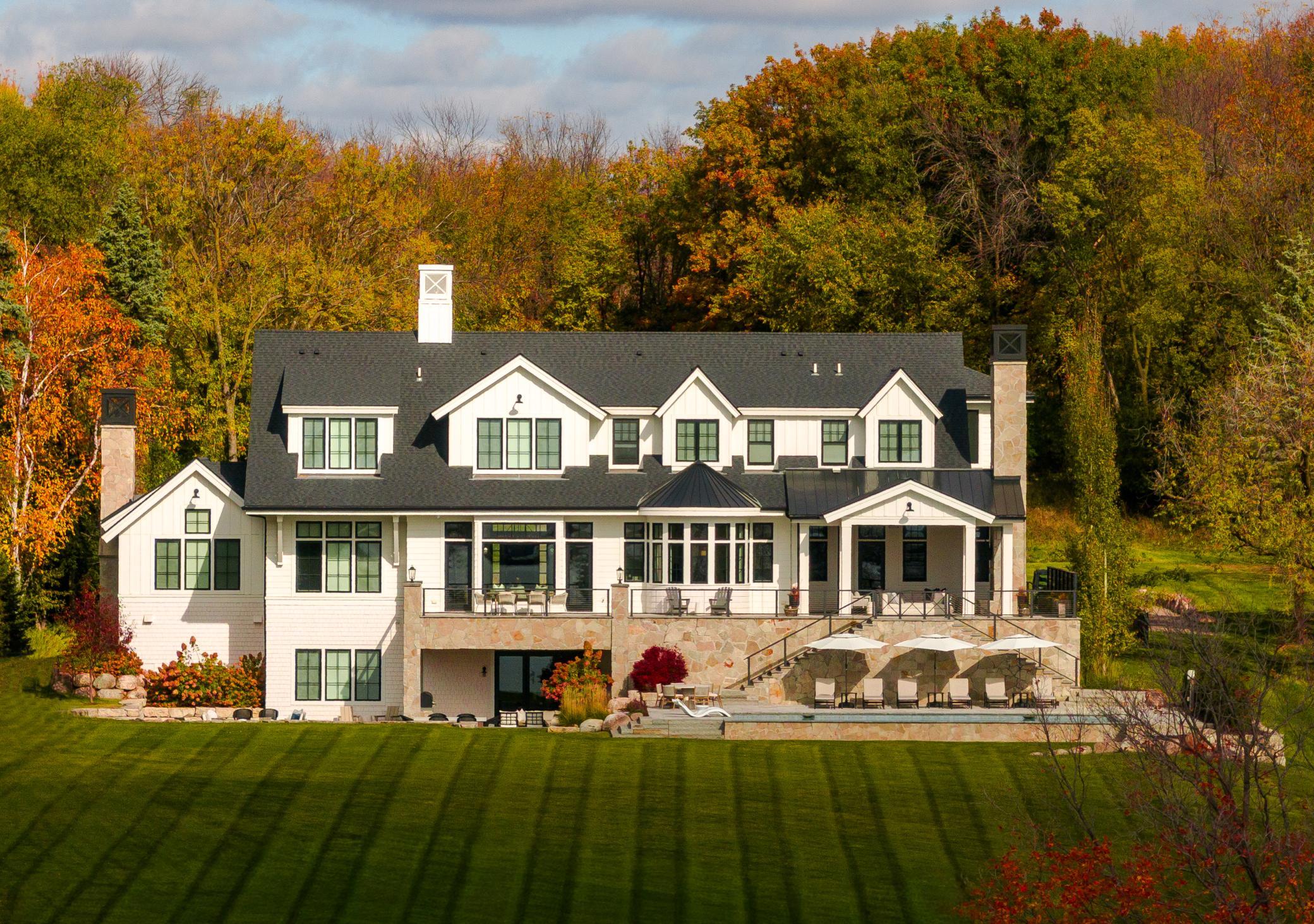 The gourmet kitchen is appointed with luxury appliances and an eat-in dining area overlooking the water, flowing effortlessly into a grand living room that strikes the perfect balance between elegance and warmth. Outdoors, resort-caliber amenities elevate the experience even further, including a stunning pool, fully equipped outdoor kitchen, expansive wraparound porch, and a fenced dog run—all perfectly positioned to capture panoramic lake views.