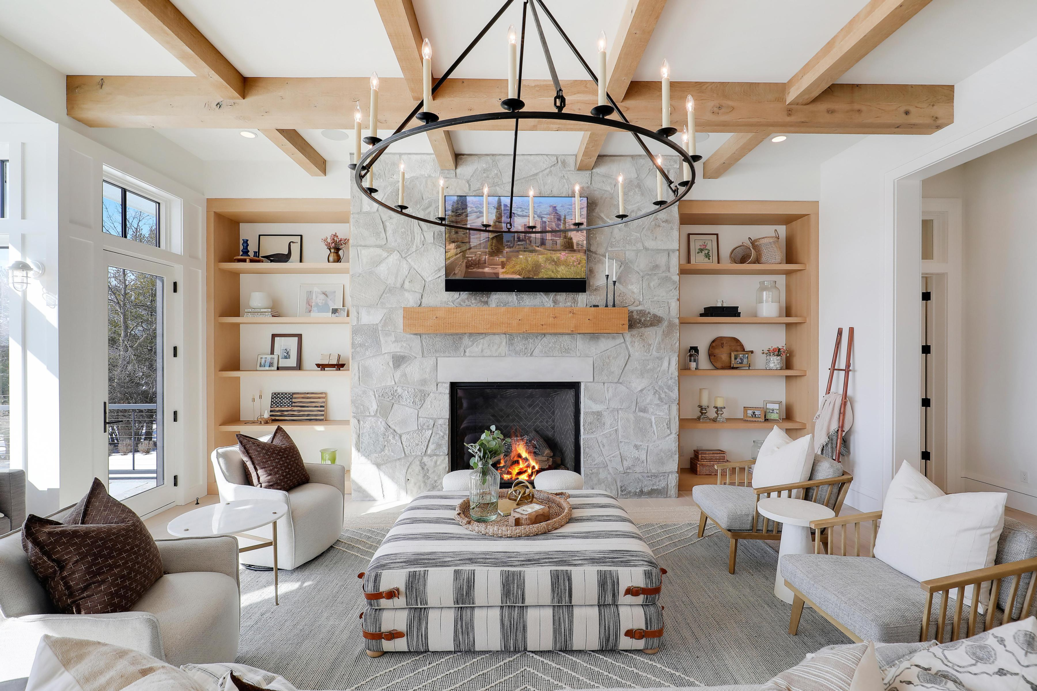 Designed by Angela Swan of Swan Architecture and thoughtfully curated with interiors by Henri Homes, this 2019-built estate is nestled on 4.95 private acres with sweeping, uninterrupted views across Maxwell Bay. Here, seclusion and serenity blend seamlessly with convenient access to the lake’s most sought-after bays.