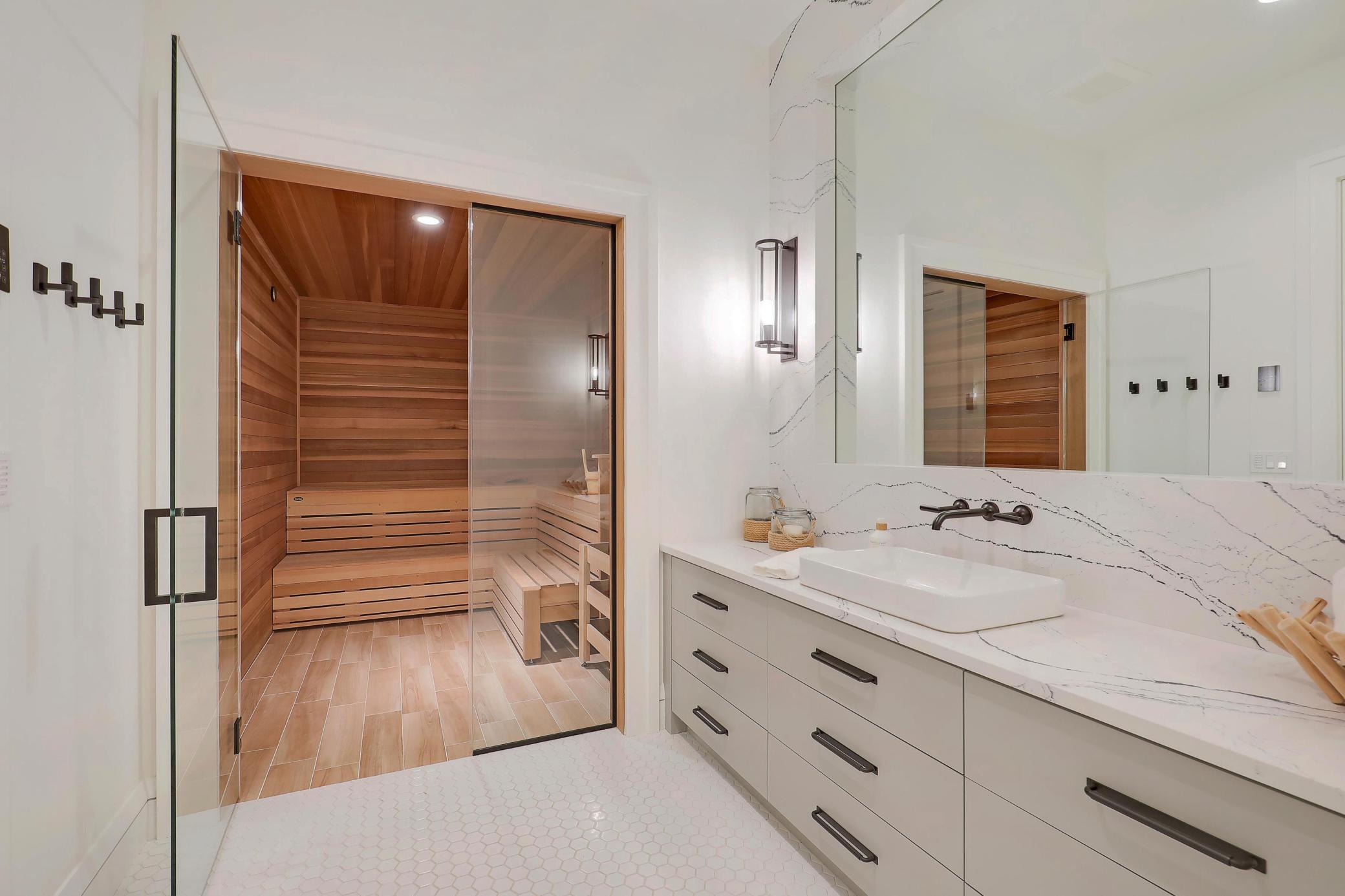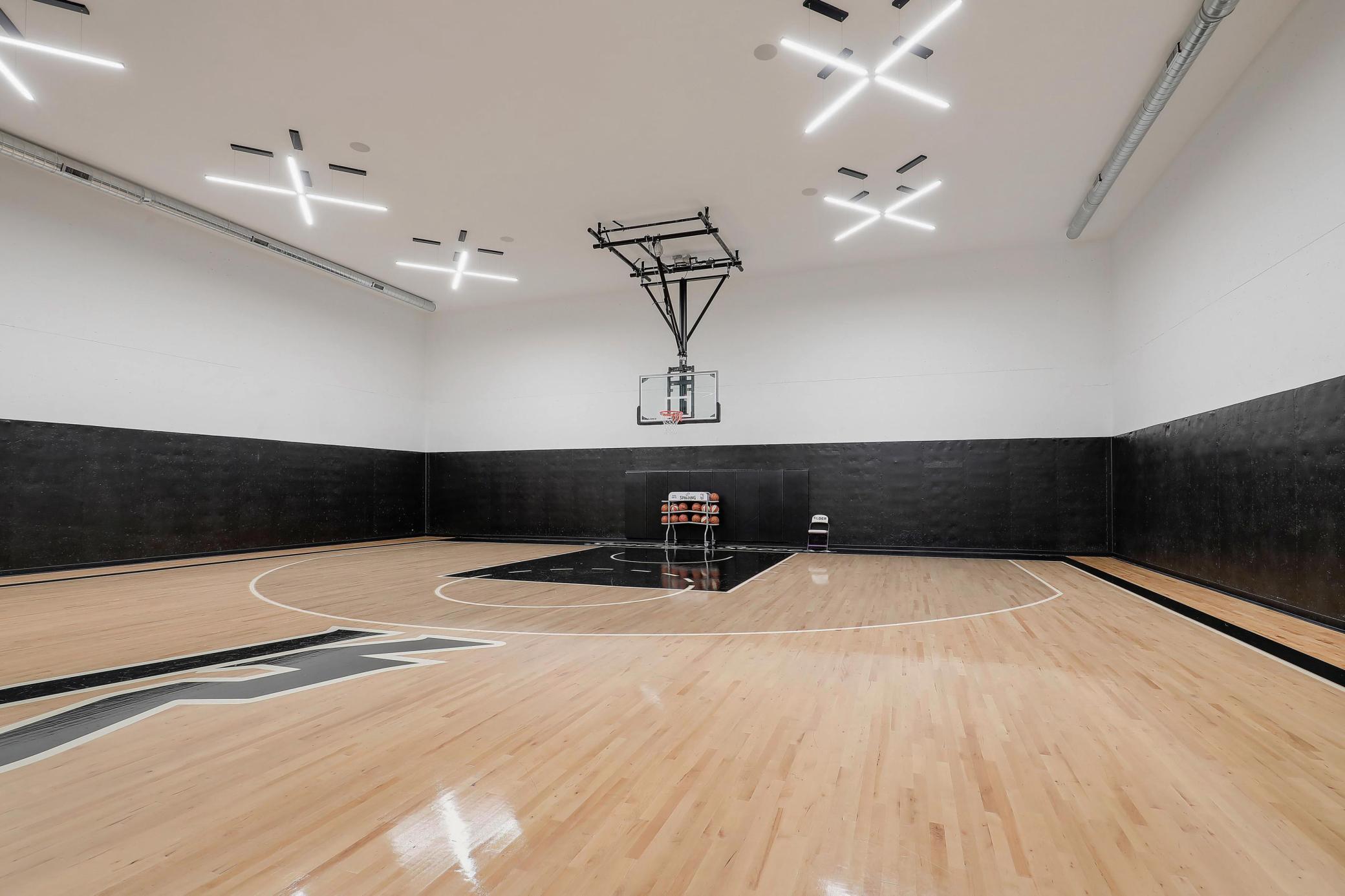 Every detail was designed to deliver a complete luxury lifestyle experience: a state-of-the-art home theater, temperature-controlled wine cellar, golf simulator, full home gym with sauna, and a private sport court. A four-car garage provides generous storage, while two dedicated offices, main-level and upper-level laundry rooms, a bunk room, and a playroom ensure the home lives as beautifully as it entertains.