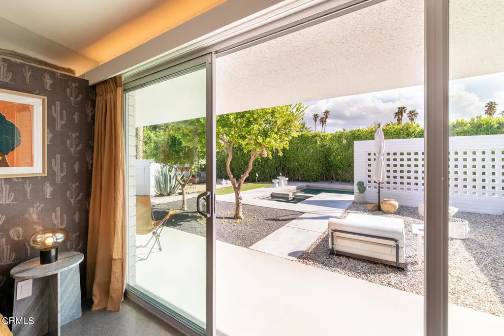 A true collector's item in the world of desert modernism, 73271 Buckboard Trail--known as the Paulette Herbert Johnson House--is a 1958 mid-century masterpiece by celebrated architect Walter S. White. Rarely does a home of this significance come to market--an exquisitely maintained and restored example of Palm Desert's architectural history, blending timeless design with resort-style living.Step through a pebble-stone entry into an open, light-filled floor plan where floor-to-ceiling glass walls, terrazzo floors, original wood paneling, and signature masonry walls create a seamless indoor/outdoor flow surrounding the living and dining areas. The custom wood panel kitchen cabinetry pays homage to its mid-century roots, while two beautifully appointed bedrooms feature cork-lined closets and bathrooms with authentic period tile and lighting. Natural light pours through every corner, framing breathtaking views of the surrounding gardens, mountains and desert skyline.The grounds are a modernist playground: a Parker-style pebble bottom pool and spa, outdoor kitchen with barbecue and pizza oven, bocce court, putting green, lounge gazebo, firepits galore, and room for an ADU--all set against panoramic desert vistas. A spacious two-car garage plus additional parking for up to six vehicles completes the estate.Located in the historic Silver Spur Ranch enclave, this home is just minutes from El Paseo's dining and shopping, the Living Desert Zoo, and Palm Desert's country clubs. More than a residence, it is an architectural icon--the Paulette Herbert Johnson House by Walter S. White--r