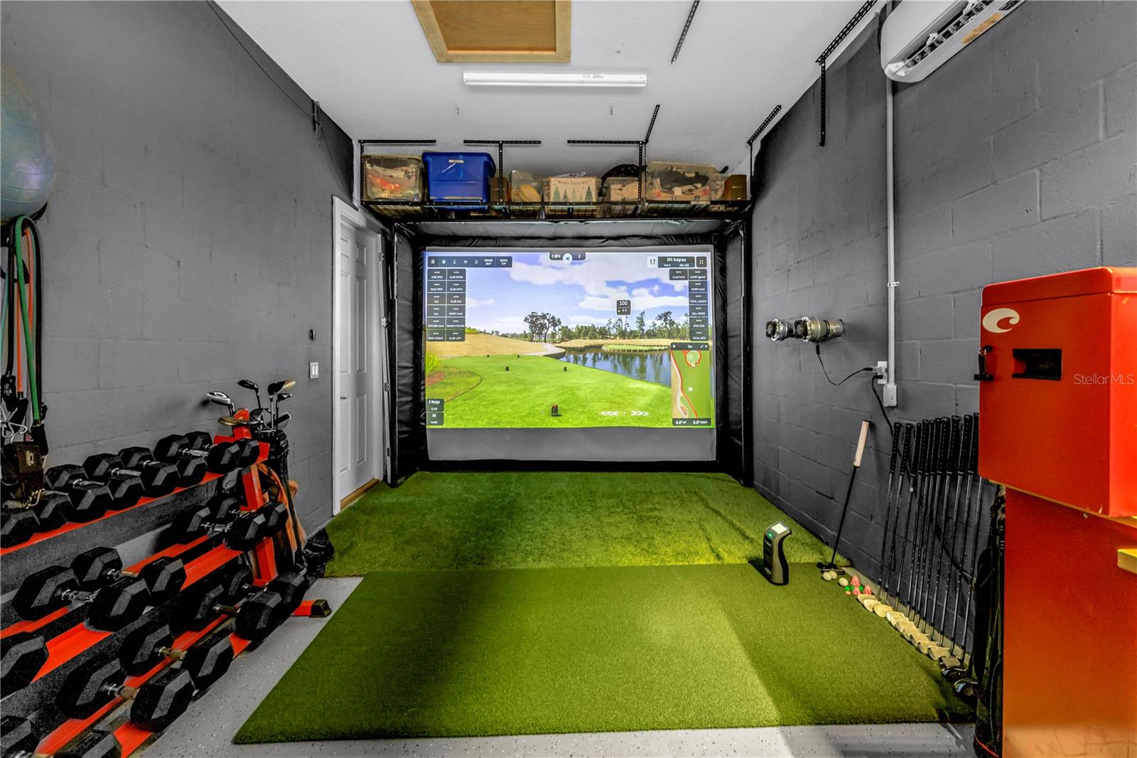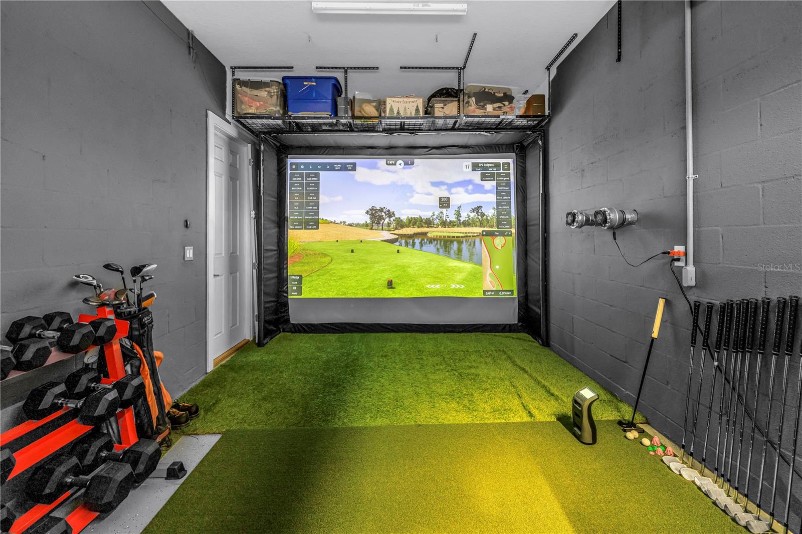 Inside, the home continues to deliver with premium upgrades including impact windows and doors, tile roof, 2 tankless gas water heaters, whole-house water purification and softener system, and a 3-car garage. A standout feature is the climate-controlled garage conversion currently outfitted with a golf simulator and fitness space—a rare and highly desirable bonus for recreation and entertainment.