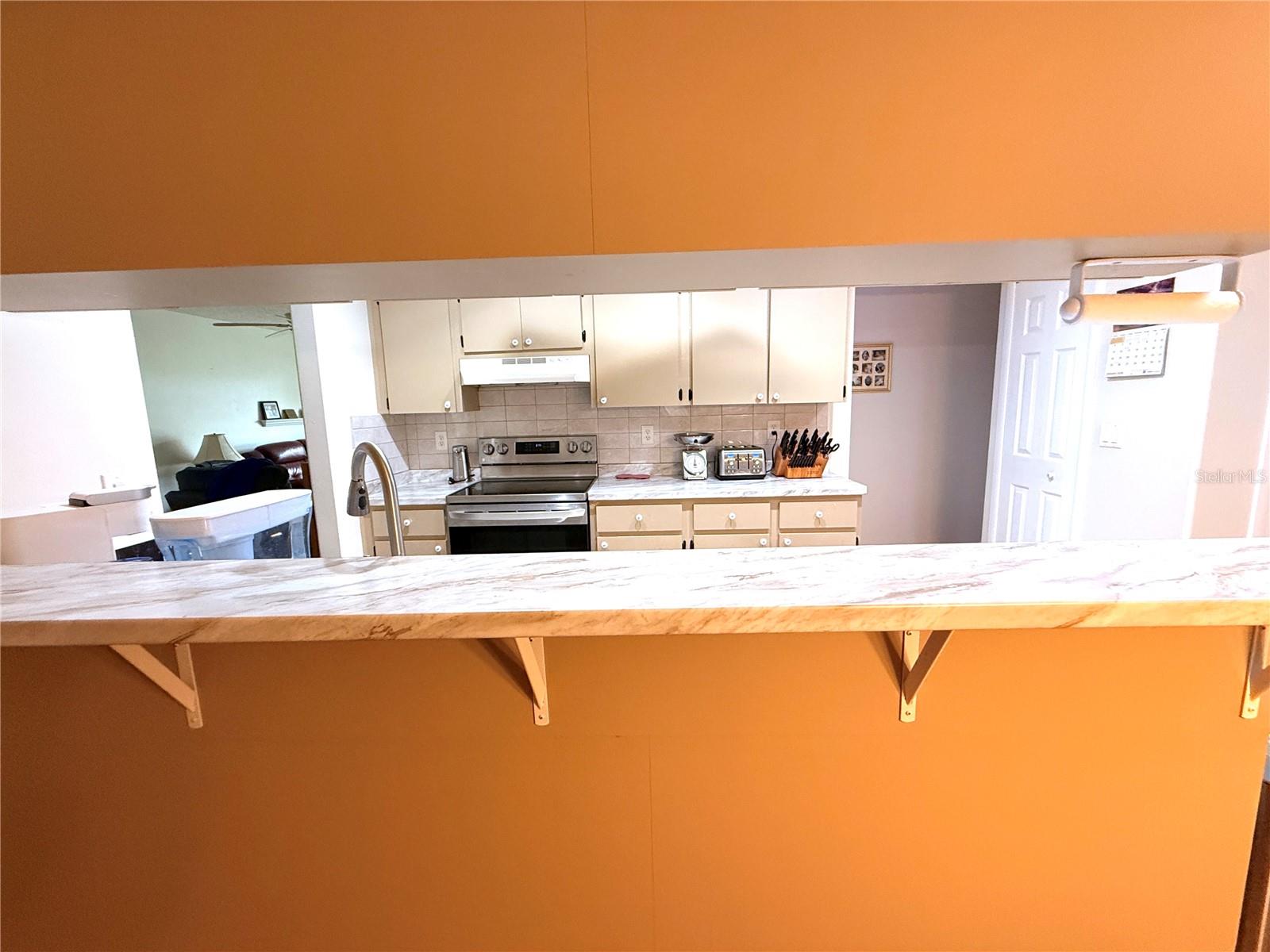 The kitchen features stainless steel appliances, ample counter space, and a breakfast bar that opens to the living area, making it ideal for cooking your favorite meals and entertaining guests. The home offers three spacious bedrooms, including a guest room with its own attached half bathroom, perfect for visitors.