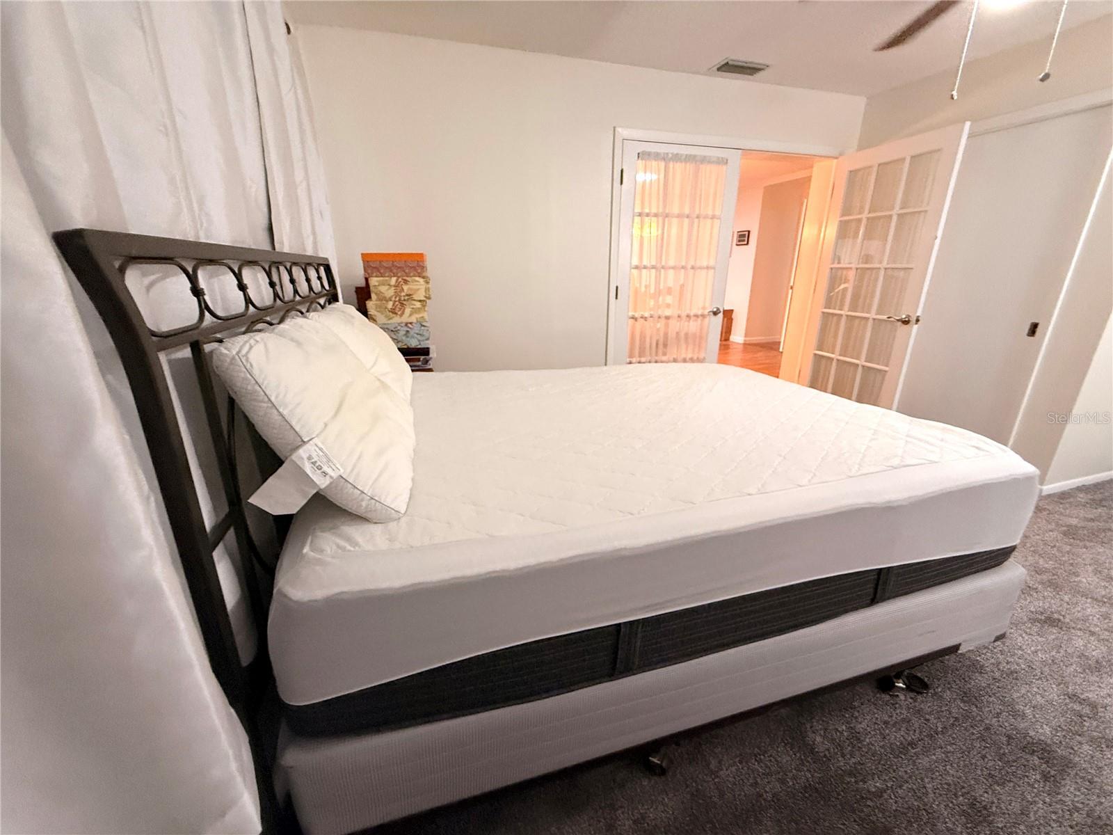 The enclosed porch has been thoughtfully converted into a private office space, providing a quiet and comfortable area for work or hobbies.