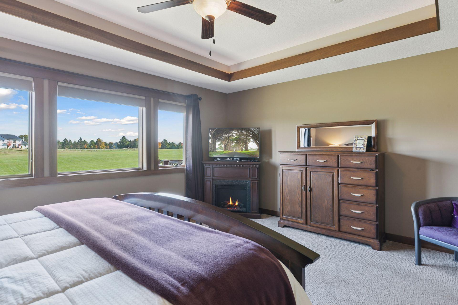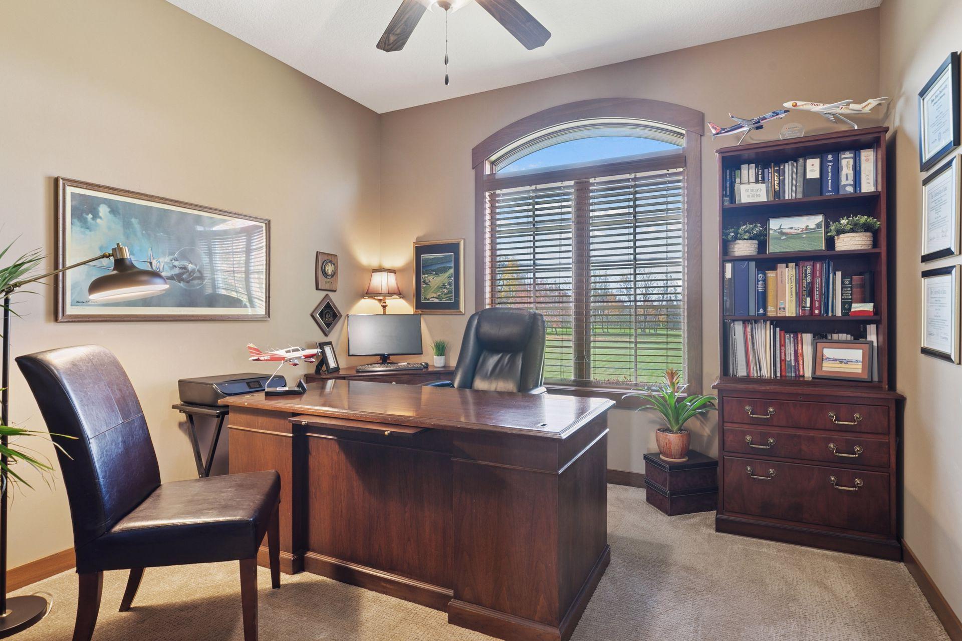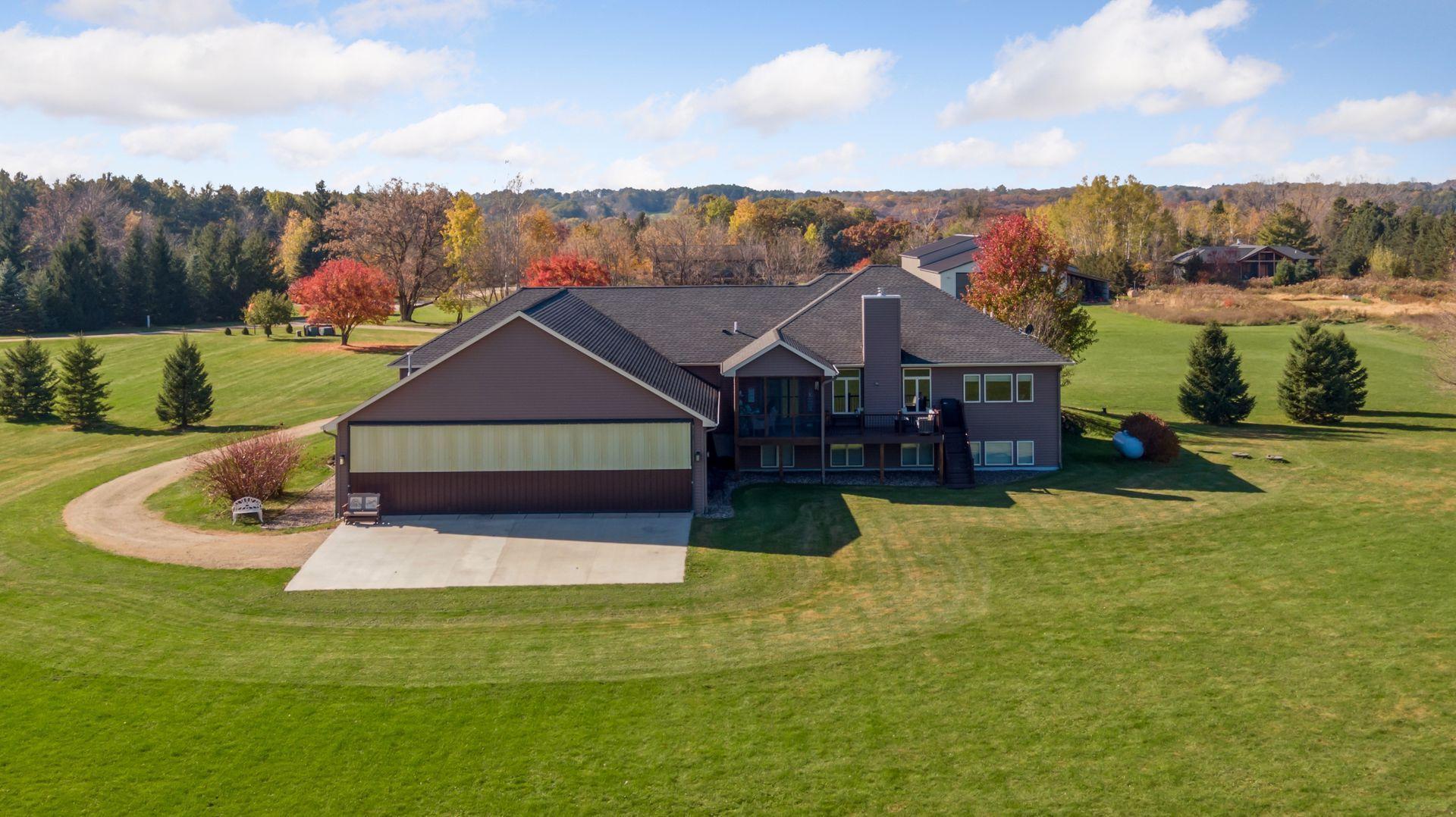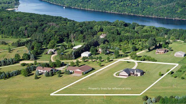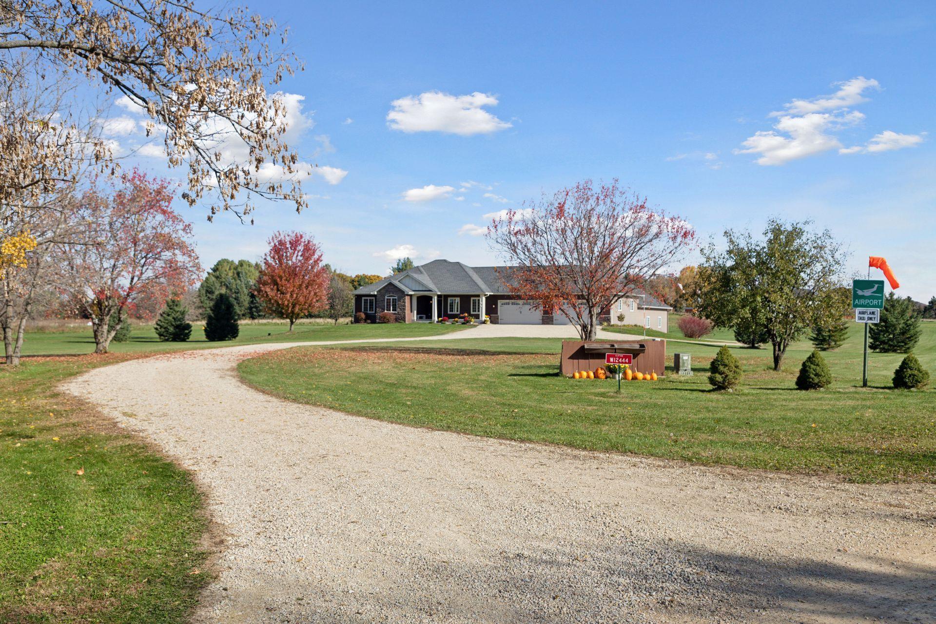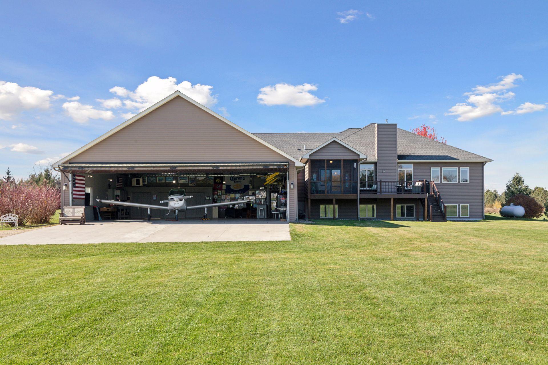 Step inside to a flood of natural light and sweeping views of the manicured airpark grass runway. Elegant architectural details, from cove-lit ceilings, a wood-burning fireplace to handcrafted cabinetry and natural stone surfaces reflect Hartman’s signature artistry and designer finishes. The main-floor primary suite offers a serene retreat, complemented by a second spacious bedroom and a private office. The kitchen opens seamlessly to inviting living and dining spaces, flanked by the three-season porch with immediate access to the tranquil yet expansive low maintenance deck, ideal for entertaining or quiet evenings at home. The lower level is designed for relaxation and fun, featuring a wet bar, exercise room, spa-style bath, media and family area, guest suite, and even a hidden play space. Rough ins are prepared for a potential fifth bedroom, if desired. A secondary staircase connects directly to the private heated hangar for effortless convenience. Enjoy year-round indoor-outdoor living overlooking your 5-acre retreat. A 6-car garage adjoins the home, step down a few steps to the attached 1,760 SF heated airplane hangar/shop with wet bar and bathroom, making this home ideal for pilots, boaters, golf enthusiasts, or for horse lovers; an outbuilding is allowed to be built. Lifestyle - The St. Croix Riviera Association offers a special lifestyle with private access to a sandy beach, marina with dock slips, and a charming beach house for gatherings or swimming adventures. Just minutes from Hudson, River Falls, and Prescott, the community sits across from Afton State Park and near Kinnickinnic State Park, offering endless recreation along the scenic St. Croix River, a national treasure known for its beauty, serenity, and fun in the sun. Take your golf cart down to the beach to join family in boating, grilling, jet skiing, and finish the day taking in the sunsets. Association dues here are refreshingly modest, $575 per year, including airstrip, beach, and marina. Bring your airplane, boat, or horses and experience a home that fuses luxury, lifestyle, and freedom in one remarkable address.