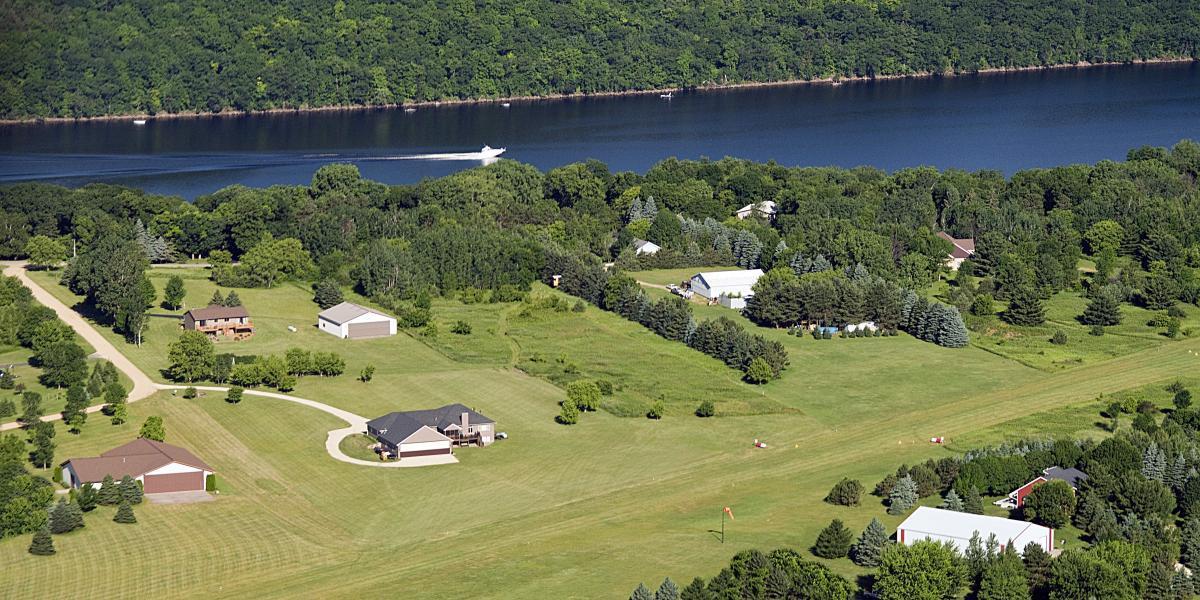 Private Airpark Living at Prime Location on Airstrip with Runway, Hangar & St. Croix River Beachfront