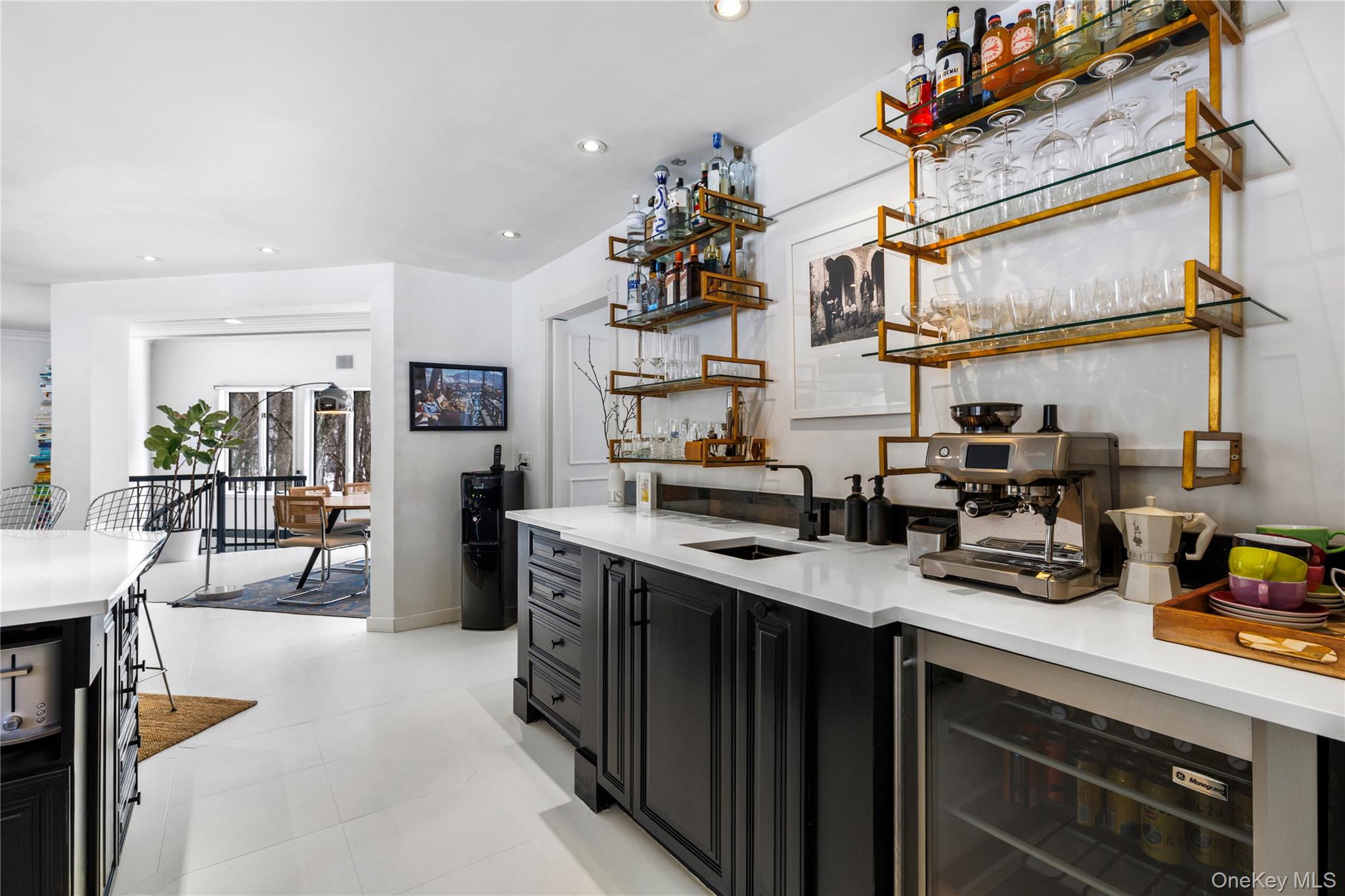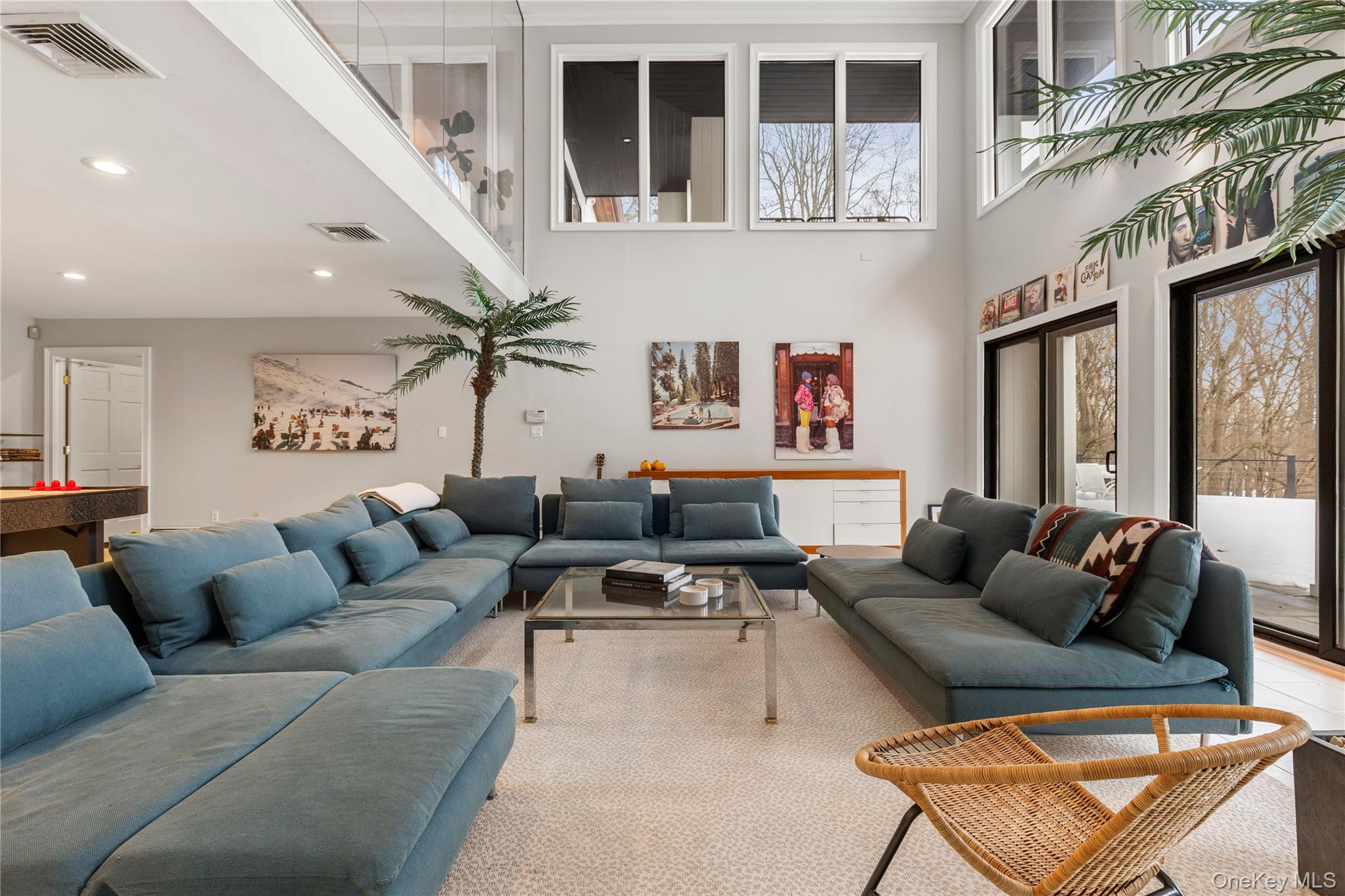This 5-bedroom, 4.5-bathroom contemporary offers exceptional privacy with effortless convenience. The main level is anchored by a dramatic sunken living room with a wood-burning fireplace and a signature glass-walled overlook that provides a stunning view of the outdoors and the level below. A sun-filled den with cathedral ceilings and glass French doors offers a quiet retreat, while the large formal dining room features sliders to the outdoor sanctuary. The massive chef’s kitchen features high-end appliances, a sprawling center island with seating, a breakfast nook, and an integrated sitting area. A sleek bar/prep station with custom gold-toned shelving and a beverage fridge makes this the ultimate space for entertaining. The main floor is completed by a powder room, laundry, three-car garage access, and a bedroom with an ensuite bathroom. The second floor is home to a sprawling primary suite featuring a private sitting area, office nook, and a generous walk-in closet. The primary bathroom is a true sanctuary, featuring a large skylight, elevated soaking tub, double vanity, and separate water closet. This level also includes an additional ensuite bedroom and two bright bedrooms that share a well-appointed hall bath. The walk-out lower level is designed for high-end recreation, featuring a large living area with a stone-surround fireplace and a full bar. A dedicated changing room provides effortless access to the backyard oasis, where the pool and hot tub are set in nature. Additional flexible space on this level currently serves as a home office, den, and guest room. Ideally located for maximum convenience, this residence offers the rare ease of being just minutes from major parkways, local country clubs, and downtown shopping, all while maintaining the seclusion of a private estate.