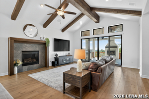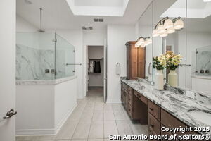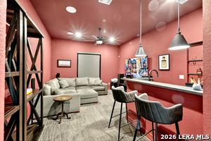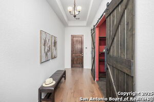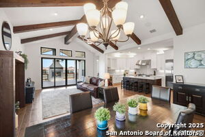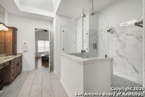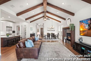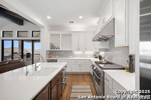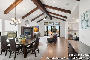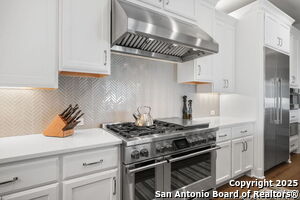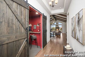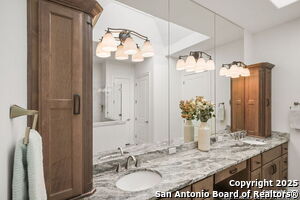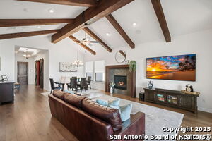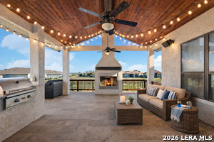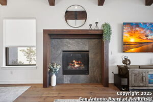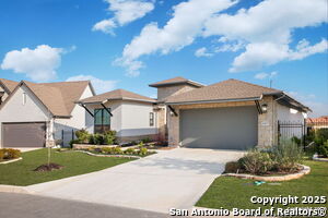 An exquisite Sitterle home is nestled in upscale gated El Sonido at Campanas community, part of Cibolo Canyons' most desirable, unique master-planned development. Its location, just across from the JW Marriot Spa & Resort and minutes from shopping, dining, and nearby activities, offers both convenience and luxury. This luxury home features three bedrooms, three full baths, one 1/2 bath, a formal dining room, an office, a media room, and a spacious three-car tandem garage. It was designed with an eye for timeless beauty and elegance and built with the best materials. As you enter the foyer, you're greeted by an open floor plan that seamlessly connects the living room, dining area, kitchen, and office. Enjoy upgraded custom high-end finishes throughout, touch of sophistication throughout the home. A magnificent main living space featuring a wall of windows that flood the room with natural light, dark beams accentuating the living room's high ceiling, adorned with a beautiful fireplace, complimenting the open space, crown molding, beautiful lighting, and surround sound system. A gorgeous chef's kitchen and culinary heaven is a masterpiece of design and functionality. It features stainless steel appliances, granite countertops, double ovens, custom cabinetry, a large island that provides ample space for hosting and entertaining, and a walk-in pantry with extensive storage solutions. The luxurious primary bedroom suite, an extensive spa-like primary bath featuring dual granite vanity and an extensive custom tile, walk-in shower with dual shower heads. There are two more secondary, private guest bedrooms with a full bath. The extended covered backyard patio is an entertainer's dream that overlooks a spacious backyard oasis with a wrought iron fence opening to the greenbelt and a paved walking trail, one of many walking trails throughout the neighborhood. A built-in outdoor kitchen is a chef's delight, with a striking outdoor fireplace that makes this back patio a great spot to gather with family and friends for a cookout, a sitting area for long, starry nights, s'mores, and wine. The backyard is prepped for a pool addition. With 2,100 acres of breathtaking landscape, Cibolo Canyons is a community that offers more than just a home. It features distinctive residences and an array of community amenities that cater to an active lifestyle. Adjacent to the world-class JW Marriott, San Antonio Hill Country Resort & Spa, and two PGA golf courses, Cibolo Canyons is the active master-planned community that makes this incredible lifestyle at Campanas a reality. Campana's amenities include private access to two Cibolo Canyons community centers with a pool, lazy river, clubhouse, playground, pickleball court, jogging trails, and much more. The HOA includes an annual grounds maintenance program available for the community, ensuring that the community always looks its best. This home, with over $200K in upgrades, truly has it all. Don't miss this rare opportunity to own a piece of Texas luxury living!