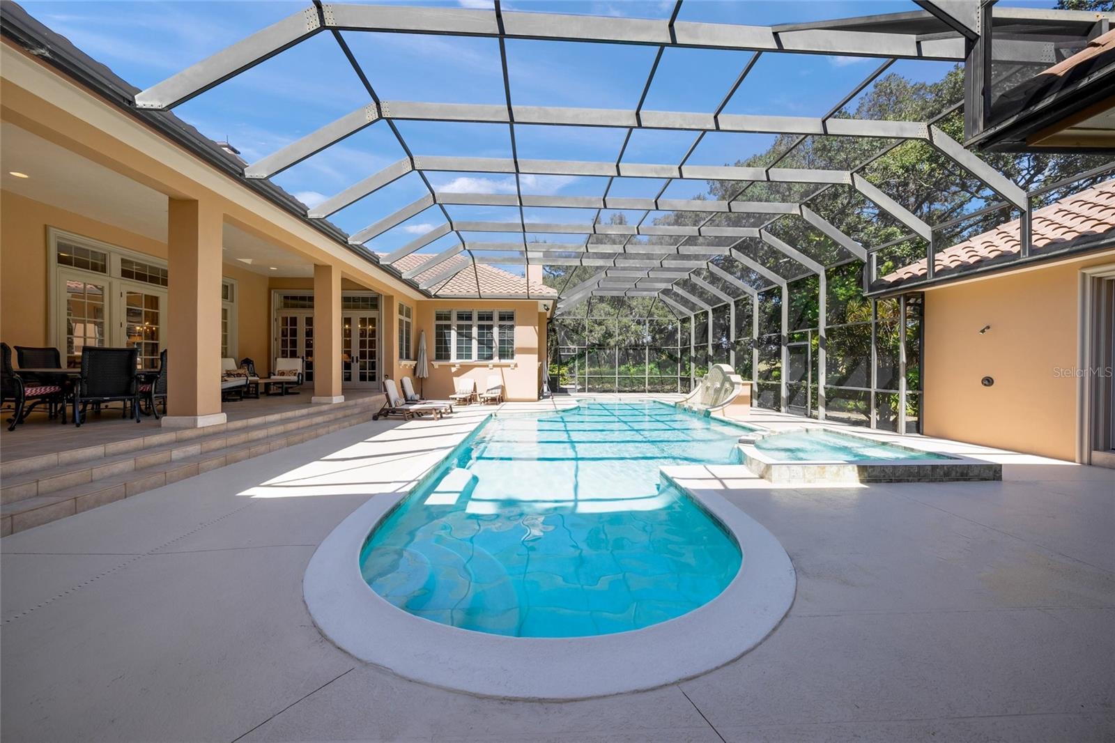 PERFECTLY POSITIONED ON 2 LOTS PROVIDING YOU A VERY PRIVATE SETTING ON 1.33 ACRES * QUALITY BUILT BY William McGinnis Custom Homes and BUILT TO LAST with a TIMELESS OLD WORLD DESIGN * This is NOT a cookie cutter home * Ideal for the discerning buyer who will appreciate the SPACIOUS LIVING, QUALITY CRAFTSMANSHIP & ENDURING ELEGANCE * Pride of ownership shows * The MAIN HOUSE features a Formal Living Room and Formal Dining Room, a Library/Den/Office with Custom Built-ins * The Gourmet Kitchen is a Chef’s delight with Graber Wood Cabinets, Granite Counter-tops, Sub-Zero Refrigerator, Viking Gas Stove, Double Ovens, Warming Drawer and Triple Sinks * Your Kitchen is open to the SPACIOUS Family Room with Coffered Ceilings, Wood Beams, Crown Molding and a BEAUTIFUL FIREPLACE * The Primary Suite is a true retreat featuring a Sitting Room, Custom Walk-in Closets, Marble Flooring and a Spa-style Bath * The ONLY UPSTAIRS Living Space is the 2nd En-suite Bedroom with a Walk-in Closet & Balcony * The GUEST CASITA has 2 En-suite Bedrooms with Walk-in Closets & a Full Sauna – perfect for your guest's privacy. All of this wraps your OUTDOOR OASIS showcasing a LARGE, CAGED POOL & SPA PLUS AN OUTDOOR KITCHEN and an ABUNDANCE OF COVERED LANAI * This is the perfect home for entertaining family & friends or for simply relaxing in your slice of paradise * OVERSIZED Gated Motor Court with 4 Garage Bays – one is detached, air conditioned and ideal as a Flex-space * Quiet side street * LARGE Circular Driveway * 6573-/- sqft a/c INCLUDES the Main House & Guest House & the 4th Detached Garage or Flex-space *