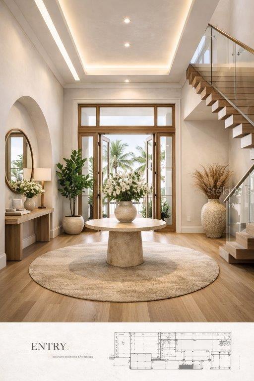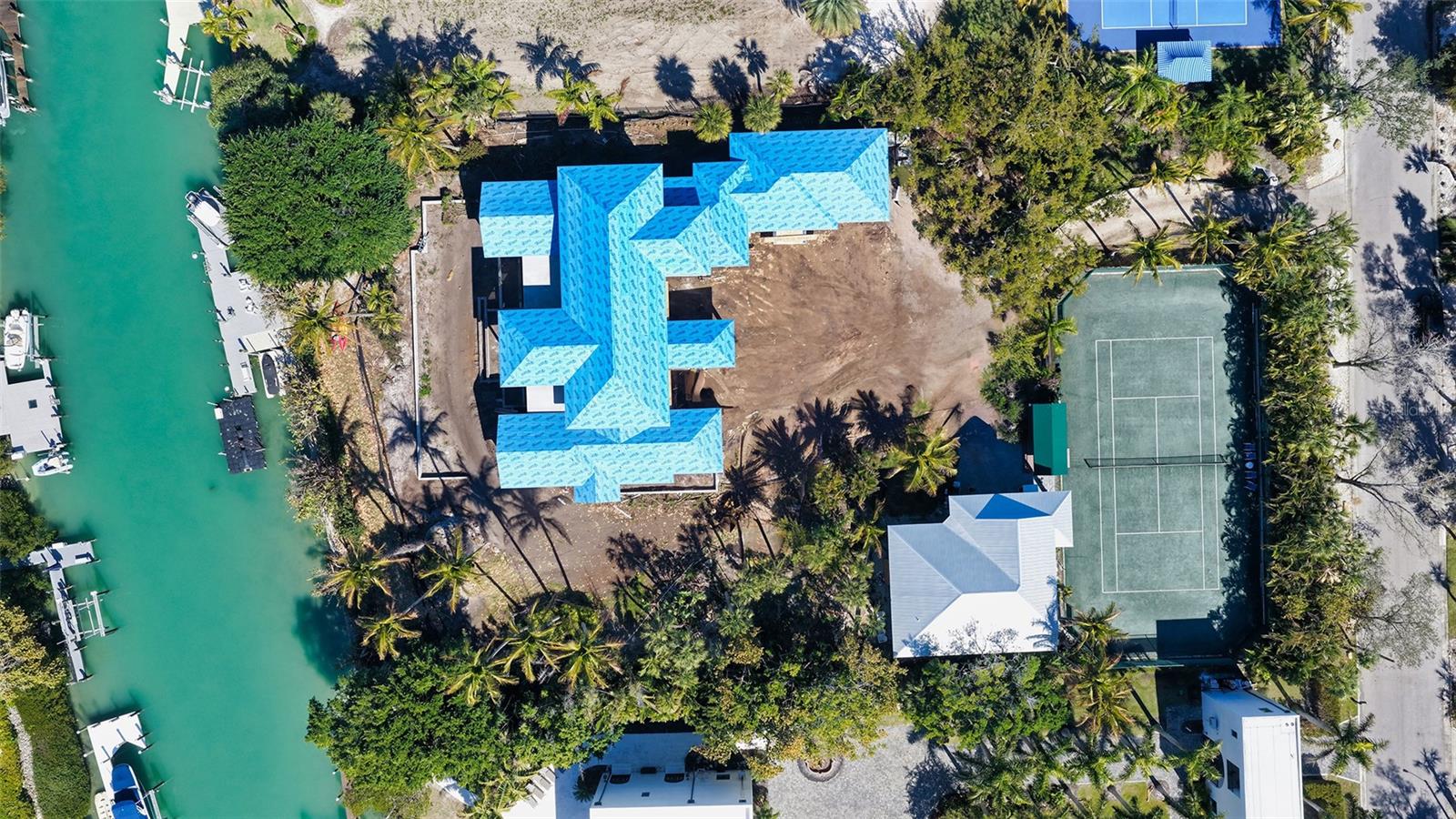 Under Construction. An extraordinary opportunity awaits on the coveted north end of Siesta Key. Currently under construction and scheduled for completion in late 2026, this magnificent waterfront estate offers the rare chance to personalize finishes and create a truly bespoke coastal masterpiece—without the years-long process of designing, permitting, and building. Set on a remarkable and rarely available 1.25-acre estate-sized lot with direct sailboat water frontage, the property provides unobstructed access to Sarasota Bay and the open waters of the Gulf of Mexico. Boating enthusiasts will appreciate the deep-water access with no bridges to the bay, offering seamless days on the water from your own backyard. The custom-designed residence encompasses over 6,000 square feet of refined living space, thoughtfully planned to blend grand scale with effortless coastal elegance. Expansive indoor-outdoor living areas, soaring ceilings, and walls of glass are designed to capture tranquil water views and Gulf breezes. Buyers have the exclusive opportunity to select interior finishes, fixtures, and design elements—tailoring the home to their personal vision while benefiting from the expertise and timeline already in place. Complementing the main residence is a private guest house, ideal for hosting family and friends in comfort and style. The true estate setting is further enhanced by a full-sized tennis court, lush grounds with room for additional amenities, and the privacy rarely found on waterfront properties. This is a once-in-a-generation opportunity to own a newly built waterfront compound in one of the Gulf Coast’s most sought-after locations—where luxury, space, convenience and converge. These images are architectural renderings created for illustrative purposes only and are based on preliminary plans and design concepts. Renderings are intended to convey the overall vision, layout, and design intent but are not exact representations of the final constructed residence. Actual materials, finishes, dimensions, landscaping, fixtures, furnishings, ceiling details, lighting, views, and architectural elements may vary. All features, specifications, and details are subject to change without notice.
