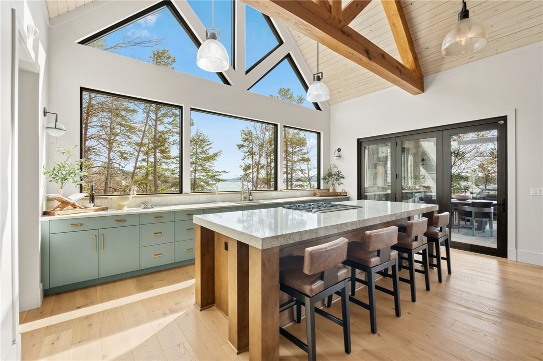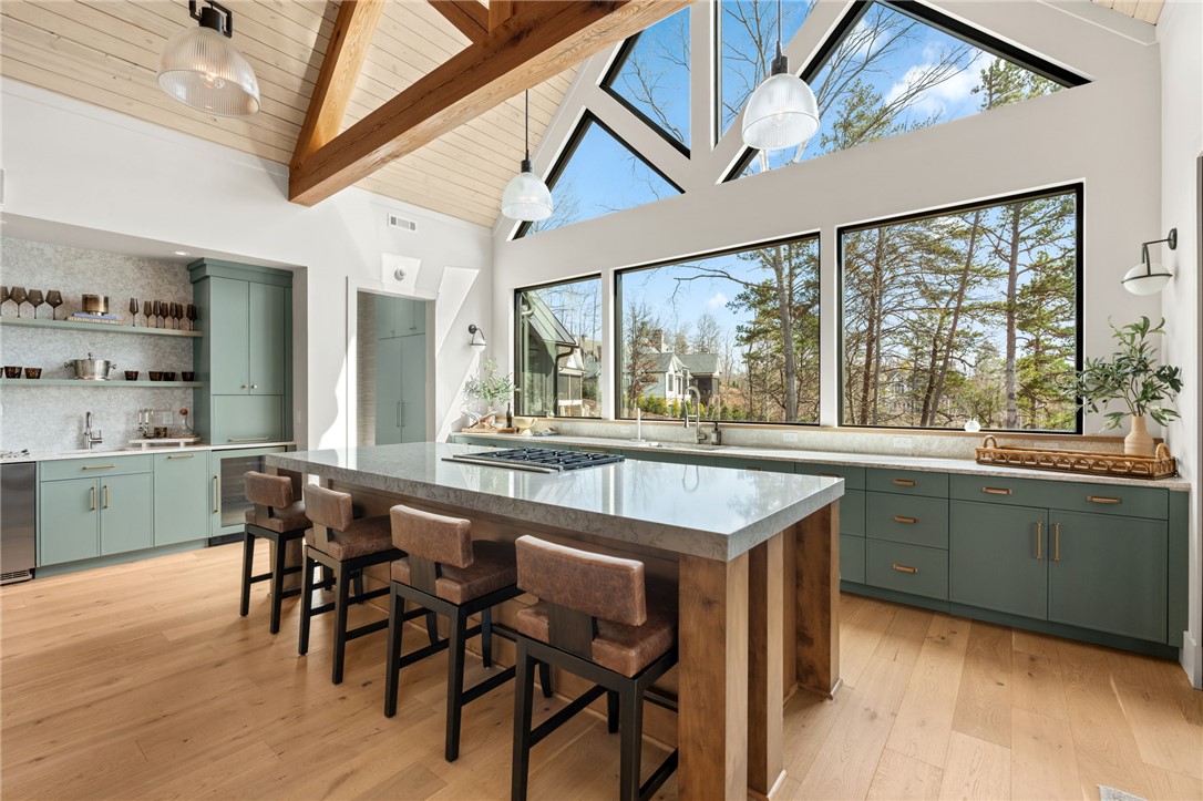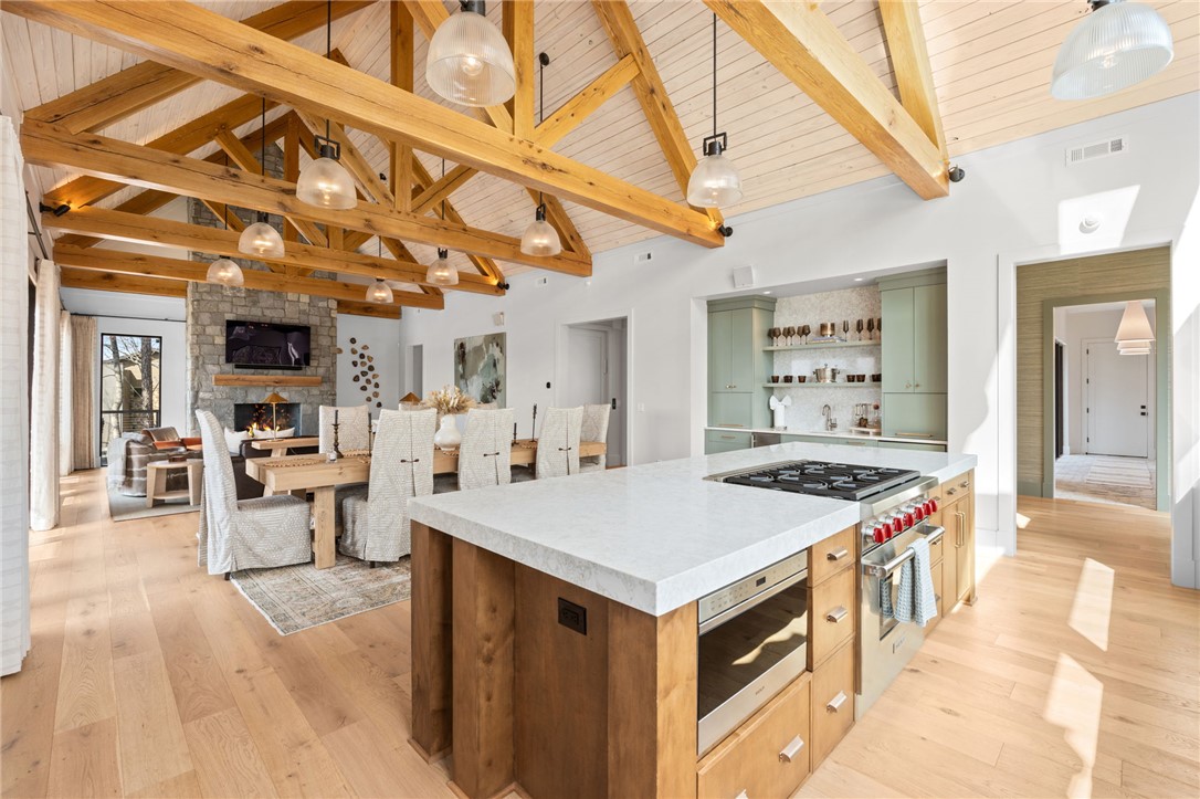 Interior Features : WetBar, Bathtub, CathedralCeilings, DressingArea, DualSinks, Elevator, FrenchDoorsAtriumDoors, Fireplace, GardenTubRomanTub, HighCeilings, HeatedFloor, BathInPrimaryBedroom, MainLevelPrimary, SittingAreaInPrimary, SmoothCeilings, SeparateShower, WalkInShower, BreakfastArea, Workshop