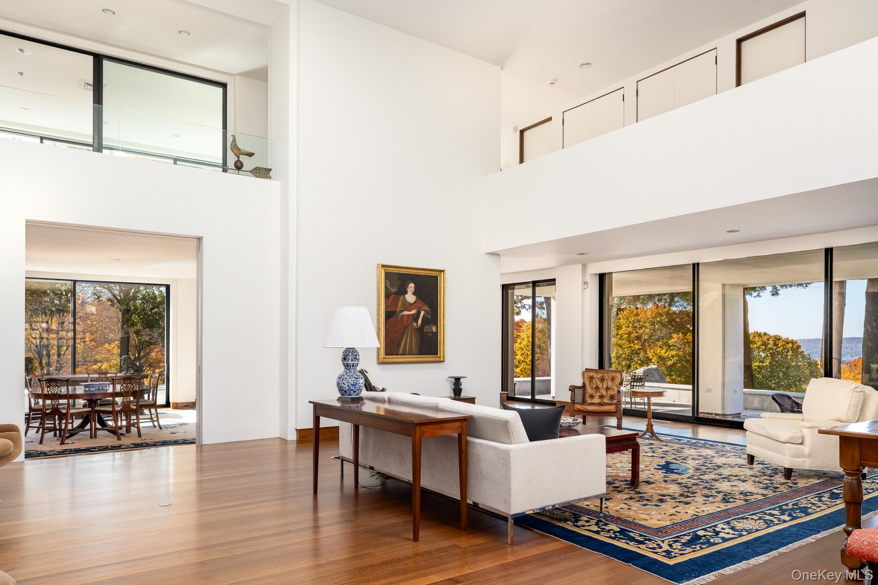 Historic Winterburn Farm is a spectacular 42 acre estate compound with sweeping views of the Hudson and Palisades beyond. Located in Westchester's bucolic hamlet of Pocantico Hills, the property offers the beauty and serenity of the country within 30 miles of Manhattan. The main residence, designed for Rodman Rockefeller by Architect Richard P. Donahue, is mid century modern. The home's central core is a great room with 20 foot ceilings and walls of glass facing the river. Equestrian facilities include a 14-stall stable, indoor and outdoor riding arenas, six fenced paddocks and two grooms's apartments. A manager's house, greenhouse, carriage barn and equipment garage are all well located to support the stable, main house and property. Direct trail access from the property is provided through north and south gates to the 55-mile carriage trail network of the 1,800 acre Rockefeller State Park. Winterburn Farm is an extremely rare opportunity offering a pristine architectural house amid a beautiful landscape of unparalleled privacy.