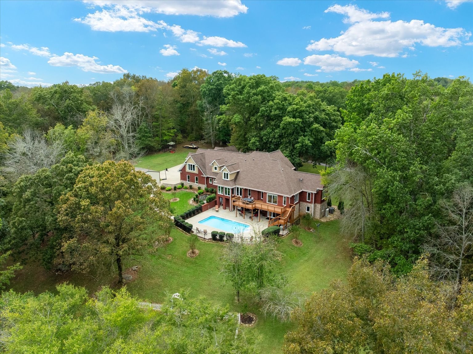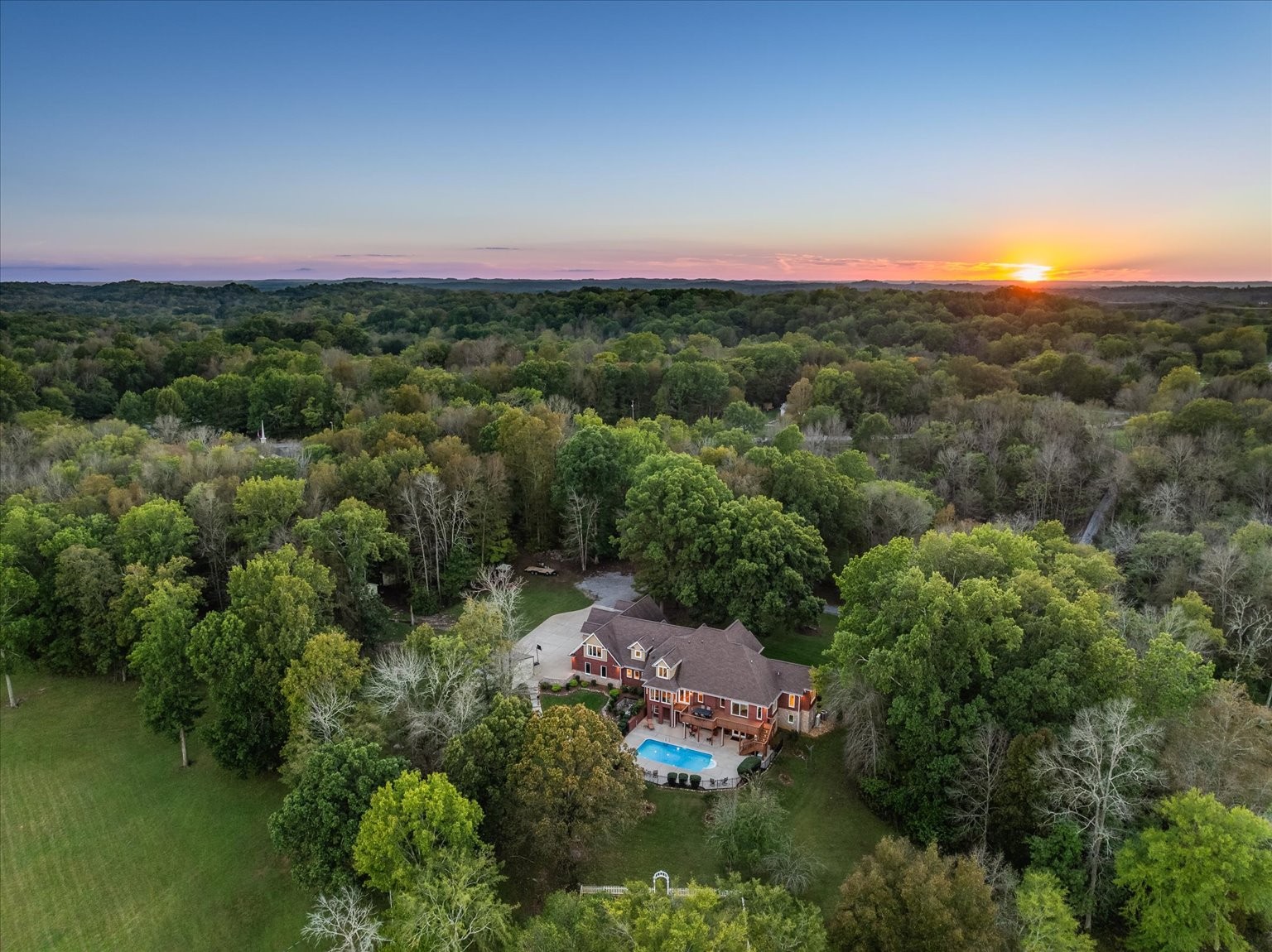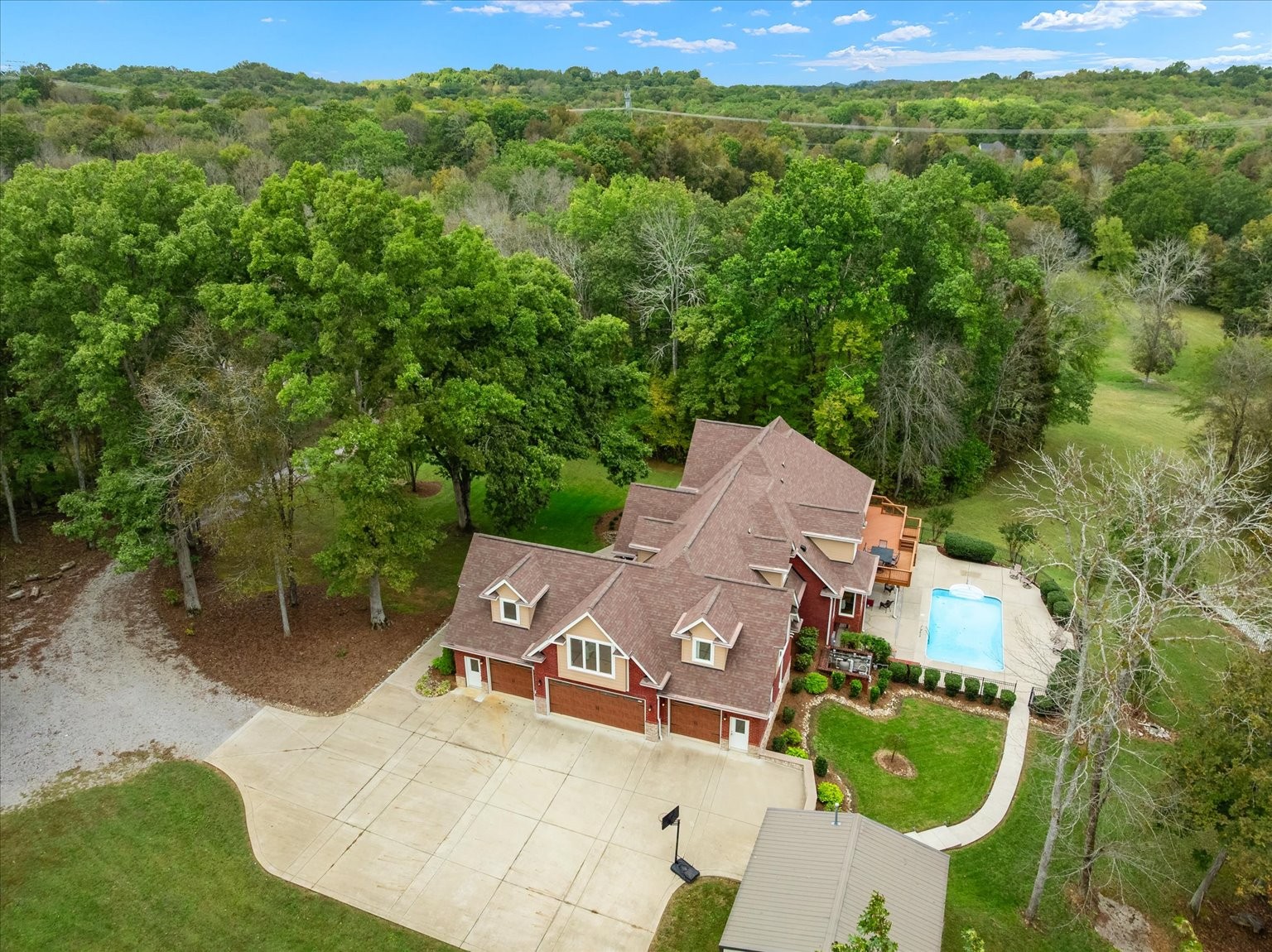 Nestled on 19 stunning acres, this 7,100 sq ft custom estate offers luxury, privacy, and space to live and entertain. The home features 3 bedrooms, 3 full baths, 2 half baths, 2 laundry rooms, and a walk-out basement with additional living space. A chef’s dream kitchen includes double ovens, two dishwashers, a gas cooktop, built-in refrigerator, and an oversized island, all framed by floor-to-ceiling cabinetry and generous counter space. The expansive layout boasts a formal dining room, two media/rec rooms, flex rooms ideal for additional sleeping quarters or offices, and a spa-like primary suite. Hardwood floors run throughout, with two gas log fireplaces adding warmth and charm. Oversized Pella windows with retractable screens flood every room with natural light and frame breathtaking views of the property. Enjoy outdoor living with a private in-ground pool and take advantage of the abundant storage found throughout the home.