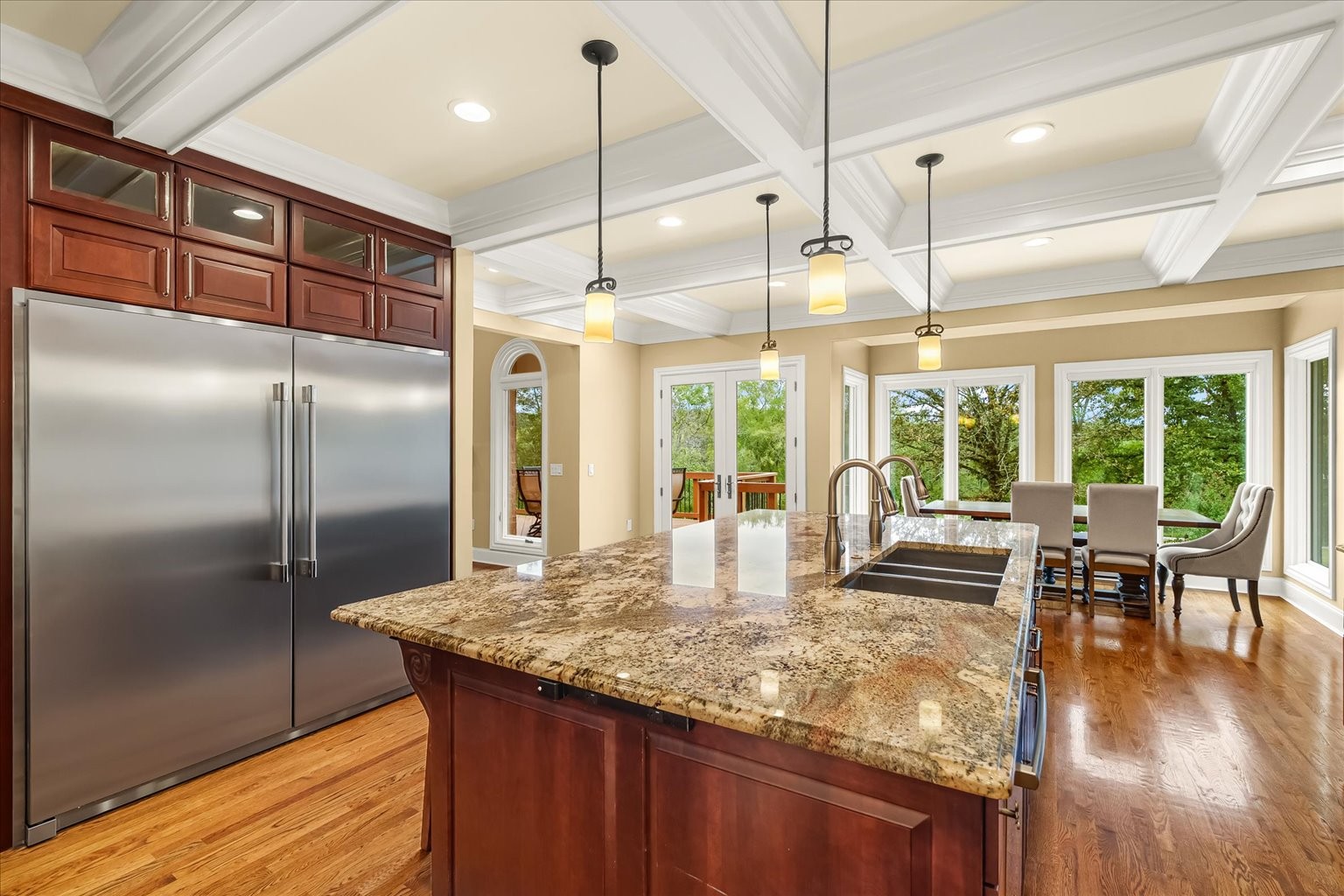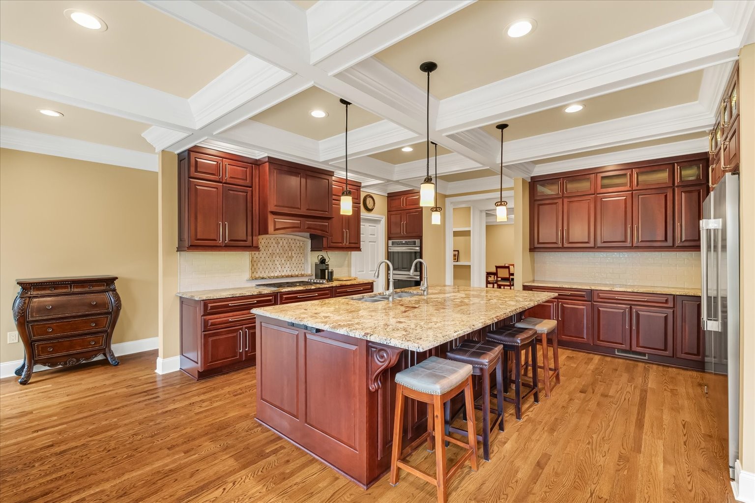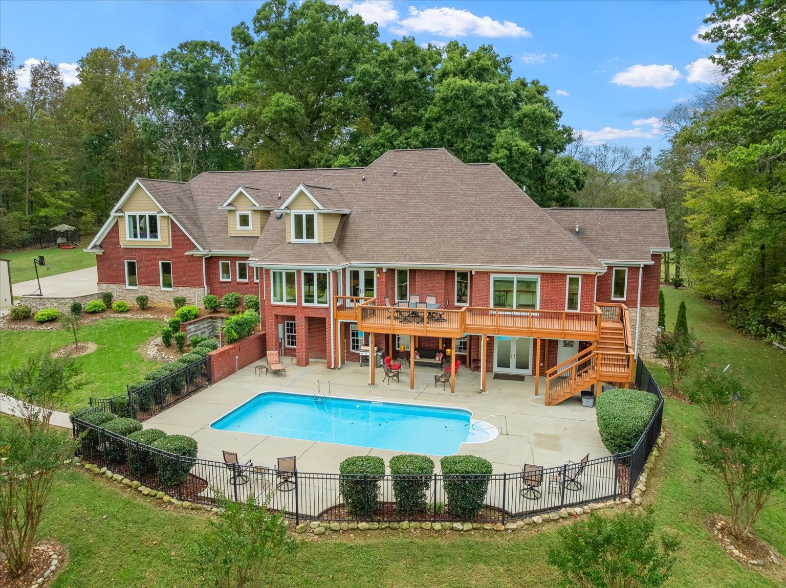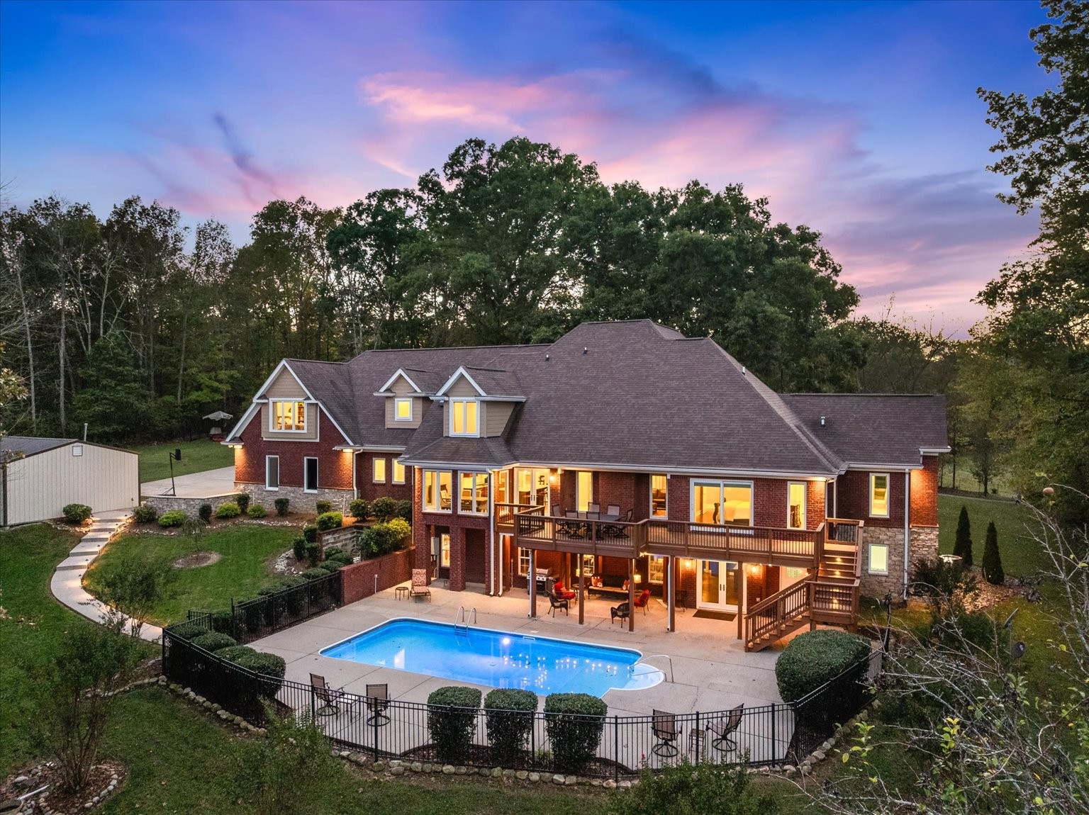 Nestled on 19 stunning acres, this 7,100 sq ft custom estate offers luxury, privacy, and space to live and entertain. The home features 3 bedrooms, 3 full baths, 2 half baths, 2 laundry rooms, and a walk-out basement with additional living space. A chef’s dream kitchen includes double ovens, two dishwashers, a gas cooktop, built-in refrigerator, and an oversized island, all framed by floor-to-ceiling cabinetry and generous counter space. The expansive layout boasts a formal dining room, two media/rec rooms, flex rooms ideal for additional sleeping quarters or offices, and a spa-like primary suite. Hardwood floors run throughout, with two gas log fireplaces adding warmth and charm. Oversized Pella windows with retractable screens flood every room with natural light and frame breathtaking views of the property. Enjoy outdoor living with a private in-ground pool and take advantage of the abundant storage found throughout the home.