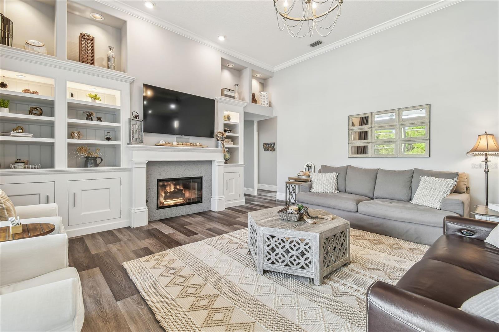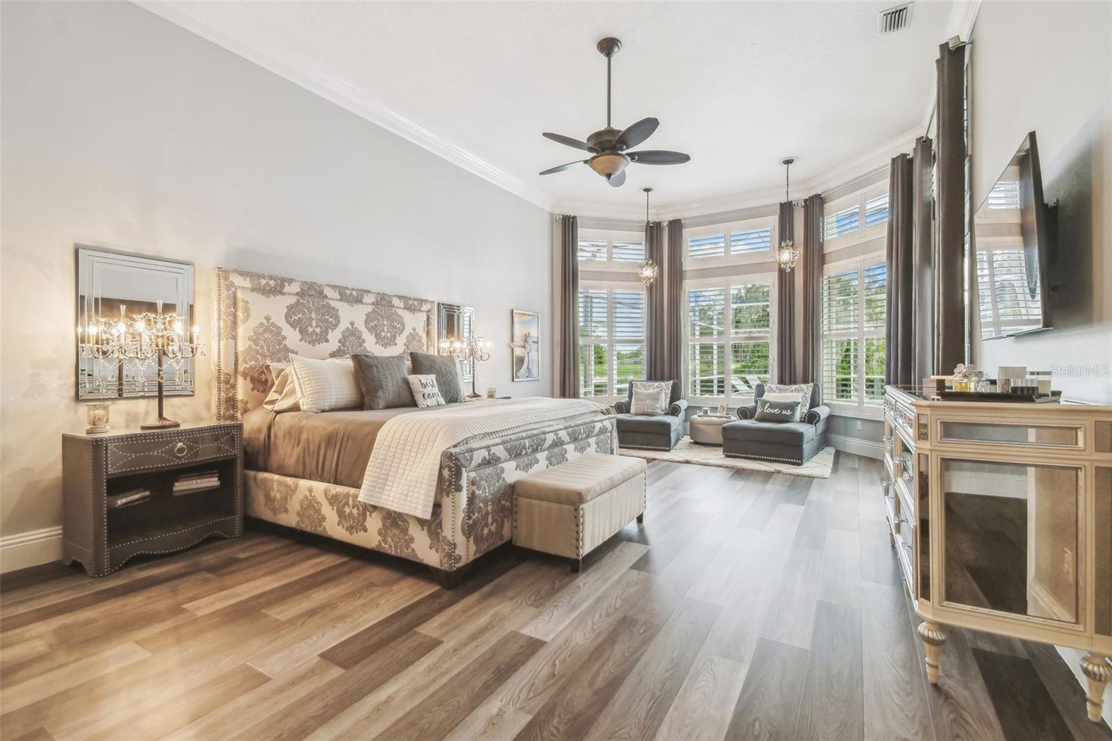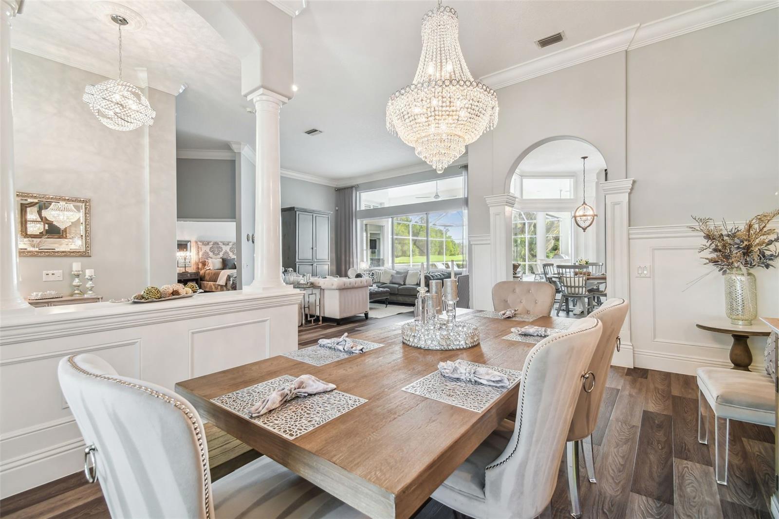 Luxury reimagined, a fully remodeled Hunters Green pool/spa home with golf course view in Osprey Point. This beautiful 4,707 SF 5 bedroom, 4 ½ bathroom, 3 car garage, plus 6th bedroom/office, exercise space and bonus room was built by Hanna Bartoletta to meet your highest standards. As you enter this magnificent residence you will notice the attention to detail. The completely remodeled kitchen features high-end stainless-steel appliances including a 48” wolf range with double ovens, pot filler, custom quartz counters, counter height island with farm sink, and a large walk-in pantry all overlooking a large family room with fireplace and built ins. The huge primary suite with sitting area has wonderful views, dual walk-in closets, dual sinks with makeup area, tub and a large walk-in shower. Upstairs you will find a quiet oasis including a bedroom, bath, large bonus room and an exercise or craft area. Step outside to the oversized covered lanai with outdoor kitchen, and updated pool/spa area with travertine all overlooking serene pond and golf course beyond. Home includes but is not limited to a new tile roof (2023), huge laundry room has dryer, washer with sidekick for smaller loads(2023), tons of storage and solid surface workspace, plantation shutters, extensive wood flooring, crown molding, new pool motor and filter (2025), salt cell (2026), water heater (2021), 15 SEER A/C (2023), REME Halo LED air purification system (2024), paver driveway, epoxy garage floor, recently painted inside and out, fenced yard with sitting area, and a sprinkler system. Hunter’s Green, a gated and guarded community, has become the residence of choice for many moving to the Tampa Bay area because of commuting convenience, quality of life and high number of superior rated schools. Hunter’s Green Golf and Country Club is one of the finest private clubs in the southeast boasting a championship golf course designed by Tom Fazio, and an avid tennis membership. Located only minutes from shopping, I-75, hospitals, VA, Moffitt cancer hospital, restaurants, recreation, Flatwoods trails and entertainment. Come see for yourself this exquisite residence, sit down, relax and call it home!