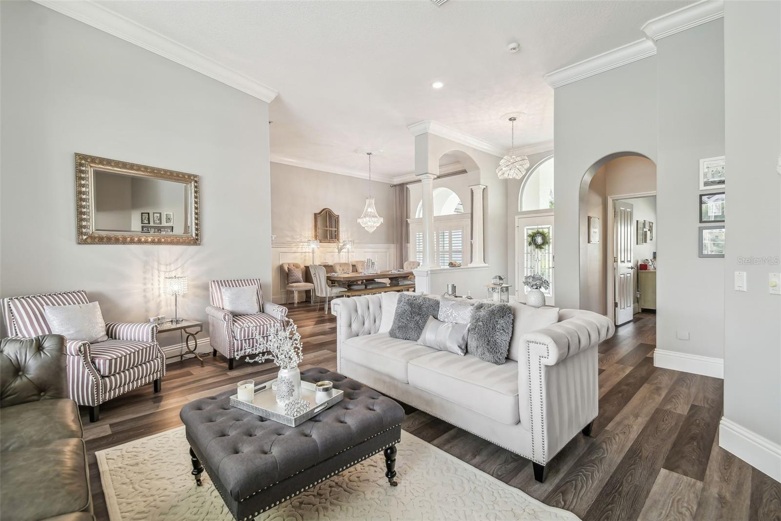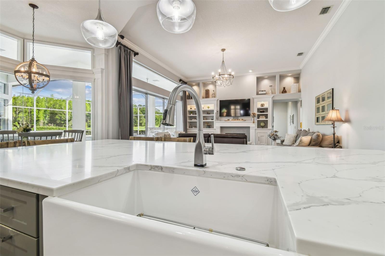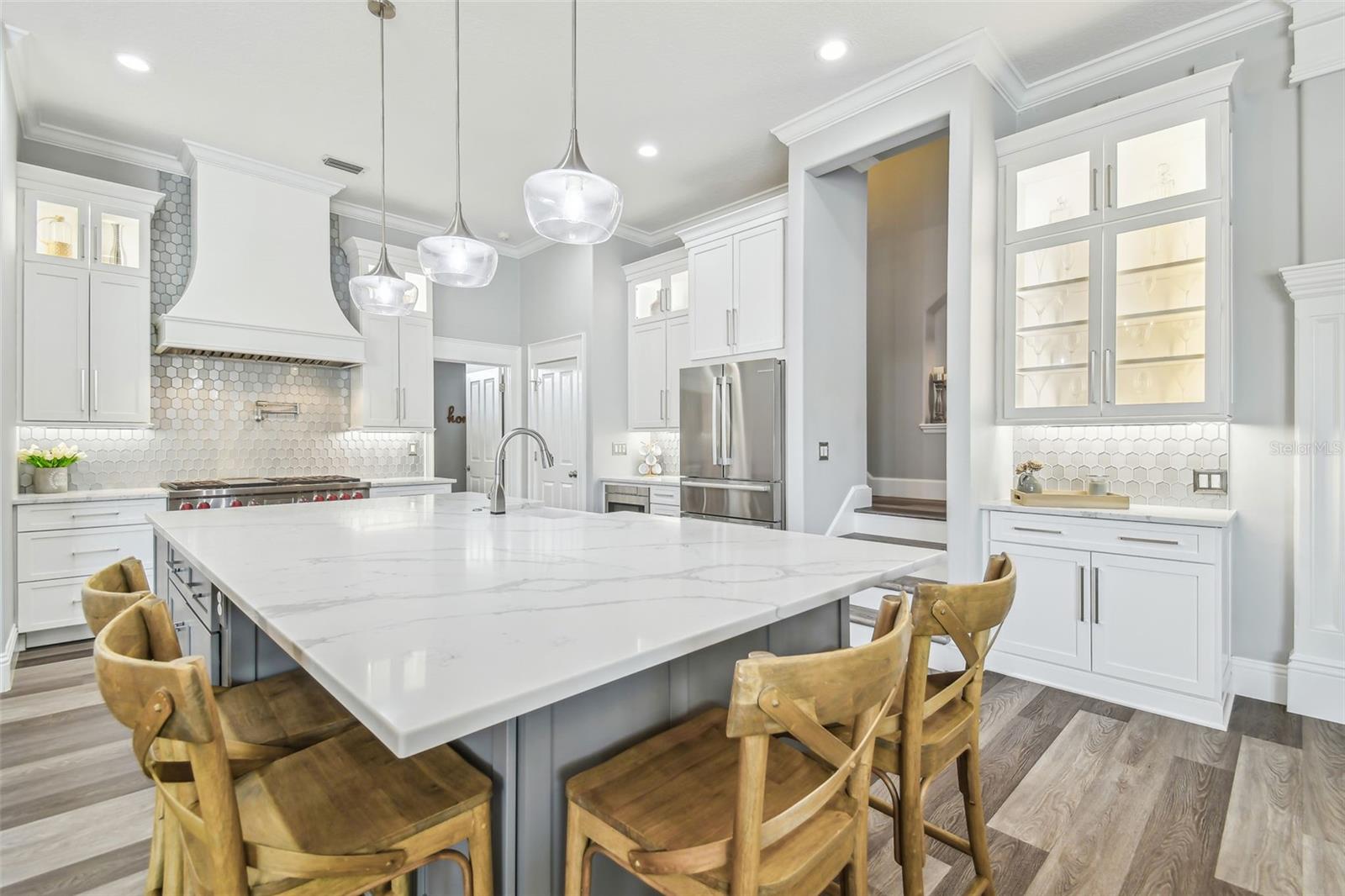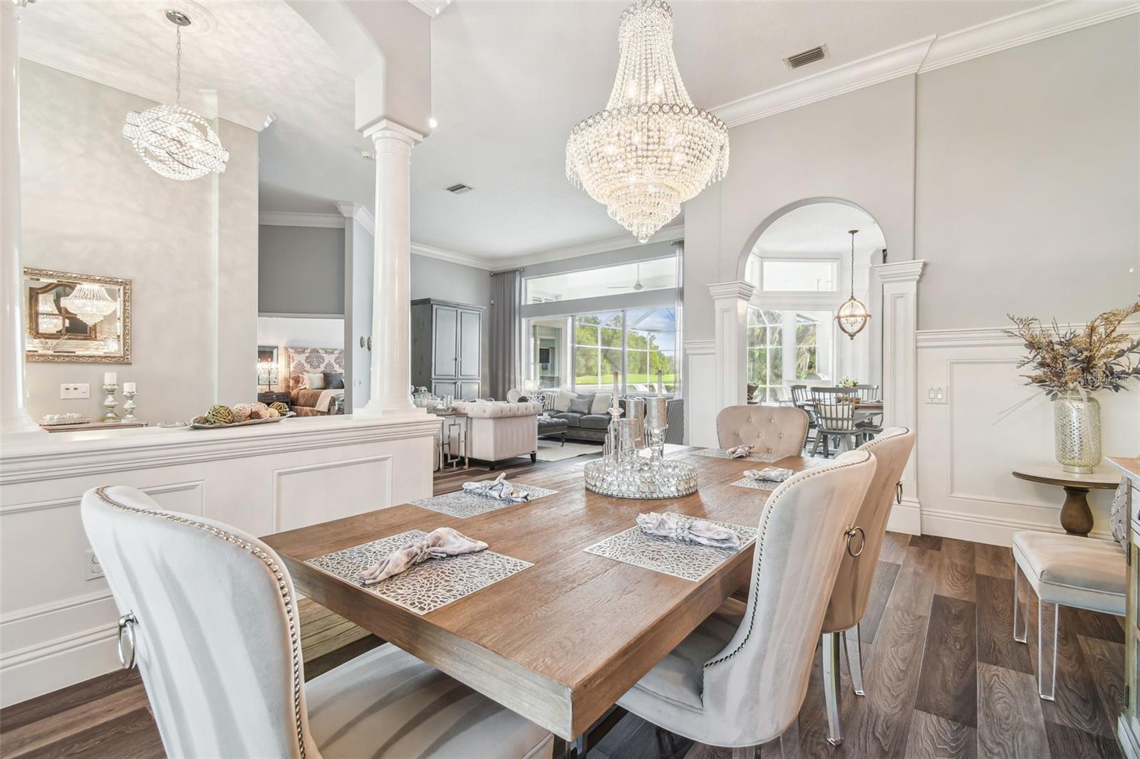 Luxury reimagined, a fully remodeled Hunters Green pool/spa home with golf course view in Osprey Point. This beautiful 4,707 SF 5 bedroom, 4 ½ bathroom, 3 car garage, plus 6th bedroom/office, exercise space and bonus room was built by Hanna Bartoletta to meet your highest standards. As you enter this magnificent residence you will notice the attention to detail. The completely remodeled kitchen features high-end stainless-steel appliances including a 48” wolf range with double ovens, pot filler, custom quartz counters, counter height island with farm sink, and a large walk-in pantry all overlooking a large family room with fireplace and built ins. The huge primary suite with sitting area has wonderful views, dual walk-in closets, dual sinks with makeup area, tub and a large walk-in shower. Upstairs you will find a quiet oasis including a bedroom, bath, large bonus room and an exercise or craft area. Step outside to the oversized covered lanai with outdoor kitchen, and updated pool/spa area with travertine all overlooking serene pond and golf course beyond. Home includes but is not limited to a new tile roof (2023), huge laundry room has dryer, washer with sidekick for smaller loads(2023), tons of storage and solid surface workspace, plantation shutters, extensive wood flooring, crown molding, new pool motor and filter (2025), salt cell (2026), water heater (2021), 15 SEER A/C (2023), REME Halo LED air purification system (2024), paver driveway, epoxy garage floor, recently painted inside and out, fenced yard with sitting area, and a sprinkler system. Hunter’s Green, a gated and guarded community, has become the residence of choice for many moving to the Tampa Bay area because of commuting convenience, quality of life and high number of superior rated schools. Hunter’s Green Golf and Country Club is one of the finest private clubs in the southeast boasting a championship golf course designed by Tom Fazio, and an avid tennis membership. Located only minutes from shopping, I-75, hospitals, VA, Moffitt cancer hospital, restaurants, recreation, Flatwoods trails and entertainment. Come see for yourself this exquisite residence, sit down, relax and call it home!
