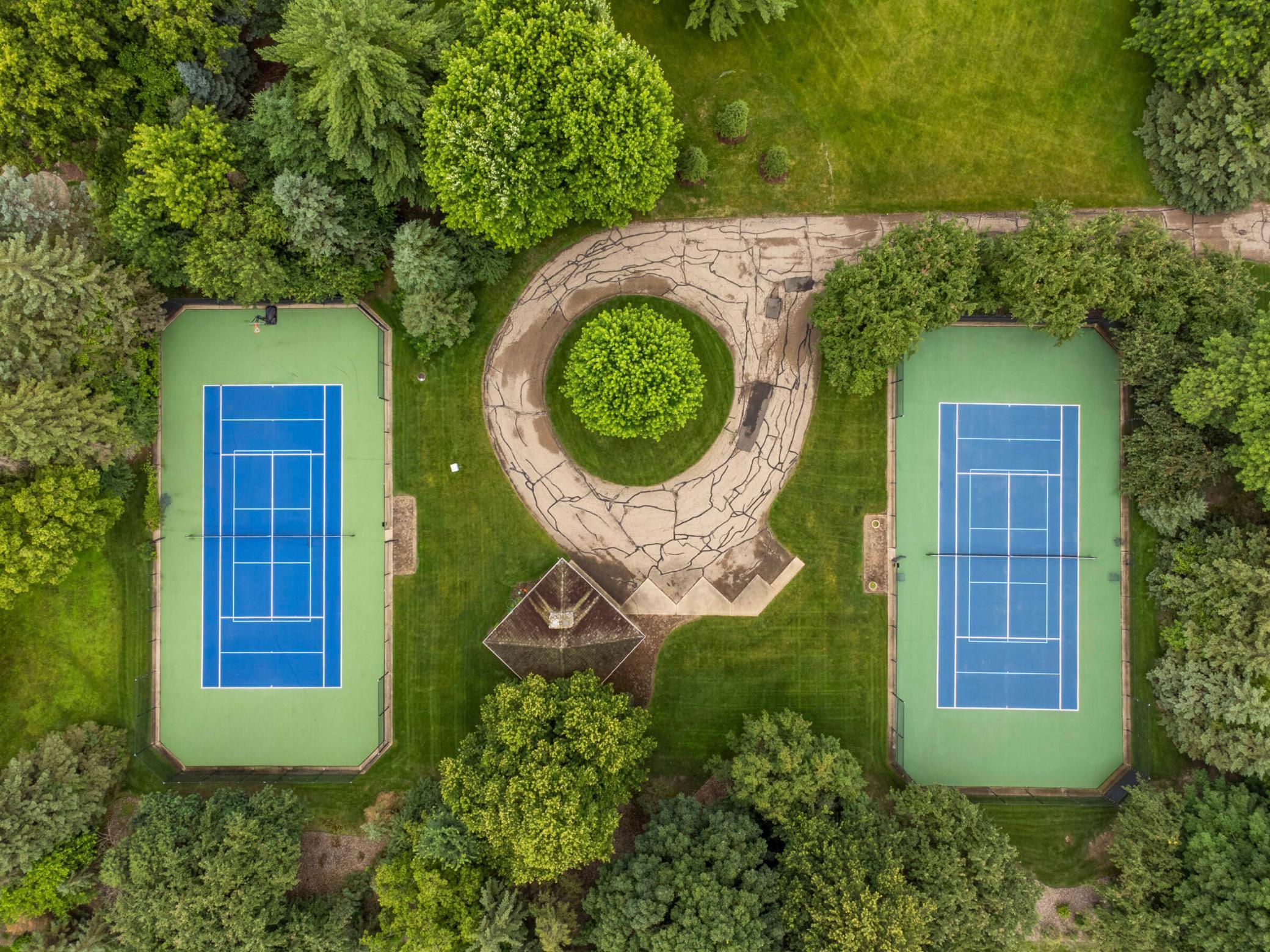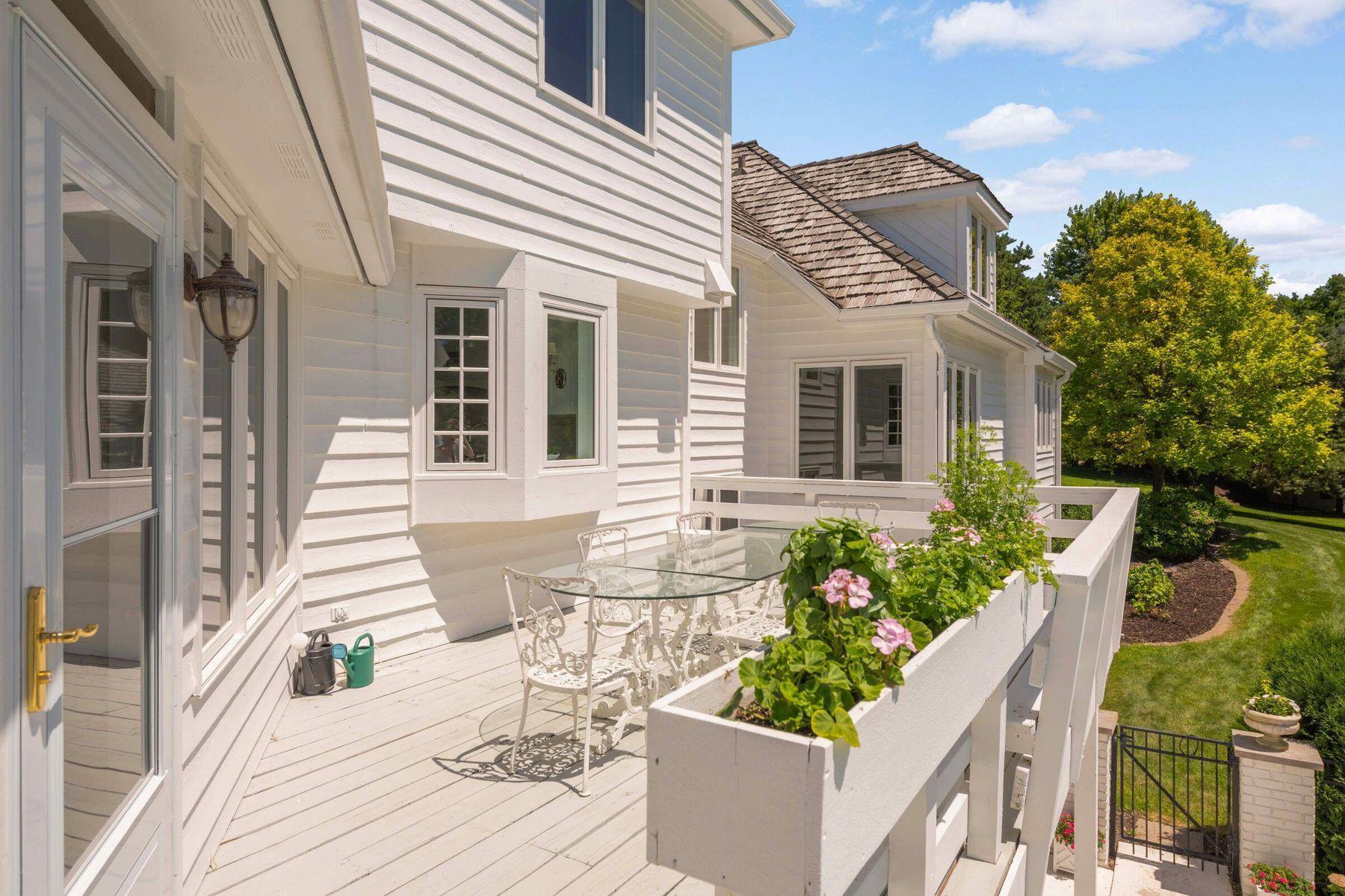 accents, Sub-Zero refrigerator, beverage center, and a sunny garden window above the sink. The adjacent breakfast room and generous dining room welcome both intimate meals and larger gatherings. A vaulted family room with new windows and custom built-ins opens to the charming three-season porch and upper deck overlooking the pool. The main-level primary suite is a calming retreat with corner windows and a spectacular marble-clad bathroom offering dual vanities, a soaking tub, walk-in shower with repeating arch detail, and a spacious custom closet. Thoughtfully designed storage is abundant, including a large mudroom with custom lockers and a multifunctional laundry room. Upstairs are three bright bedrooms - each with southern views - and a full bath with dual vanities and excellent storage. The walkout lower level offers two additional bedrooms, a bathroom with sauna and towel room, expansive storage options, and access to the beautifully landscaped pool area surrounded by hydrangeas and peaceful nature views. French Creek is an intimate, private community of just seventeen homes with acres of preserved woodlands, two tennis courts (one lined for pickleball), and a reservable gazebo with fireplace. The roof was recently replaced. Driveway, mechanicals, appliances, and septic are all newer. Ideally located minutes from downtown Wayzata, marinas, the Lafayette, Woodhill, and Wayzata Country Clubs, and miles of nearby trails. Served by top-rated Orono Schools, this is a rare opportunity for refined main-level living in an unmatched setting.