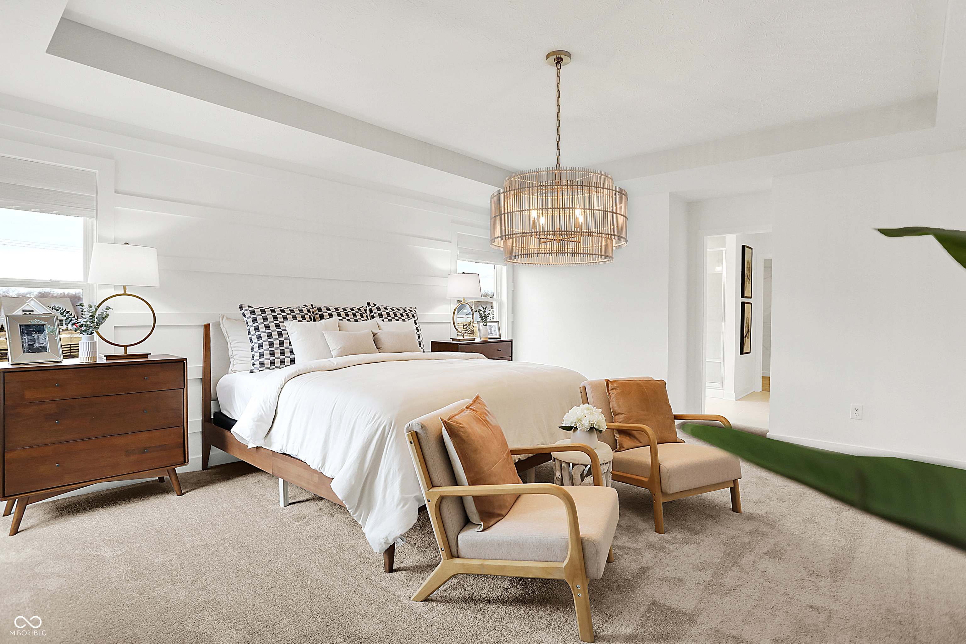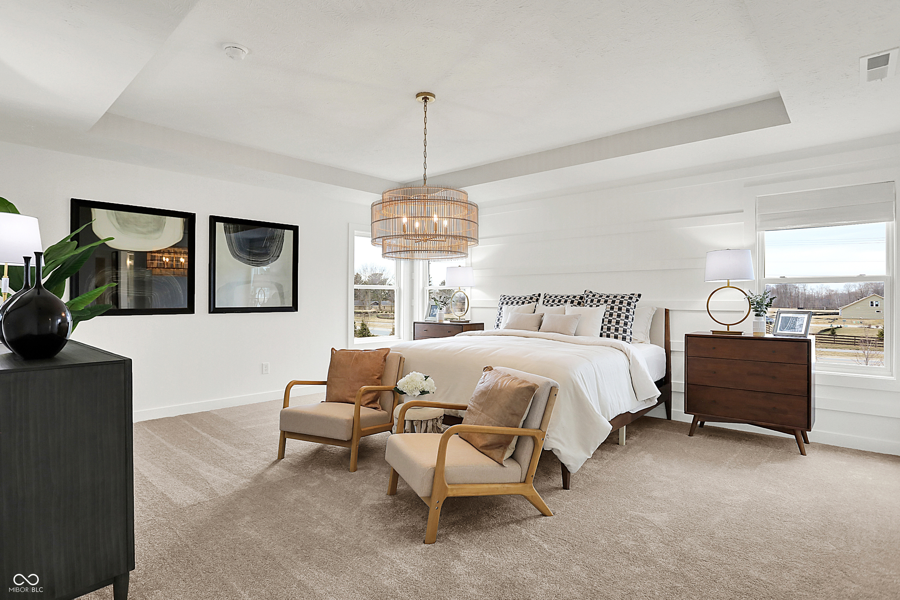 Architecture SL offers some of the largest single-family homes available at Ravinia, a lavish master-planned community coming soon to Westfield, IN. Built with a focus on active living, onsite amenities include a swimming pool, playground, walking trails, a basketball court and pickleball court. Westfield is home to a charming downtown district, highly regarded Westfield Washington schools, championship golf courses and excellent city parks. Within three miles of Ravinia is the 29.6-acre Freedom Trail Park, featuring a playground, natural trails and a fishing pond. Less than six miles away is Clay Terrace shopping center, which offers a convenient grocery store, exclusive brands, specialty shops and over 30 yearly public events. A sophisticated take on a modern layout, this spacious two-story home offers endless possibilities. The main level features an expansive open-concept living area with the kitchen and dining area opening into the Great Room, ideal for entertaining. The study with French doors creates a private space for work or hobbies, and a guest suite offers a restful retreat for overnight visitors. A covered porch off the main living space provides an extension of the entertaining space or a comfortable space to relax outdoors. Residing upstairs is the lavish owner's suite and three secondary bedrooms, each with a walk-in closet. A versatile loft adds additional space for activities or relaxation. Rounding out the home is a desirable three-car garage. *Photos/Tour of model may show features not selected in home.
