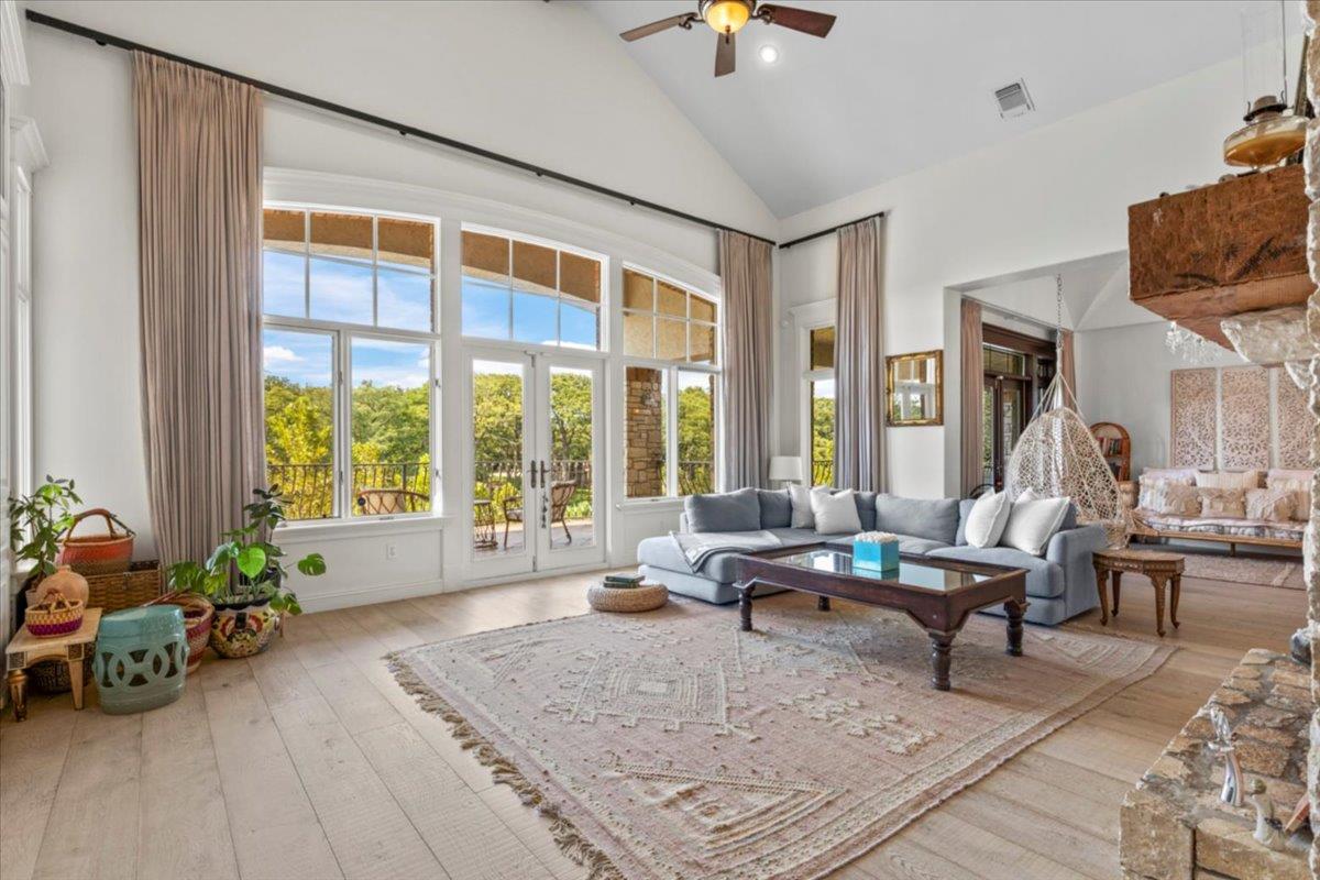 Where the Blanco River bends quietly beneath towering cypress trees, an extraordinary opportunity awaits within one of Wimberley’s most exclusive gated communities. Set high above the river in the coveted South River community, this remarkable estate offers a level of privacy, prestige, and water access that rarely becomes available. Perched along the bluffs with sweeping panoramic views, the property captures the magic of true Texas Hill Country riverfront living with a dramatic infinity edge pool, private steps to the water, & access to more than a mile of pristine riverfront reserved only for property owners in the community. Inside, the custom built residence blends timeless craftsmanship with refined comfort. A striking double sided limestone fireplace rises toward the twenty foot ceiling, anchoring the open living & kitchen areas while creating a warm architectural centerpiece. The private primary suite feels like a luxury retreat with a spa inspired marble bathroom & oversized double shower. Thoughtful updates including new oak flooring, fresh interior paint, & custom window treatments. A separate two bedroom guest house provides ideal accommodations for visitors, a creative space, or a private office. Beyond the home itself, the setting is nothing short of exceptional. South River is a quiet gated neighborhood known for its elegance, privacy, & friendly atmosphere. Tucked behind an additional private gate & stone wall, the grounds feel like a secluded garden oasis with mature landscaping, fruit trees, and expansive decks overlooking the river. Residents enjoy serene walking paths along the water, crystal clear swimming holes, & the rare luxury of riverfront that remains untouched by public access. Just minutes from the charm of downtown Wimberley yet worlds away in atmosphere, this is a property where nature, luxury, & exclusivity meet in unforgettable fashion. Homes in South River seldom come to market, making this riverfront retreat a truly rare offering!